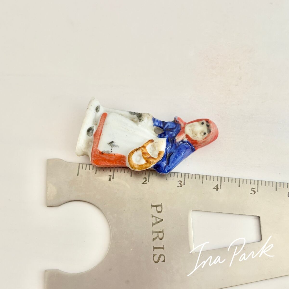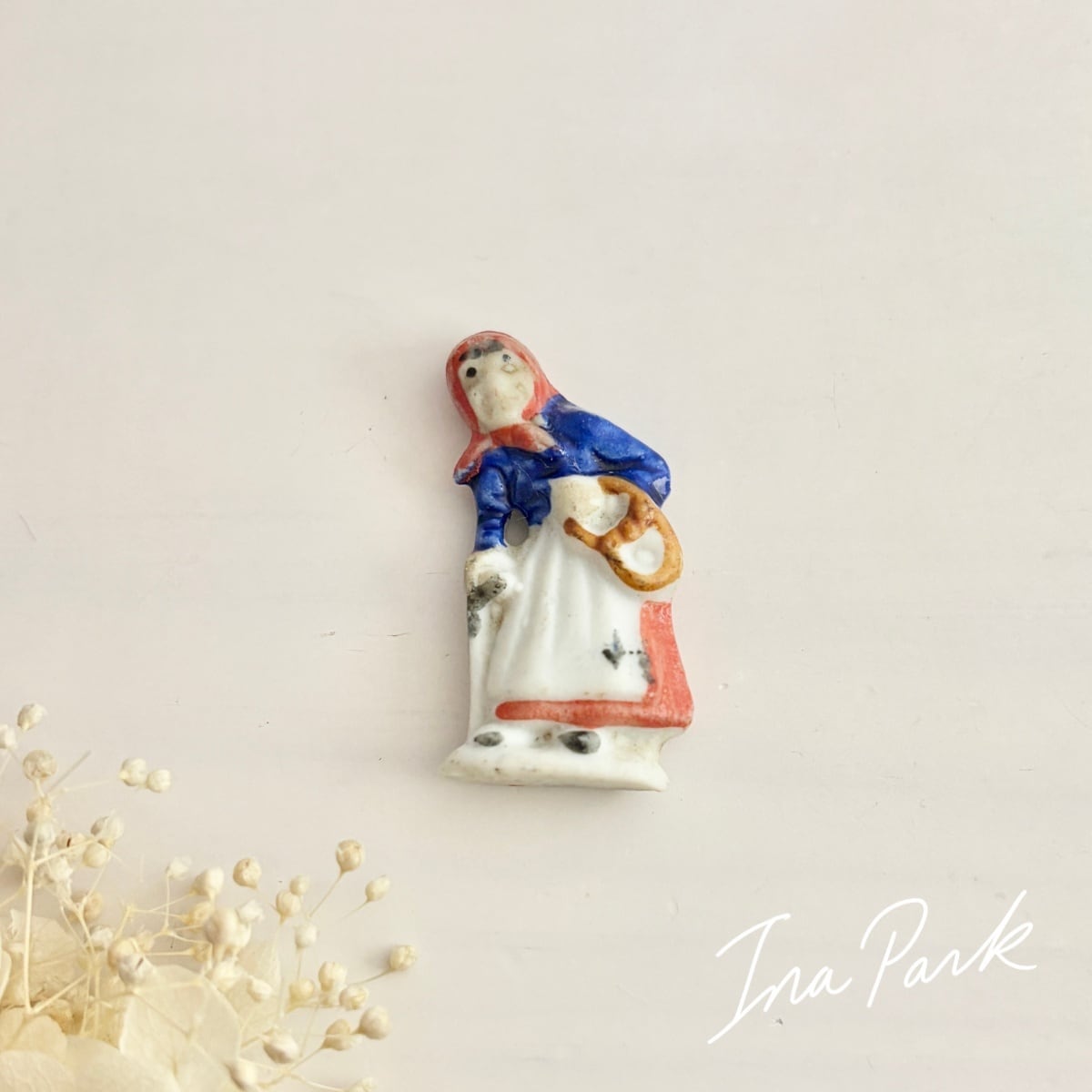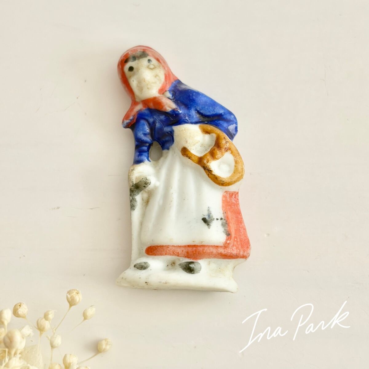 ドイツ製1933-1945アンティーク フェーブ プレッツェルを持つ老女 バッジ フェーヴ ミニチュア 陶器 雑貨 置物
