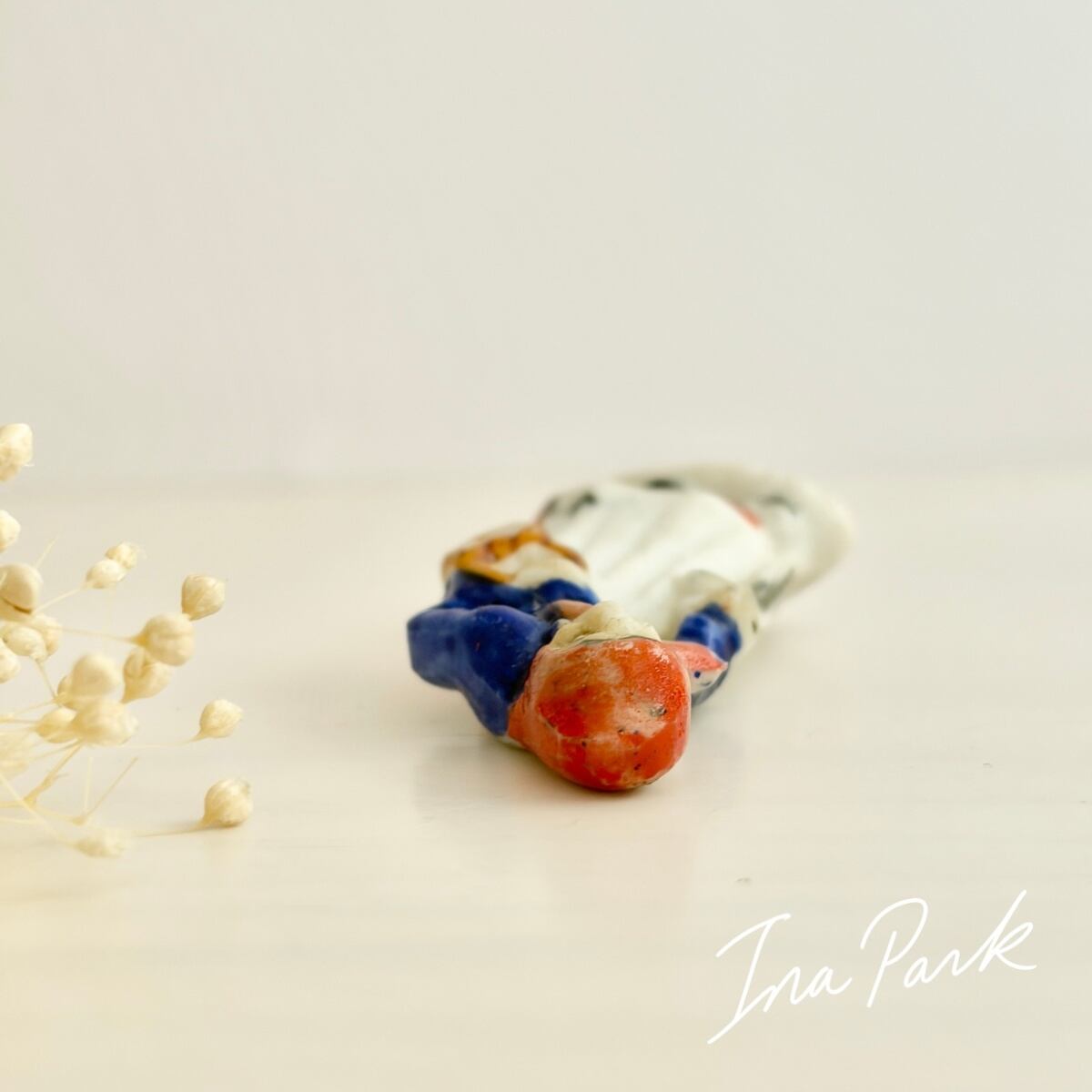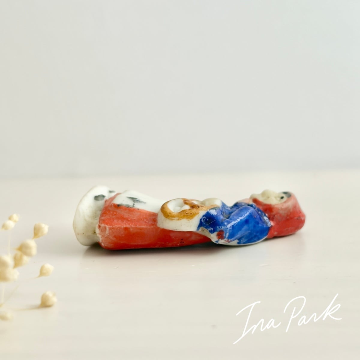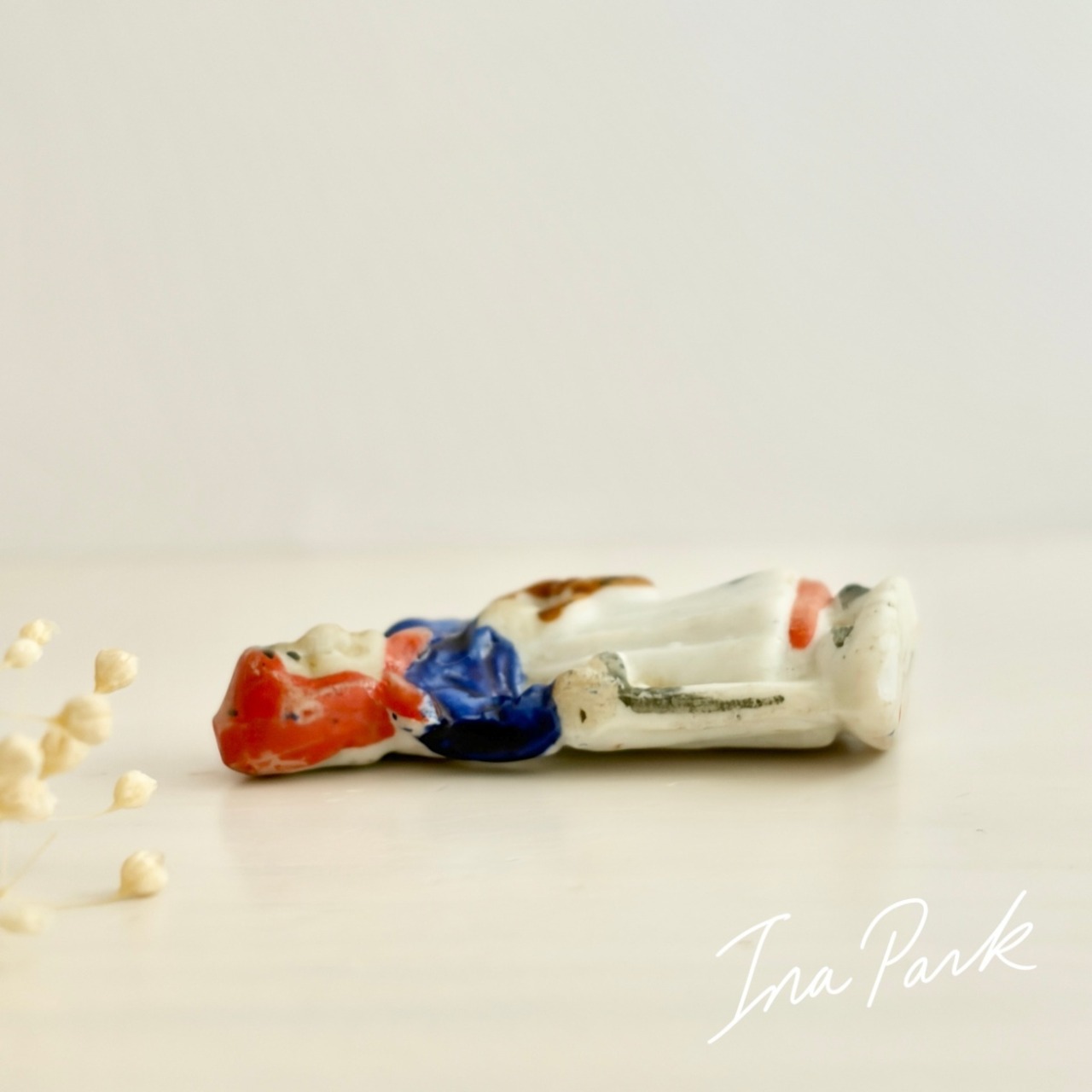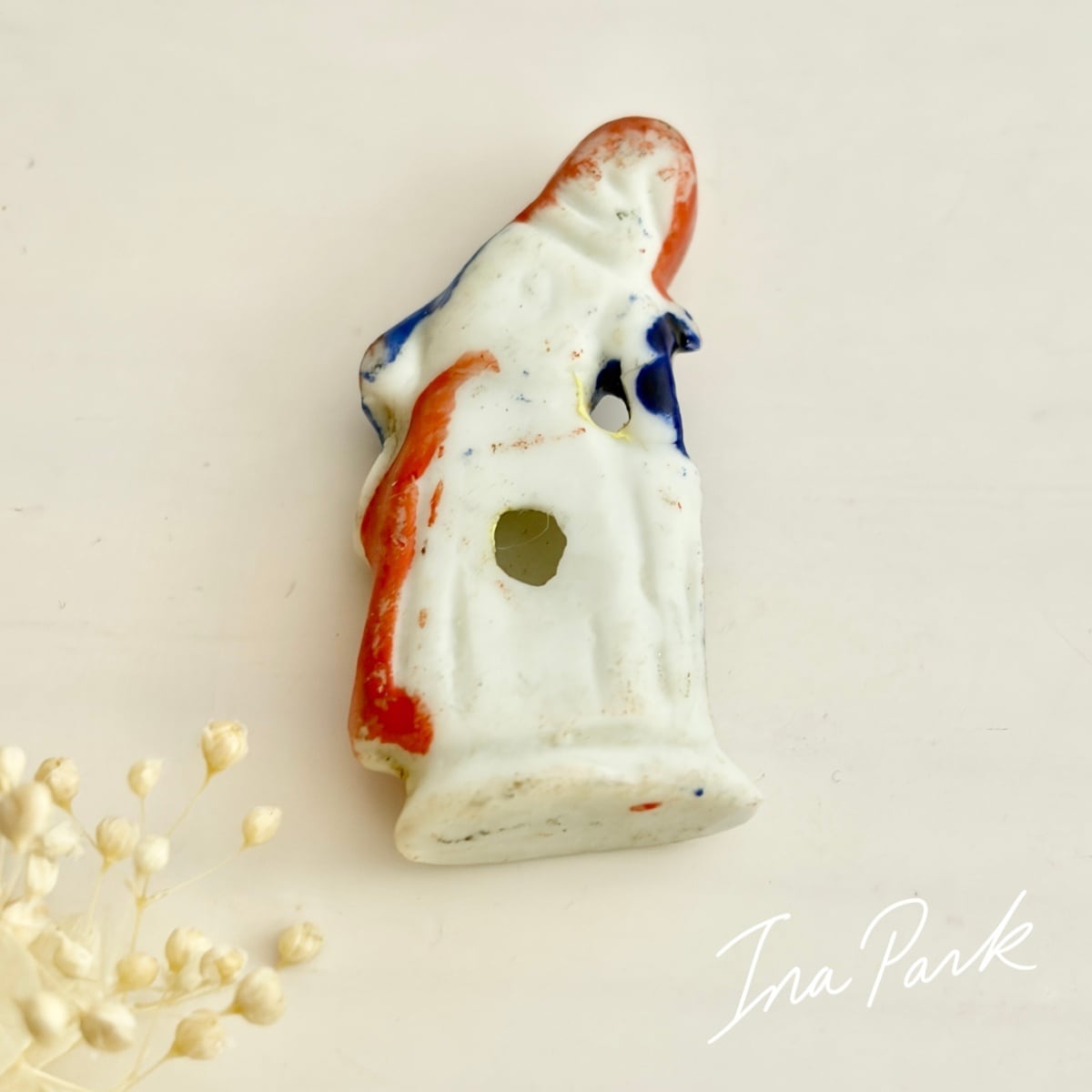 ドイツ製1933-1945アンティーク フェーブ プレッツェルを持つ老女 バッジ フェーヴ ミニチュア 陶器 雑貨 置物