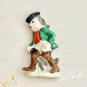 ドイツ製1933-1945アンティーク フェーブ 長靴を履いた猫 バッジ フェーヴ ミニチュア 陶器 雑貨 置物