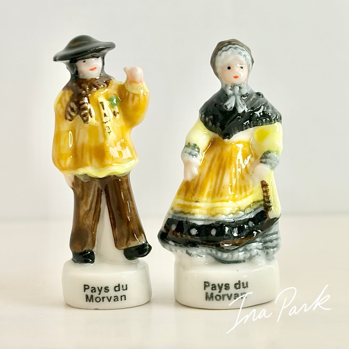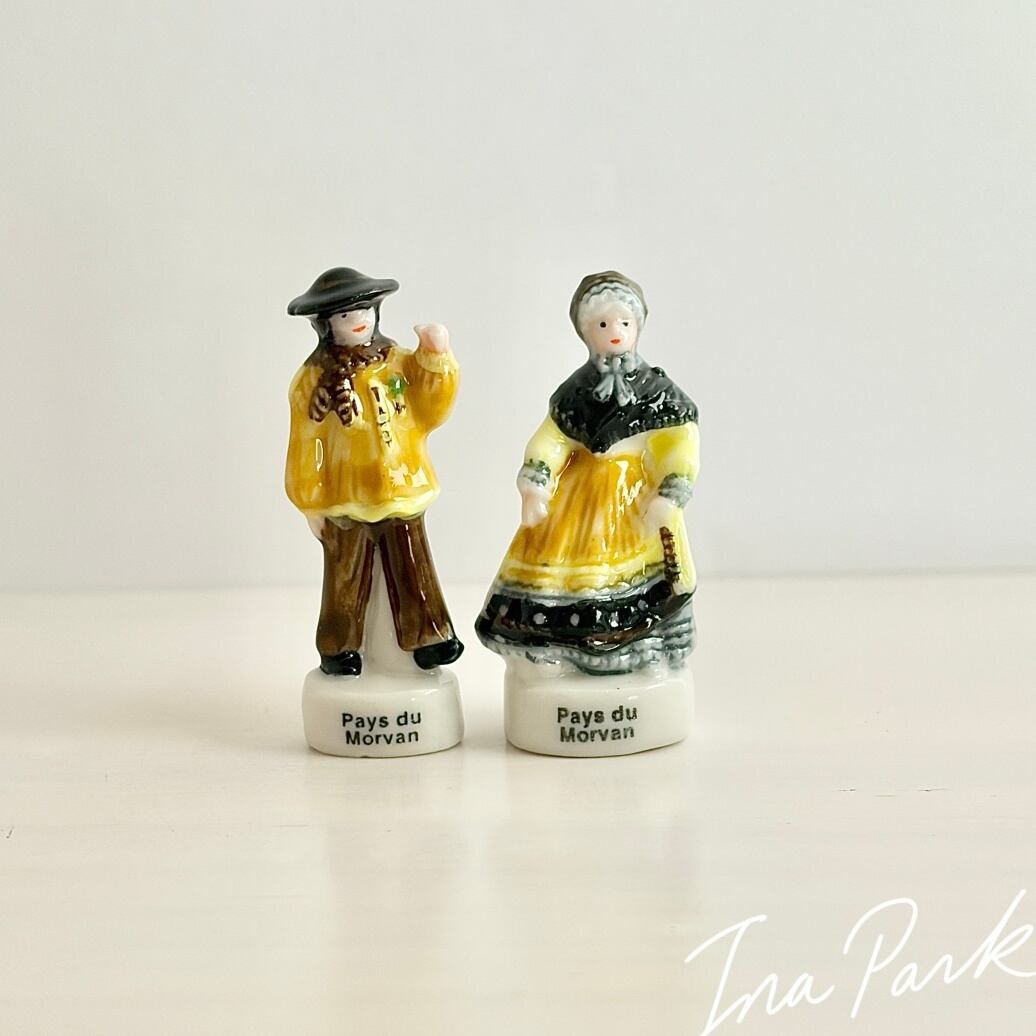 フェーブ ブルゴーニュ地方の伝統衣装 ペア2点 フェーヴ フランス製 ミニチュア 陶器 雑貨 置物