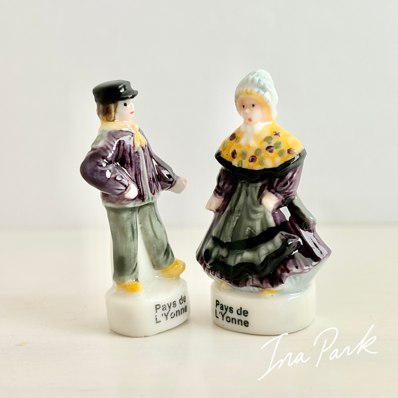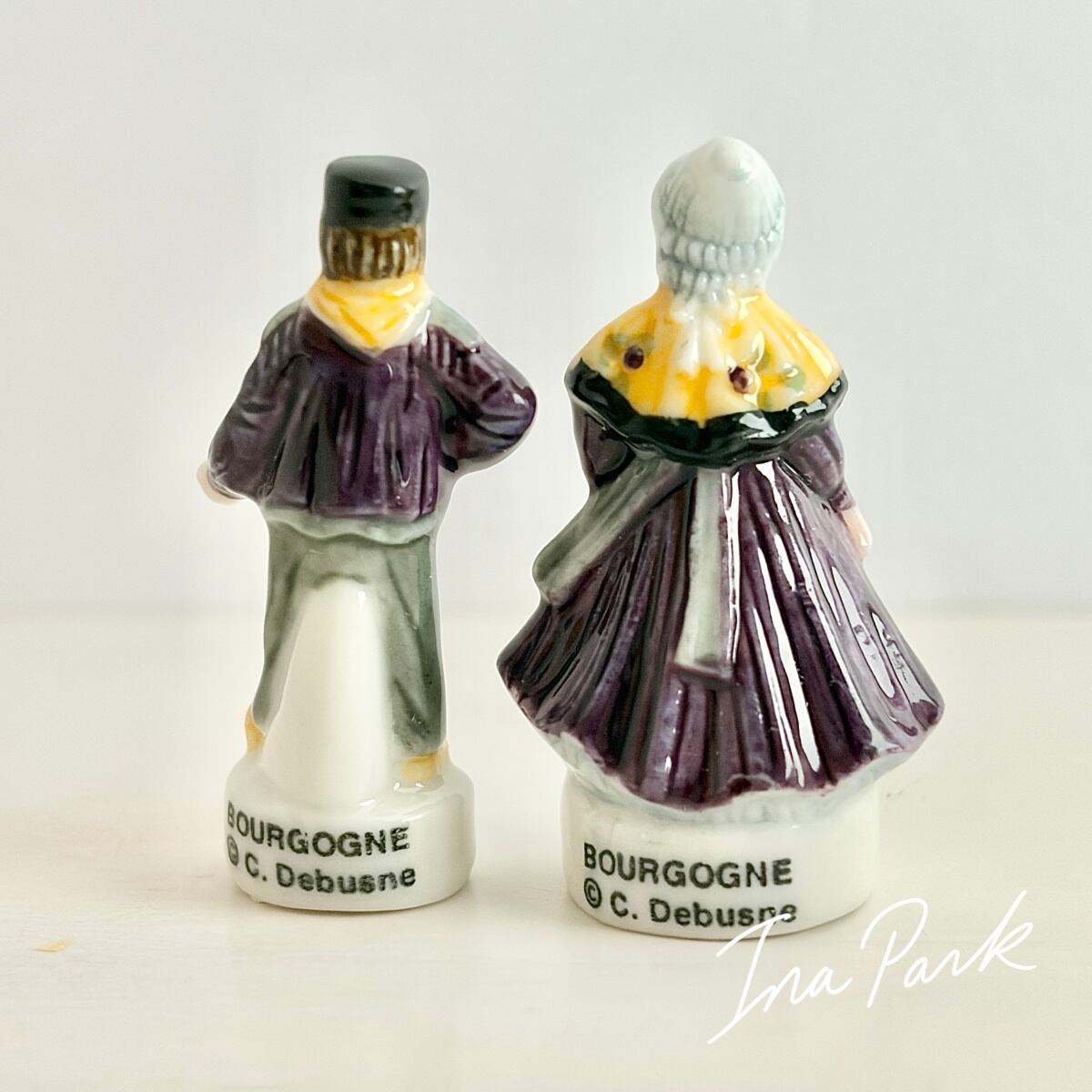 フェーブ ブルゴーニュ地方の伝統衣装 ペア2点 フェーヴ フランス製 ミニチュア 陶器 雑貨 置物