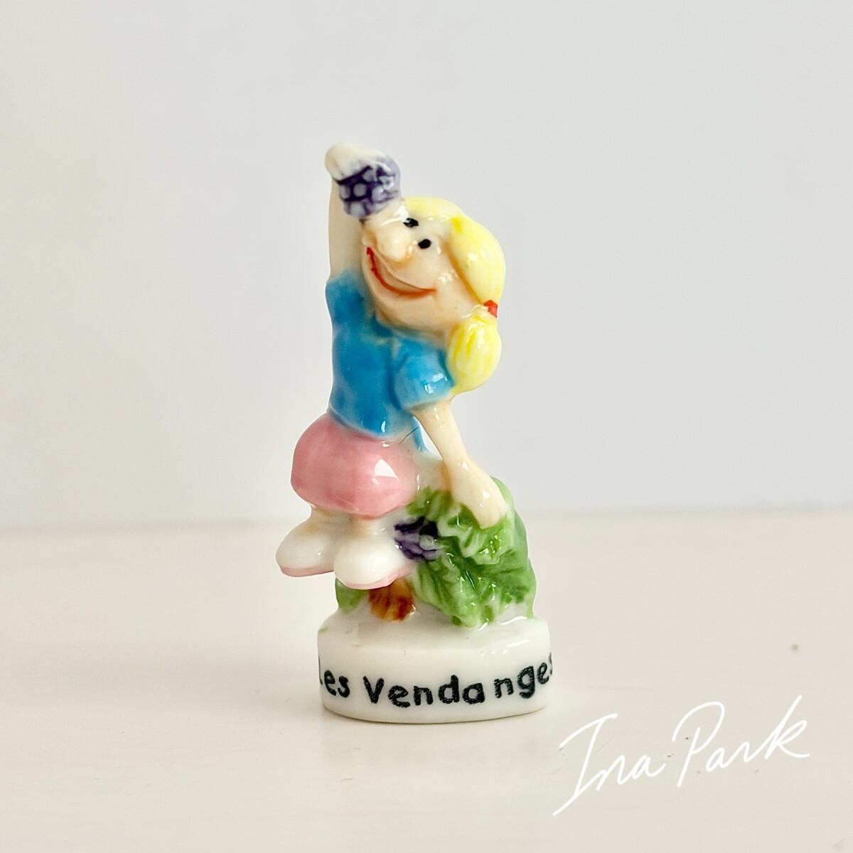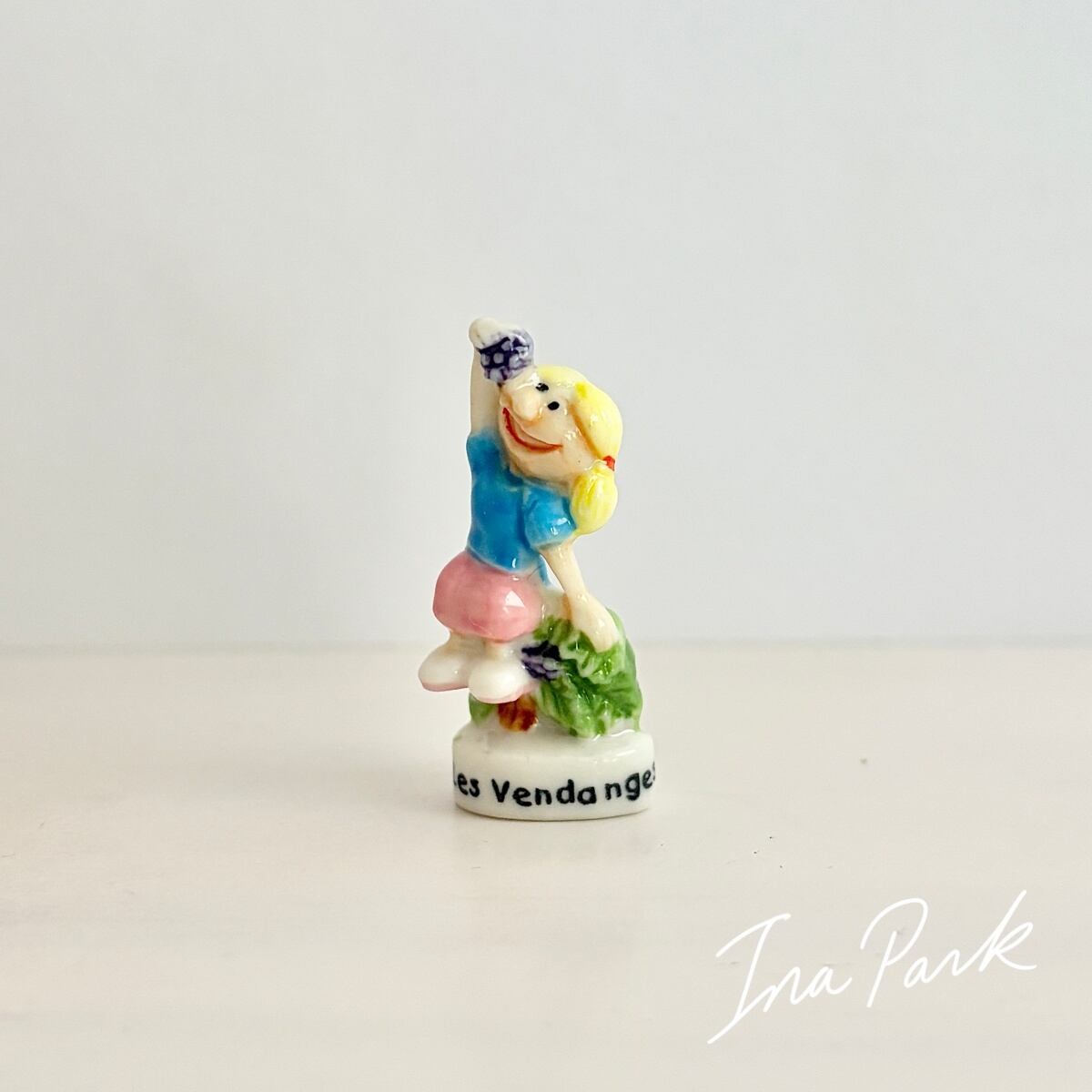 葡萄を食べる少女のフェーヴ フェーブ フランス製 ミニチュア 陶器 雑貨 置物