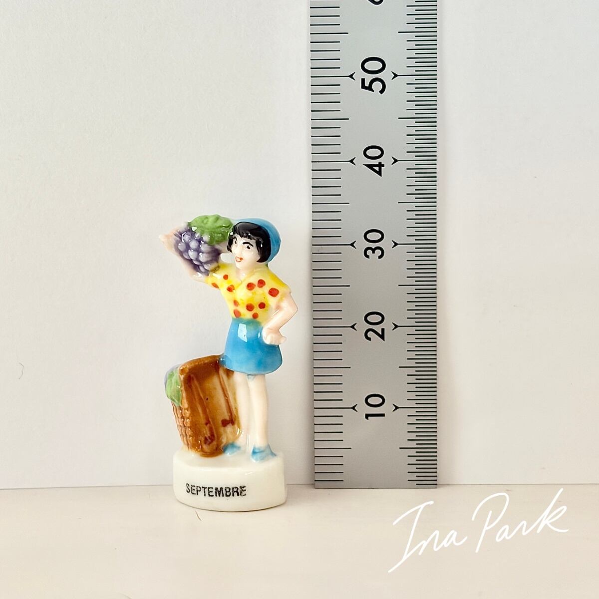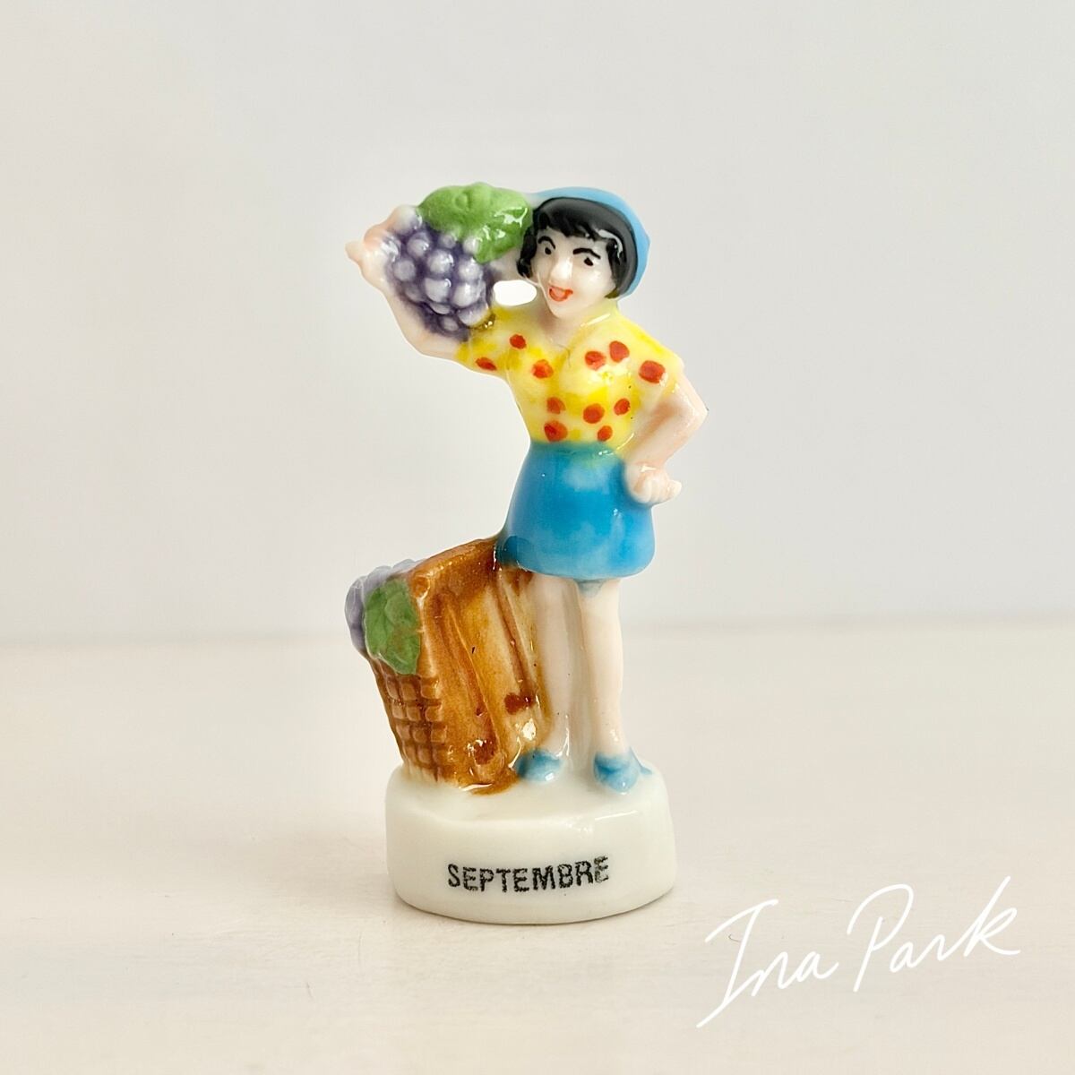 ヴィンテージフェーブ 葡萄収穫の女性 フェーヴ フランス製 ミニチュア 陶器 雑貨 置物