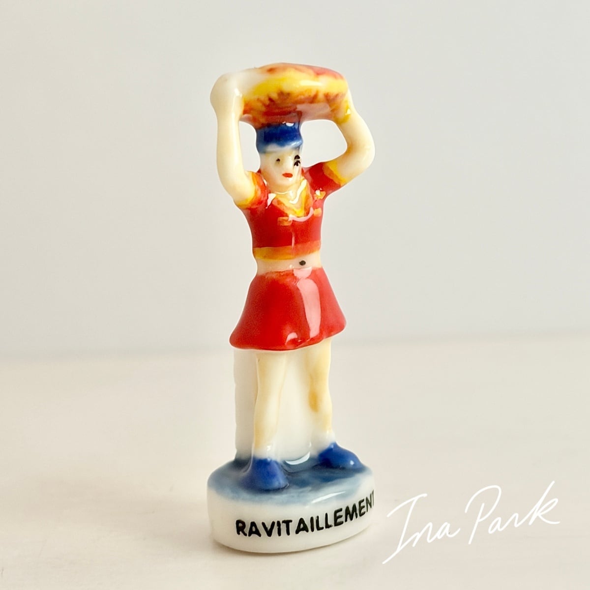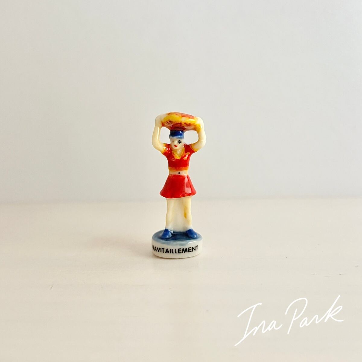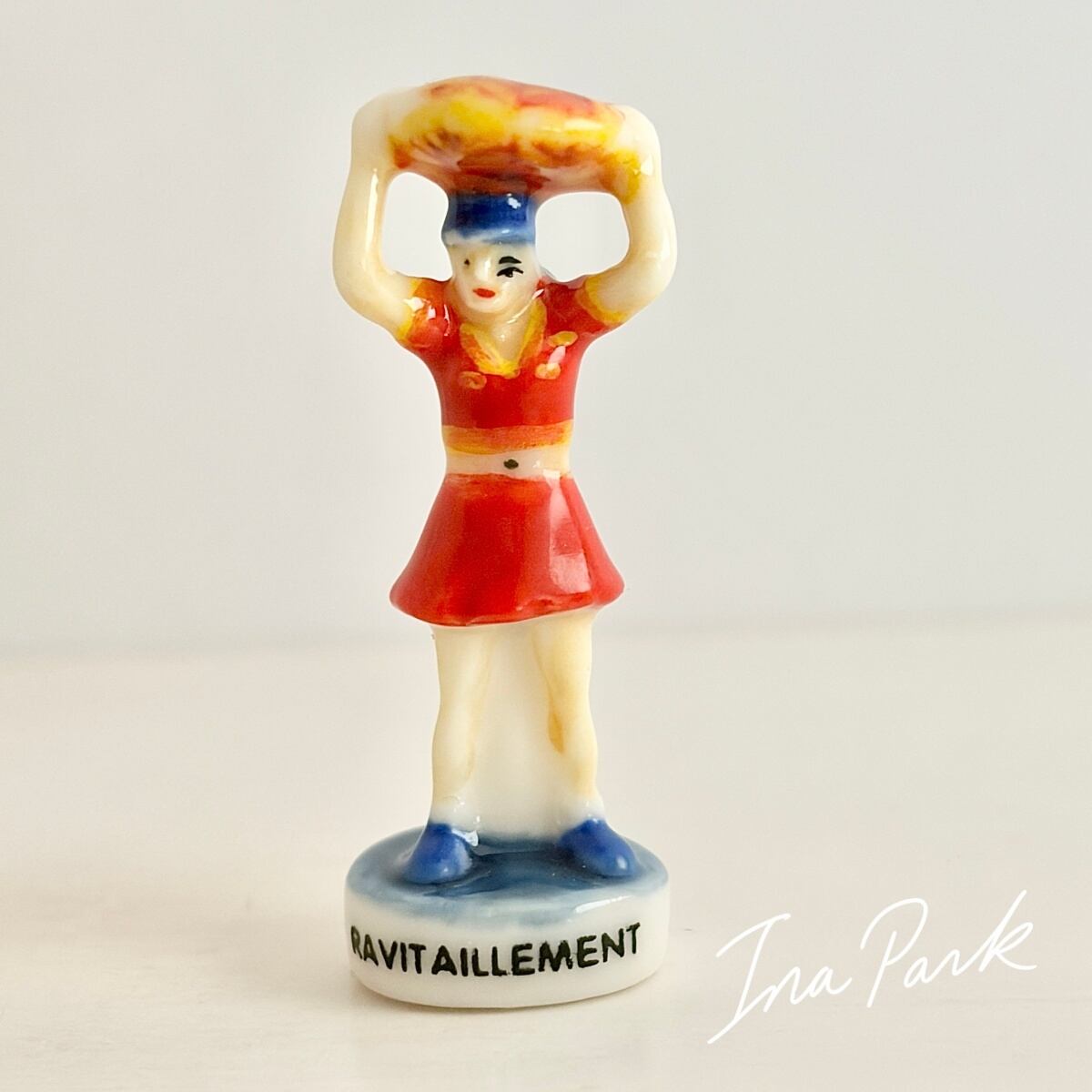 自転車レース ガレットを持つ補給係の女性 フェーヴ フェーブ フランス製 ミニチュア 陶器 雑貨 置物
