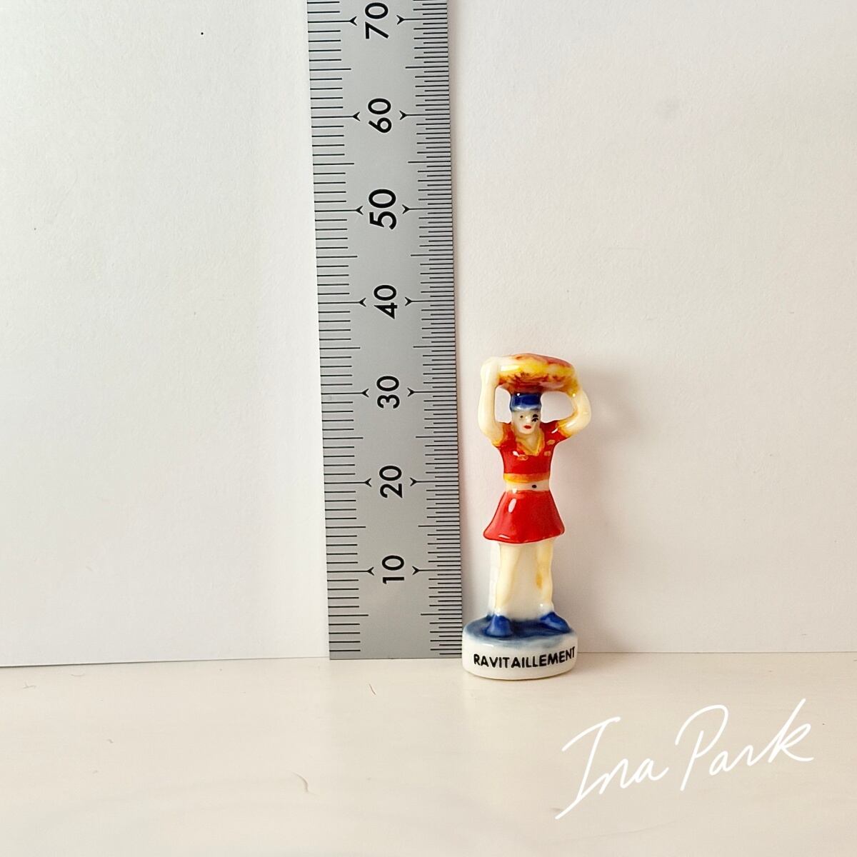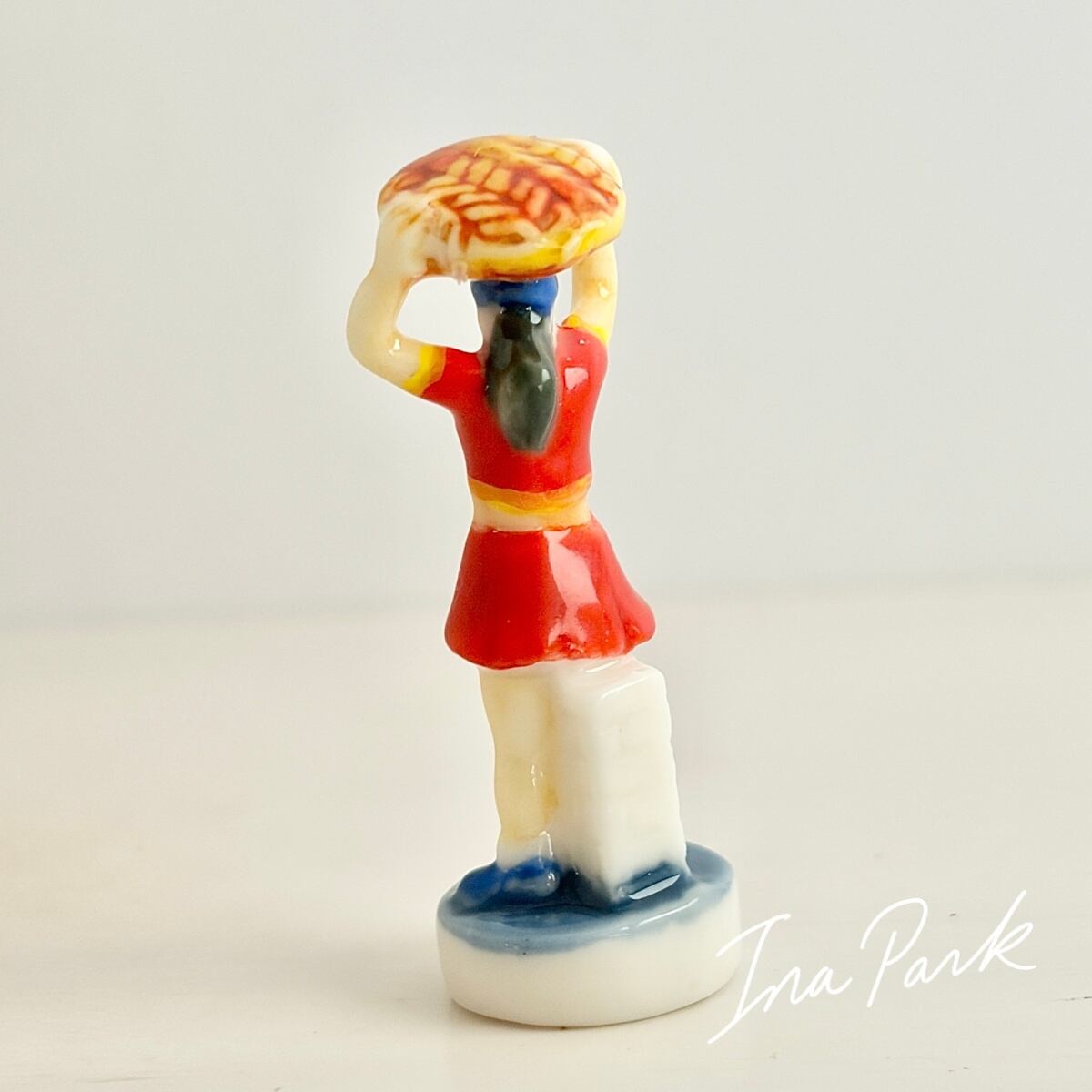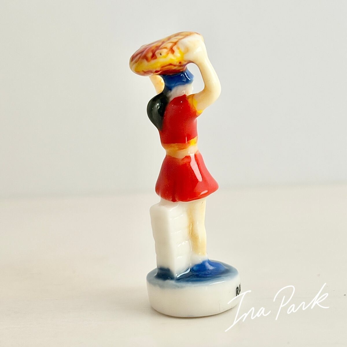 自転車レース ガレットを持つ補給係の女性 フェーヴ フェーブ フランス製 ミニチュア 陶器 雑貨 置物