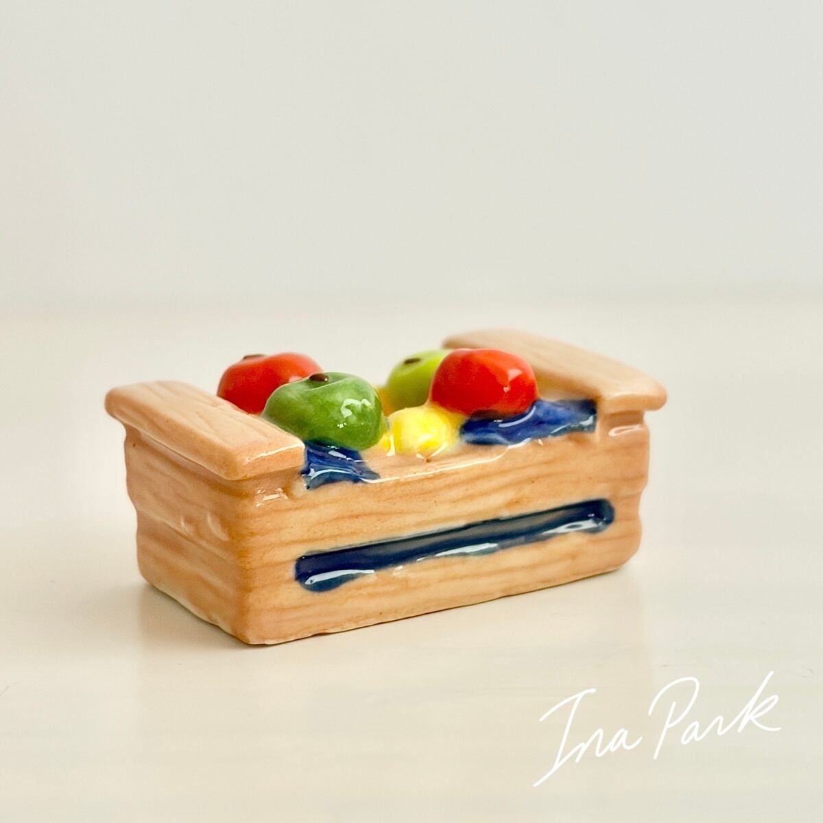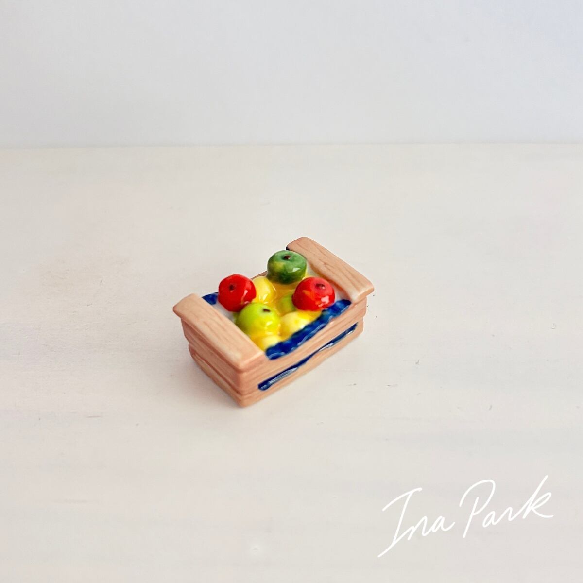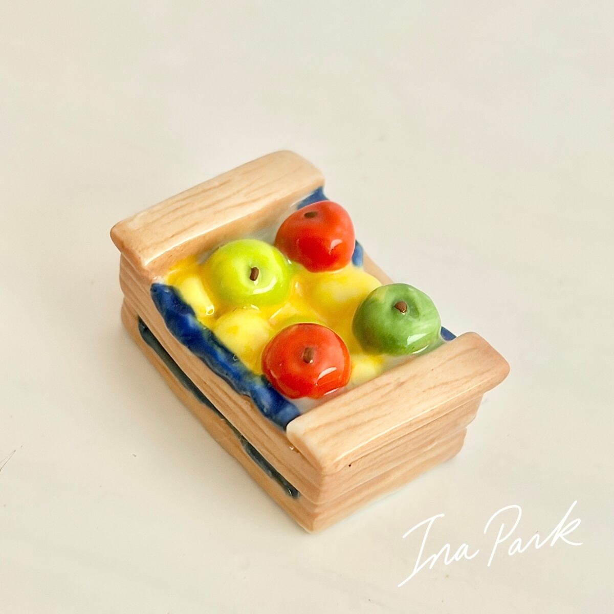 ノルマンディーのりんごの木箱 フェーヴ フェーブ フランス製 ミニチュア 陶器 雑貨 置物