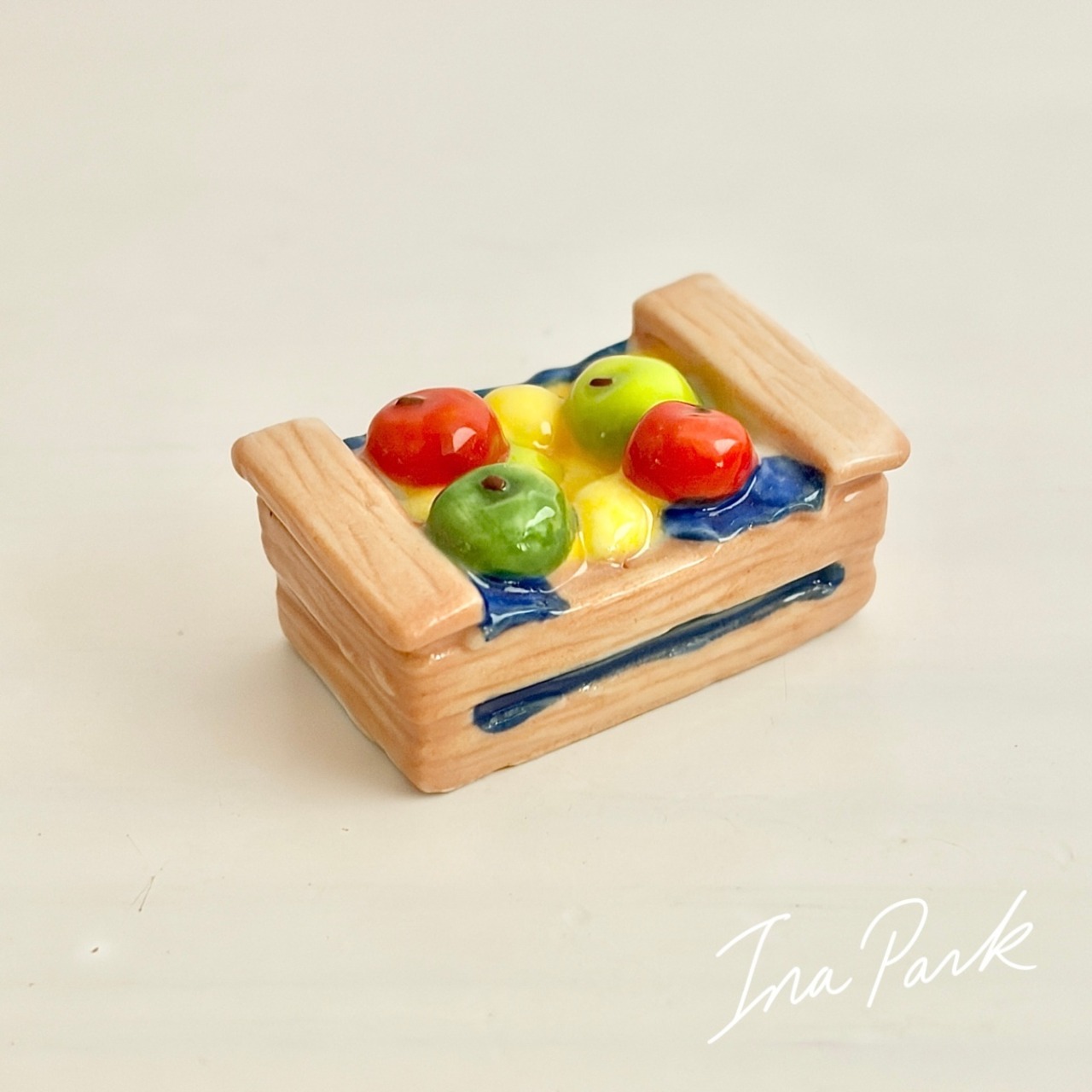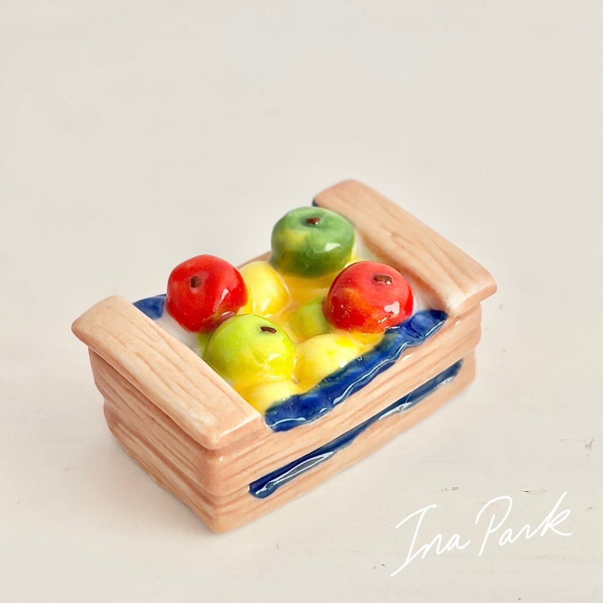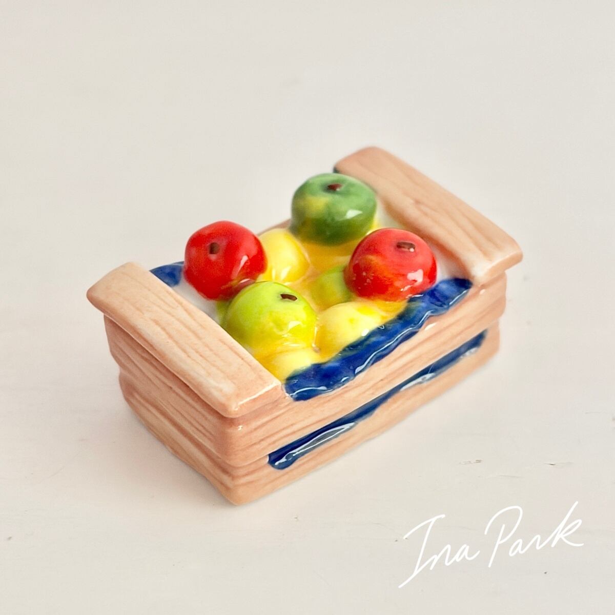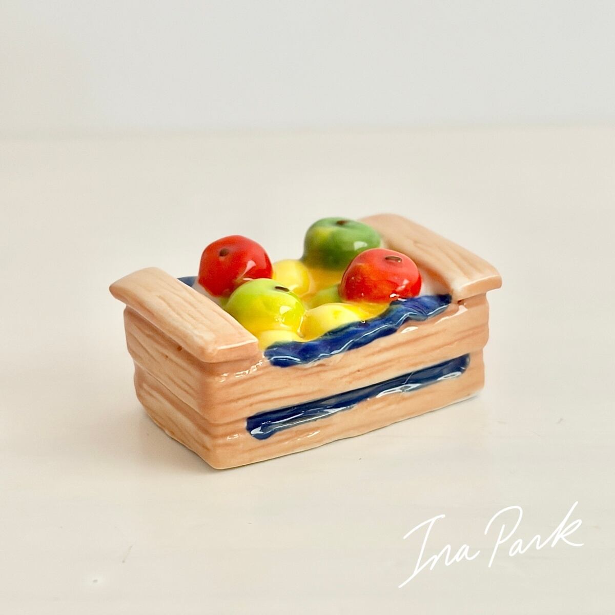ノルマンディーのりんごの木箱 フェーヴ フェーブ フランス製 ミニチュア 陶器 雑貨 置物