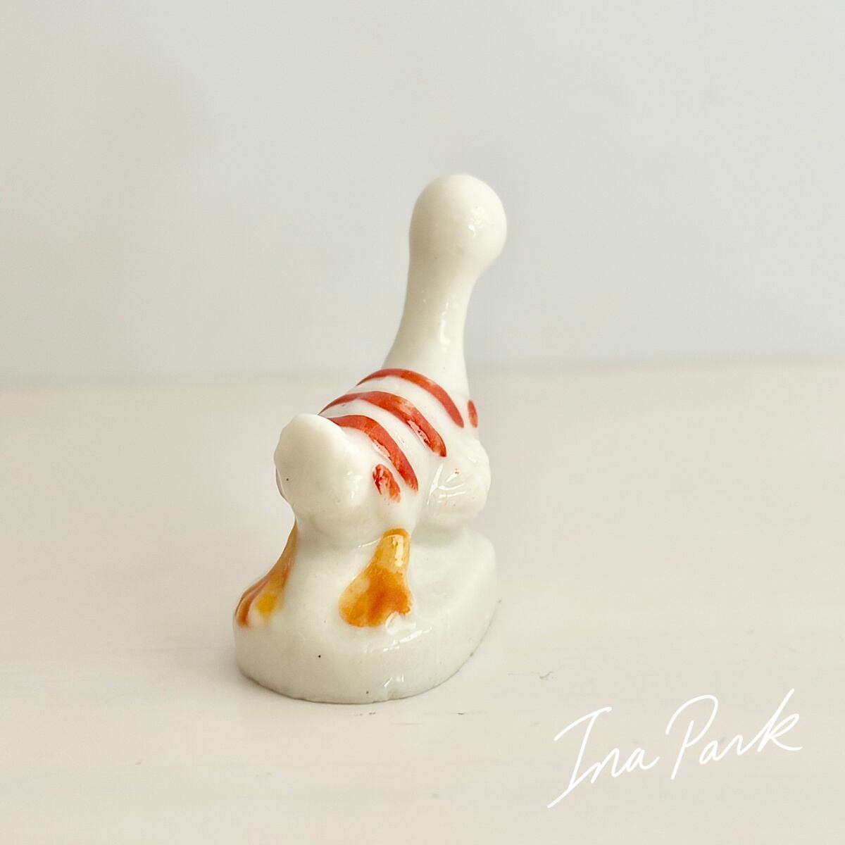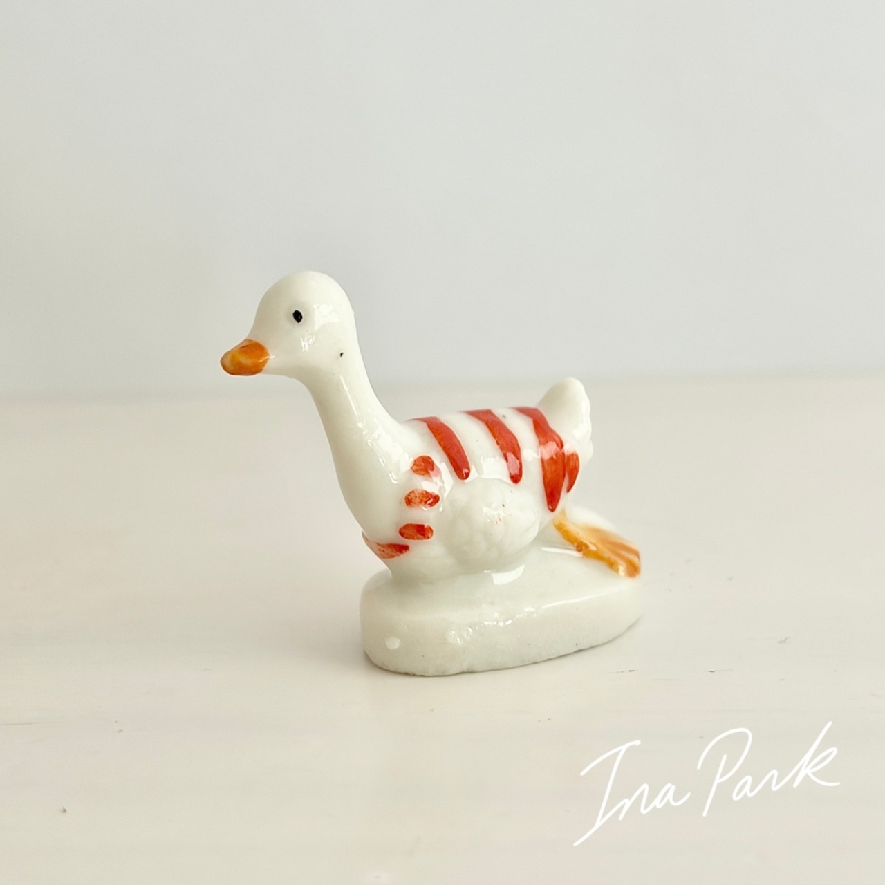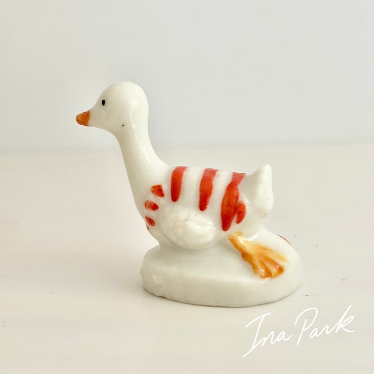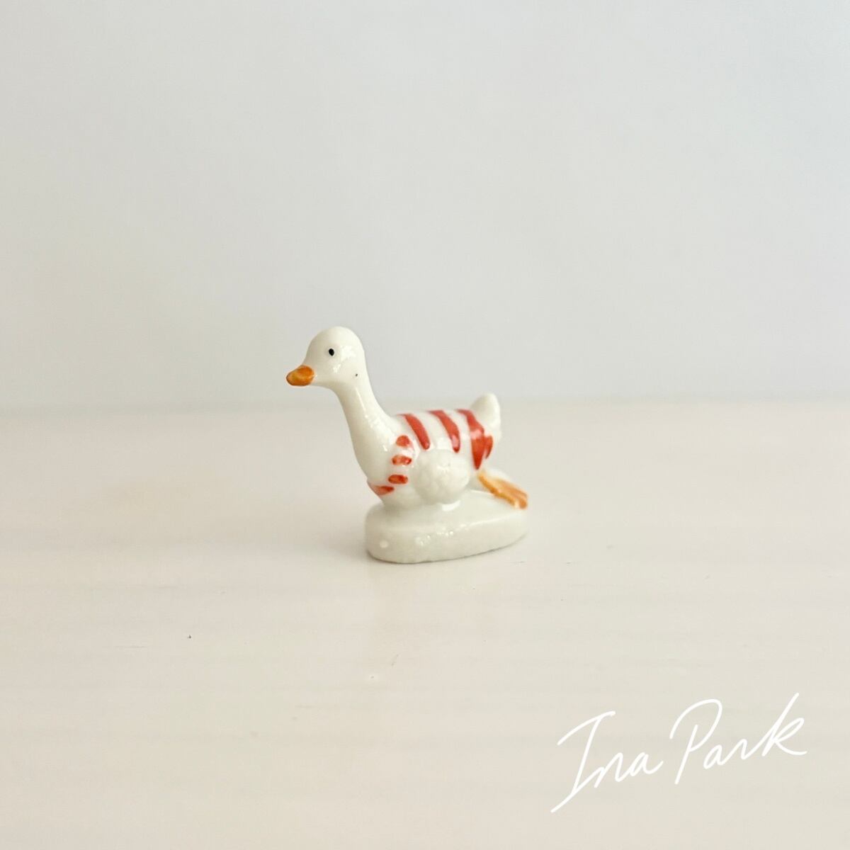 ヴィンテージ 泳ぐアヒルのフェーヴ フェーブ フランス製 ミニチュア 陶器 雑貨 置物