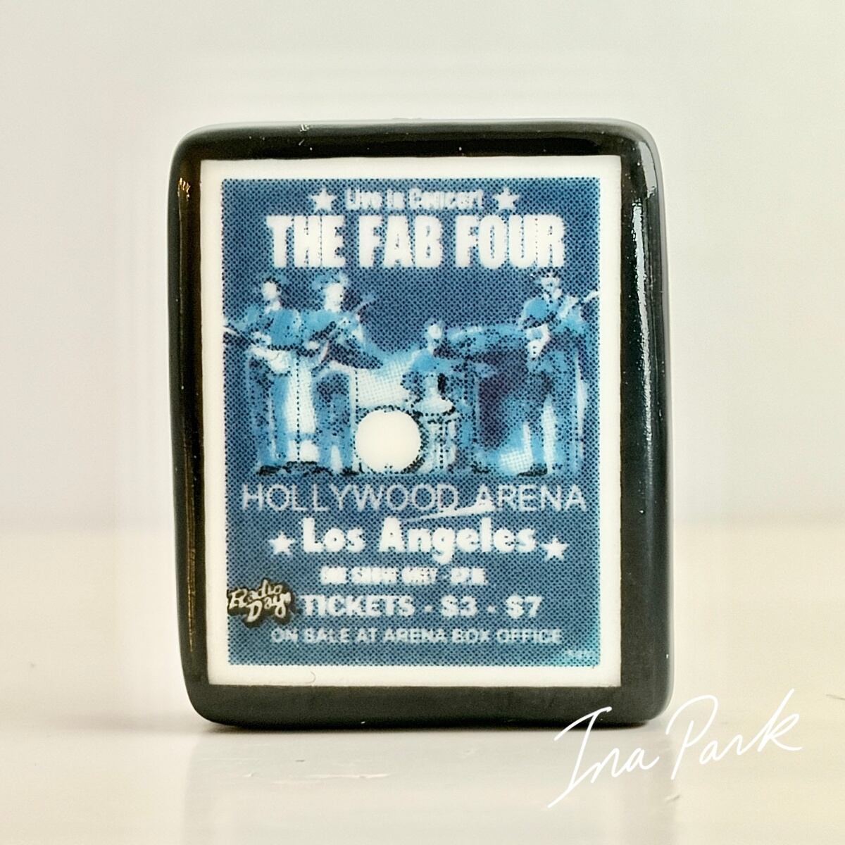 ザ・ビートルズ アメリカ公演ポスターのフェーヴ フェーブ フランス製 ミニチュア 陶器 雑貨 置物