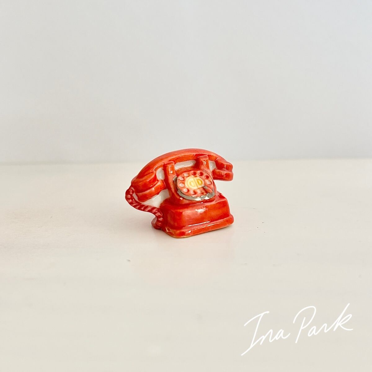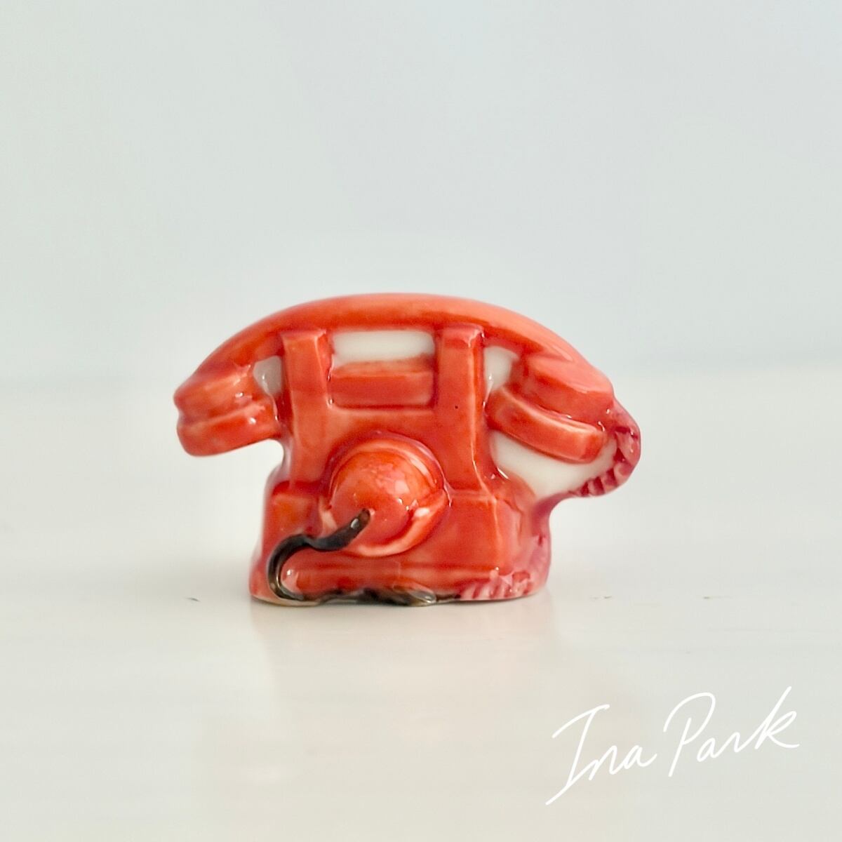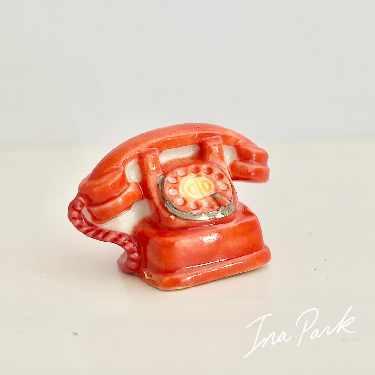 赤いダイヤル式電話のフェーヴ フェーブ フランス製 ミニチュア 陶器 雑貨 置物
