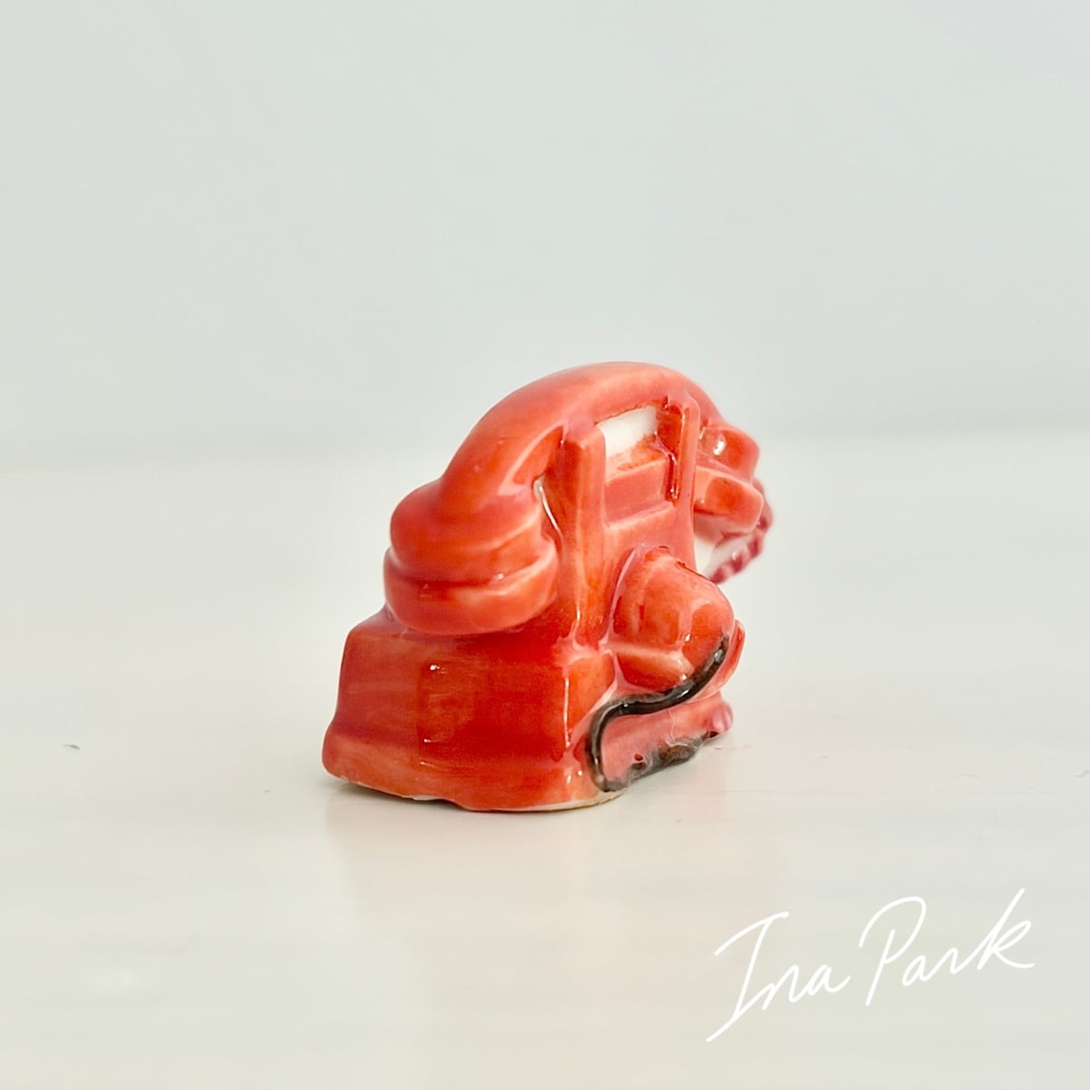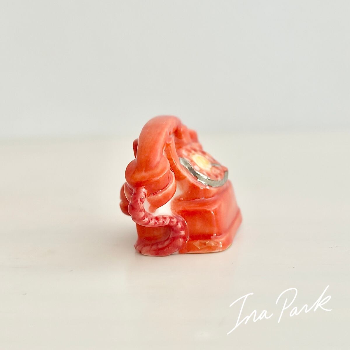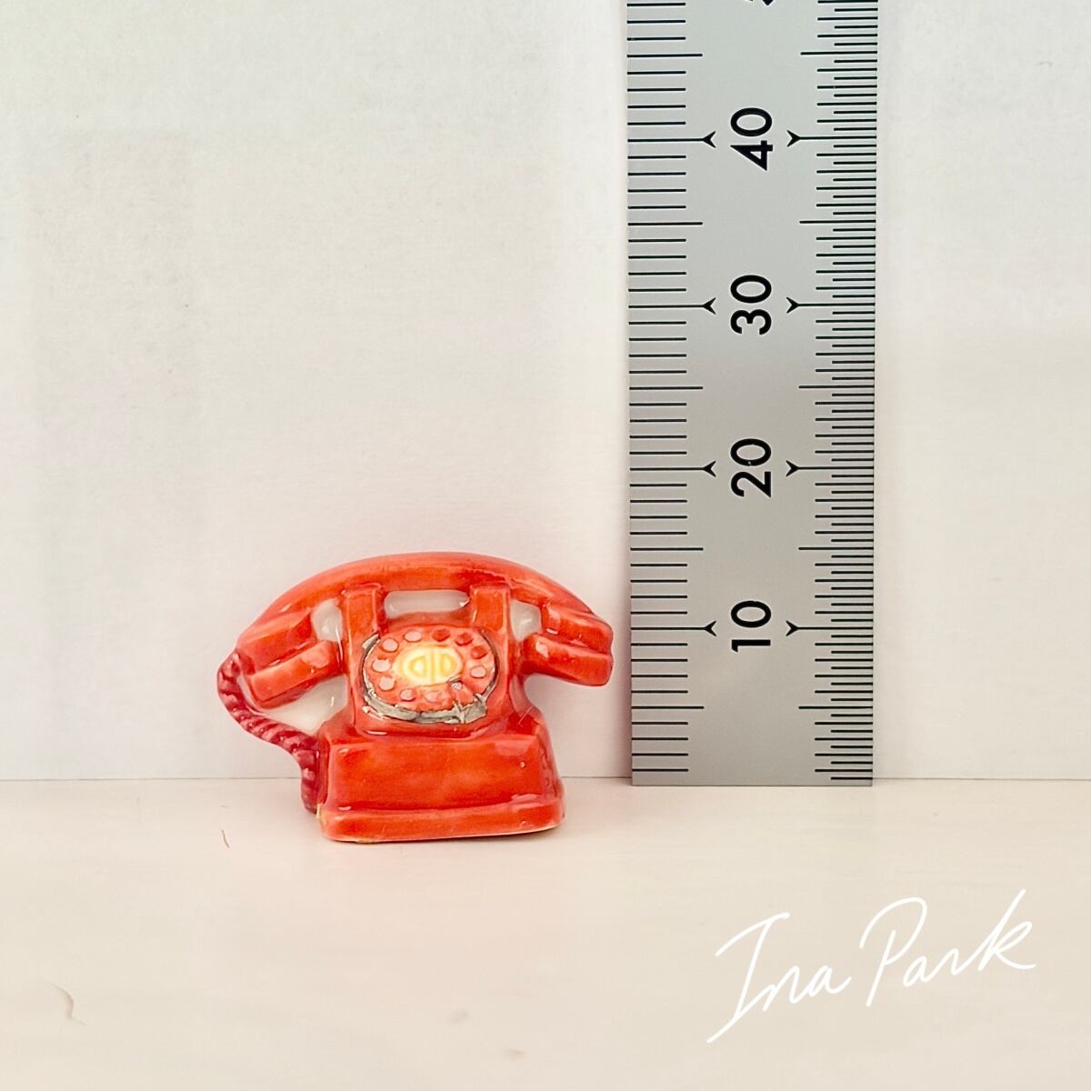 赤いダイヤル式電話のフェーヴ フェーブ フランス製 ミニチュア 陶器 雑貨 置物