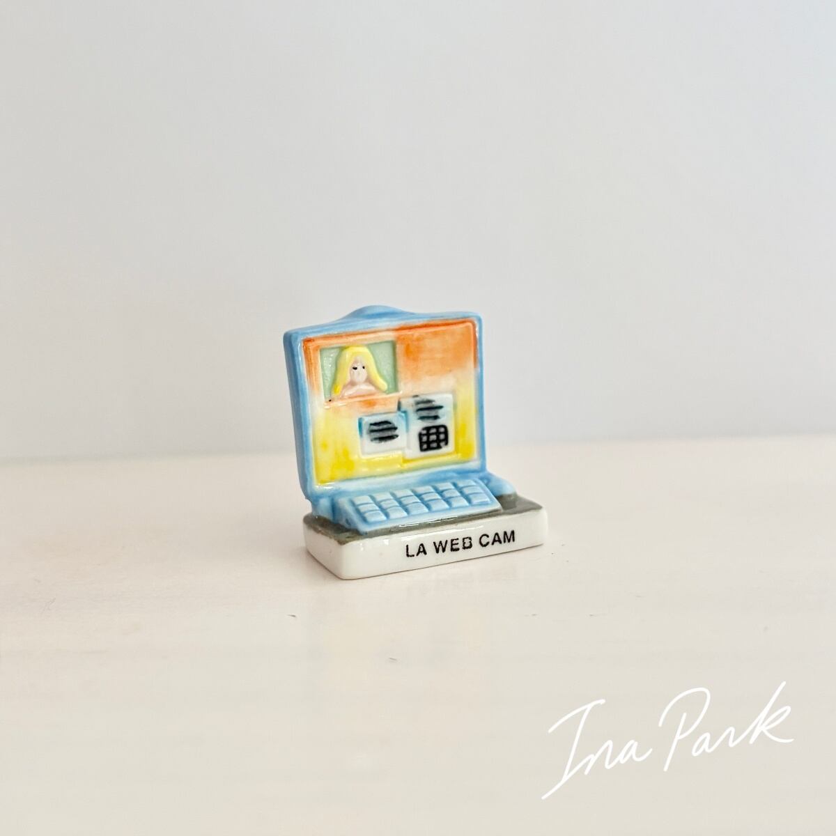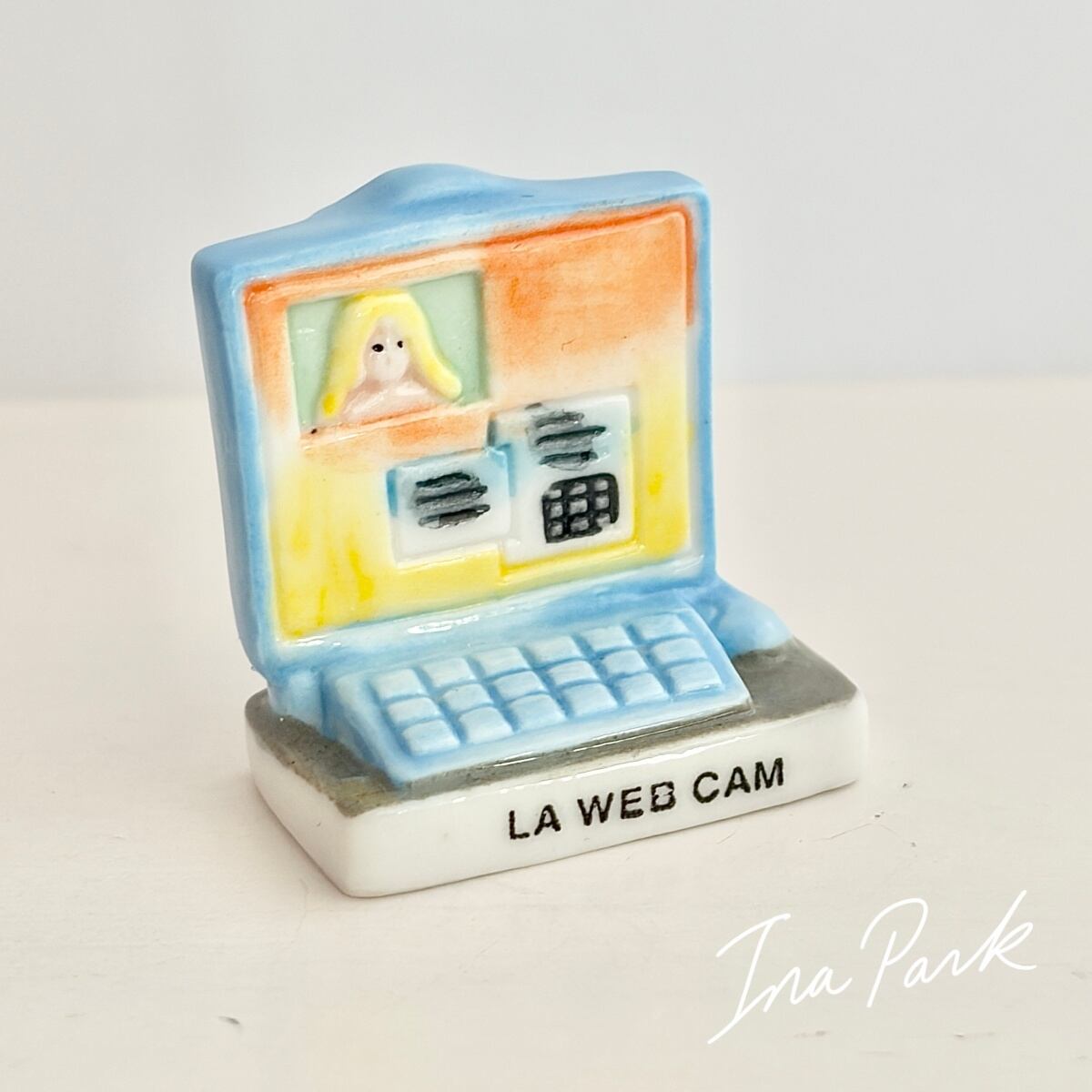 PC パソコン オンライン通話のフェーヴ フェーブ フランス製 ミニチュア 陶器 雑貨 置物