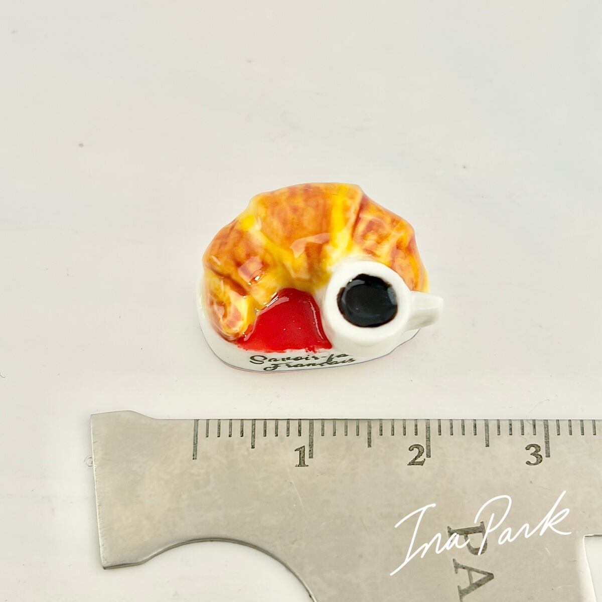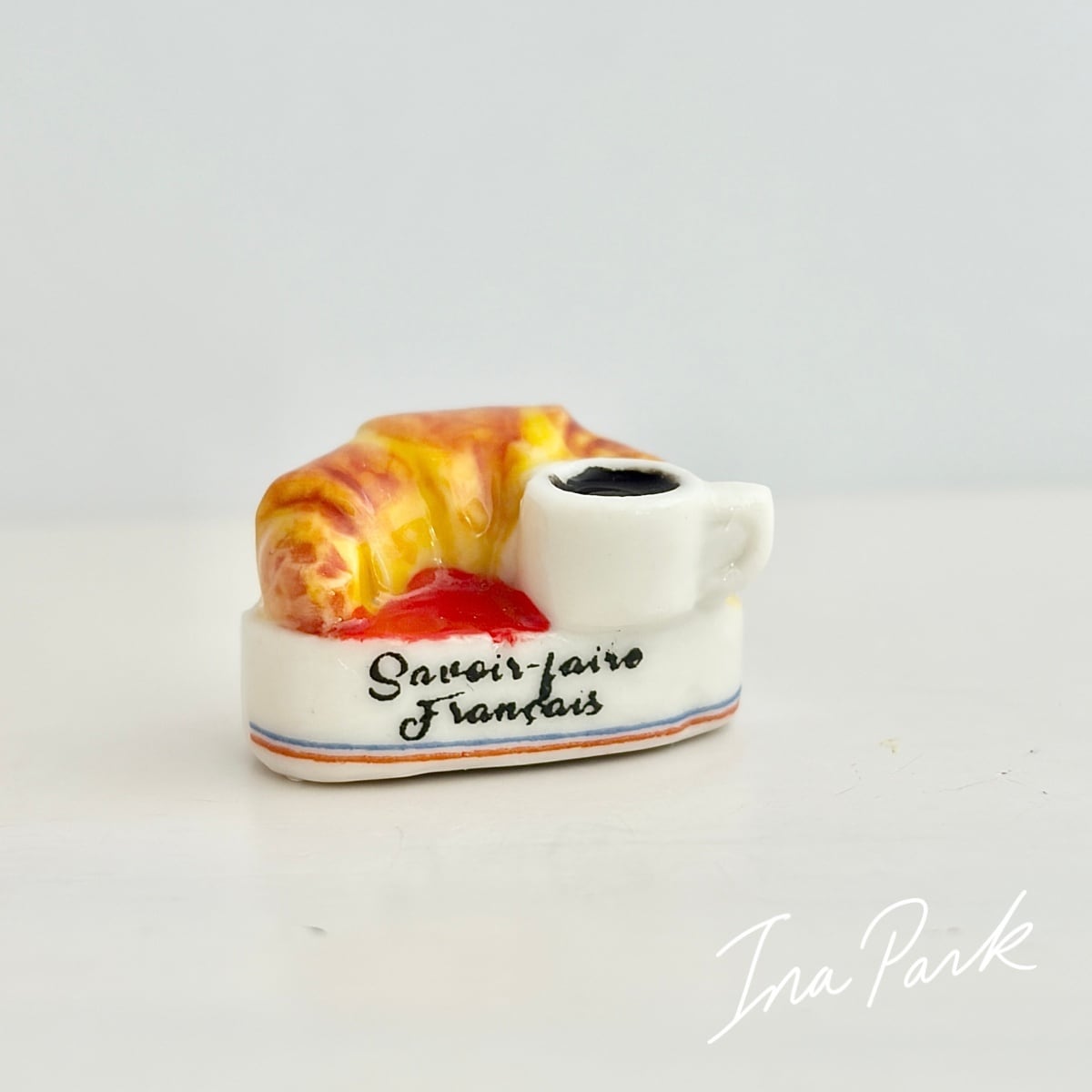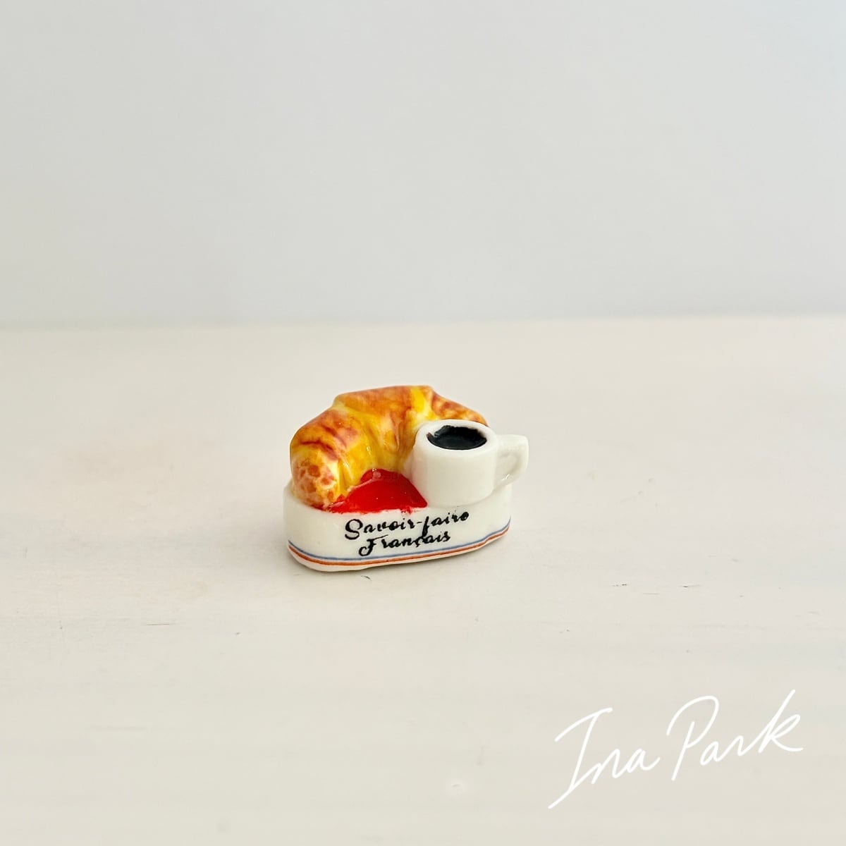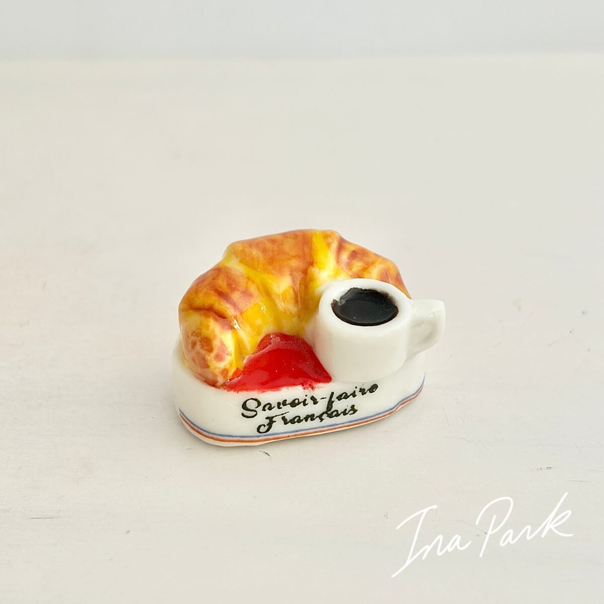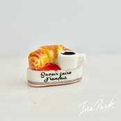 クロワッサンとコーヒーのフェーヴ フェーブ フランス製 ミニチュア 陶器 雑貨 置物