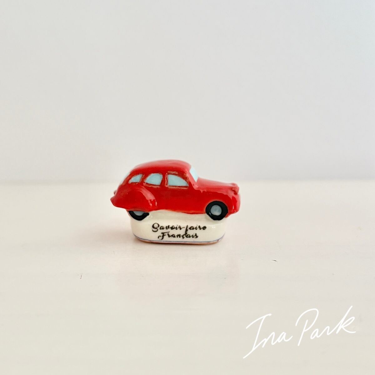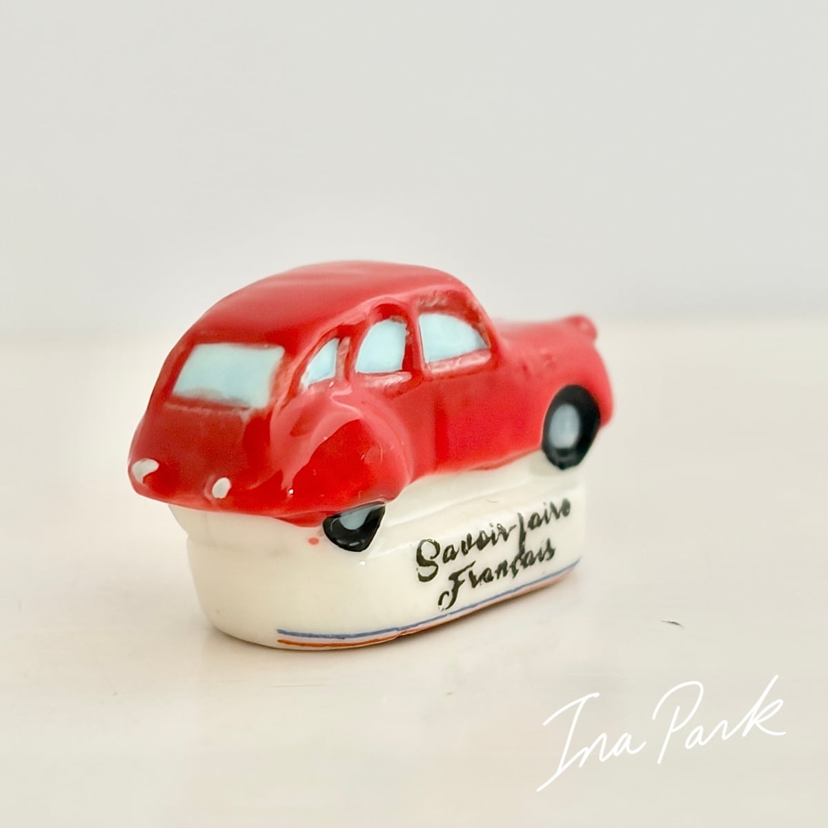 赤いフランス車のフェーヴ フェーブ フランス製 ミニチュア 陶器 雑貨 置物
