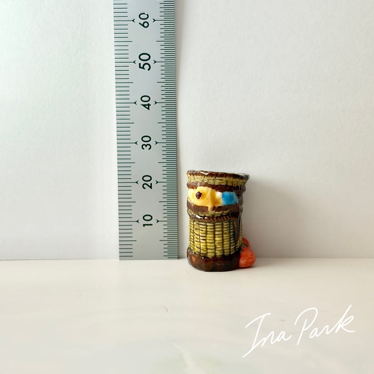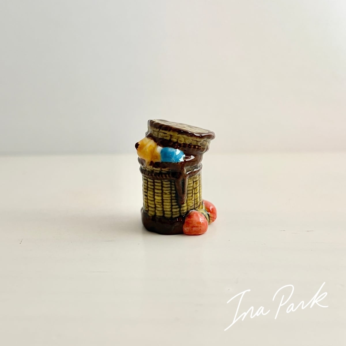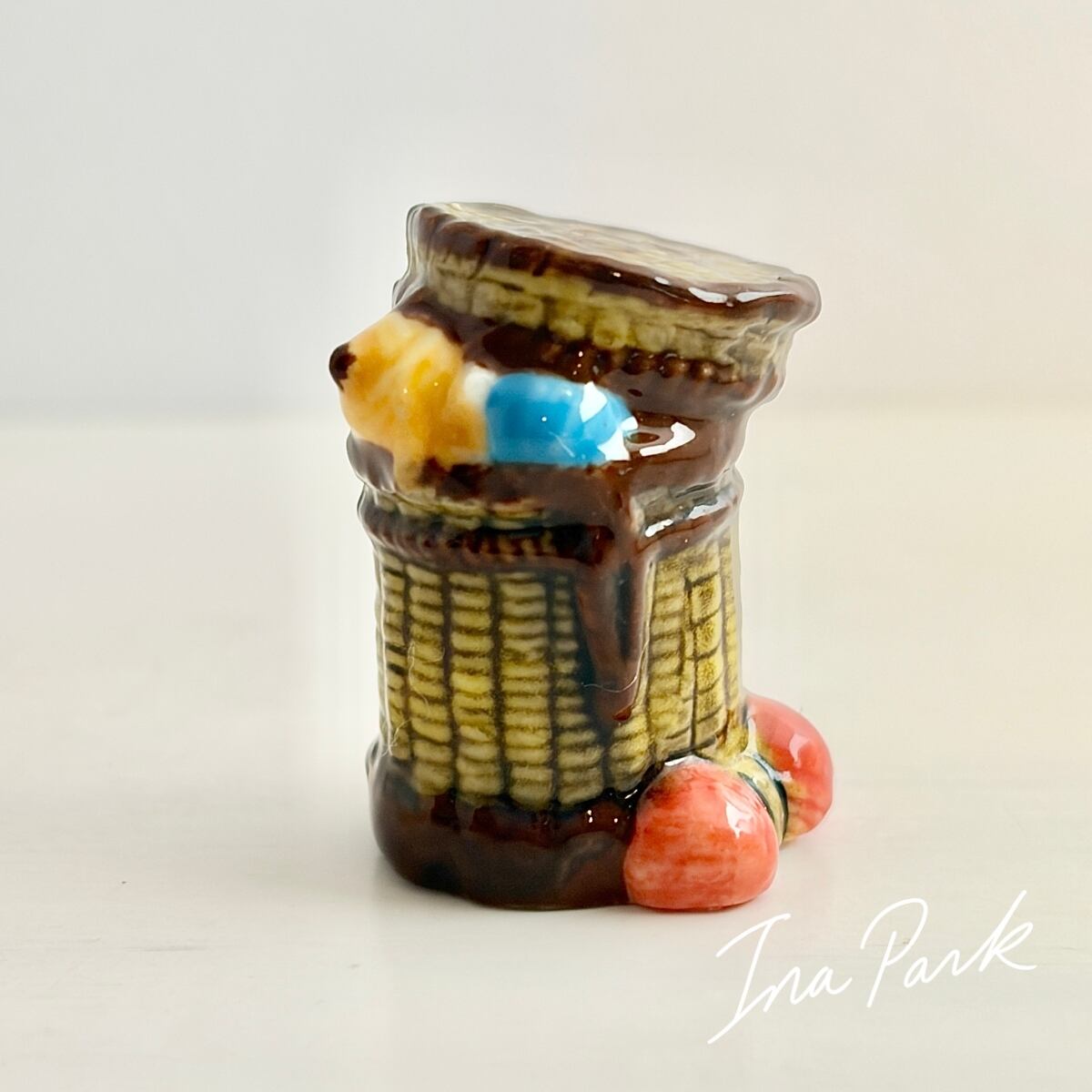 毛糸入れのバスケットのフェーヴ フェーブ フランス製 ミニチュア 陶器 雑貨 置物