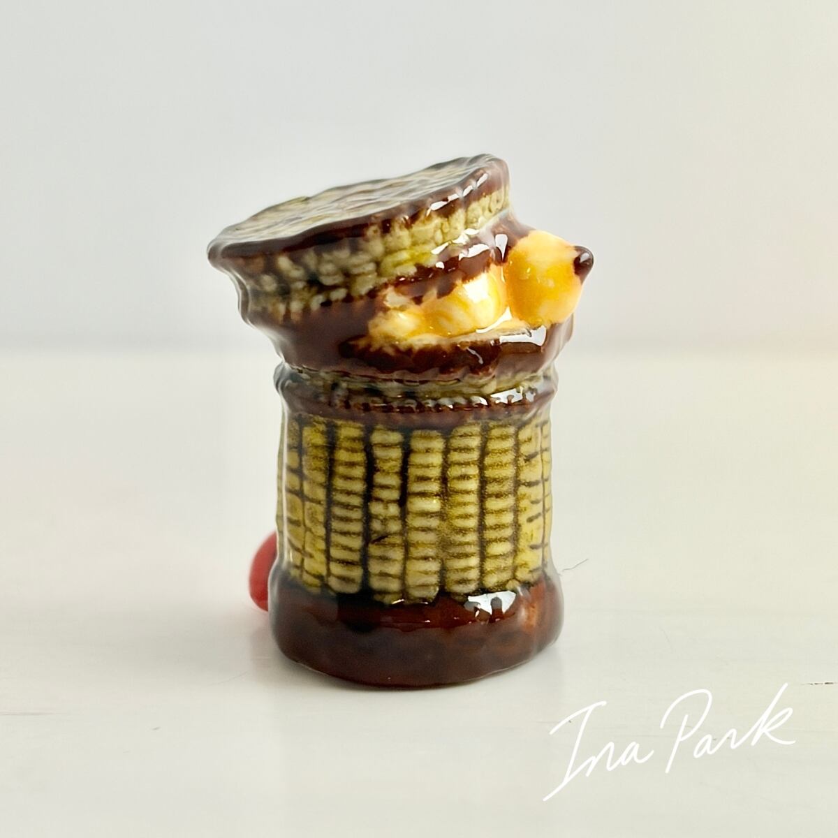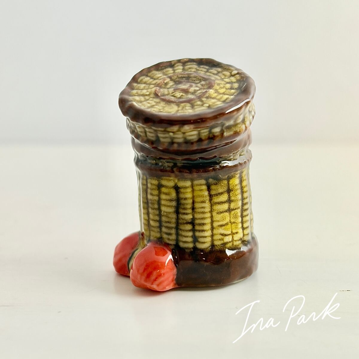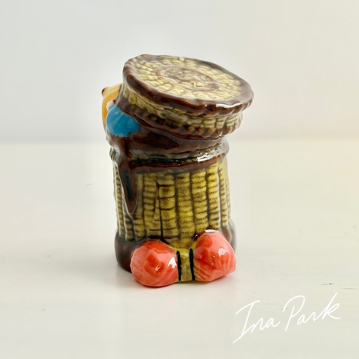 毛糸入れのバスケットのフェーヴ フェーブ フランス製 ミニチュア 陶器 雑貨 置物