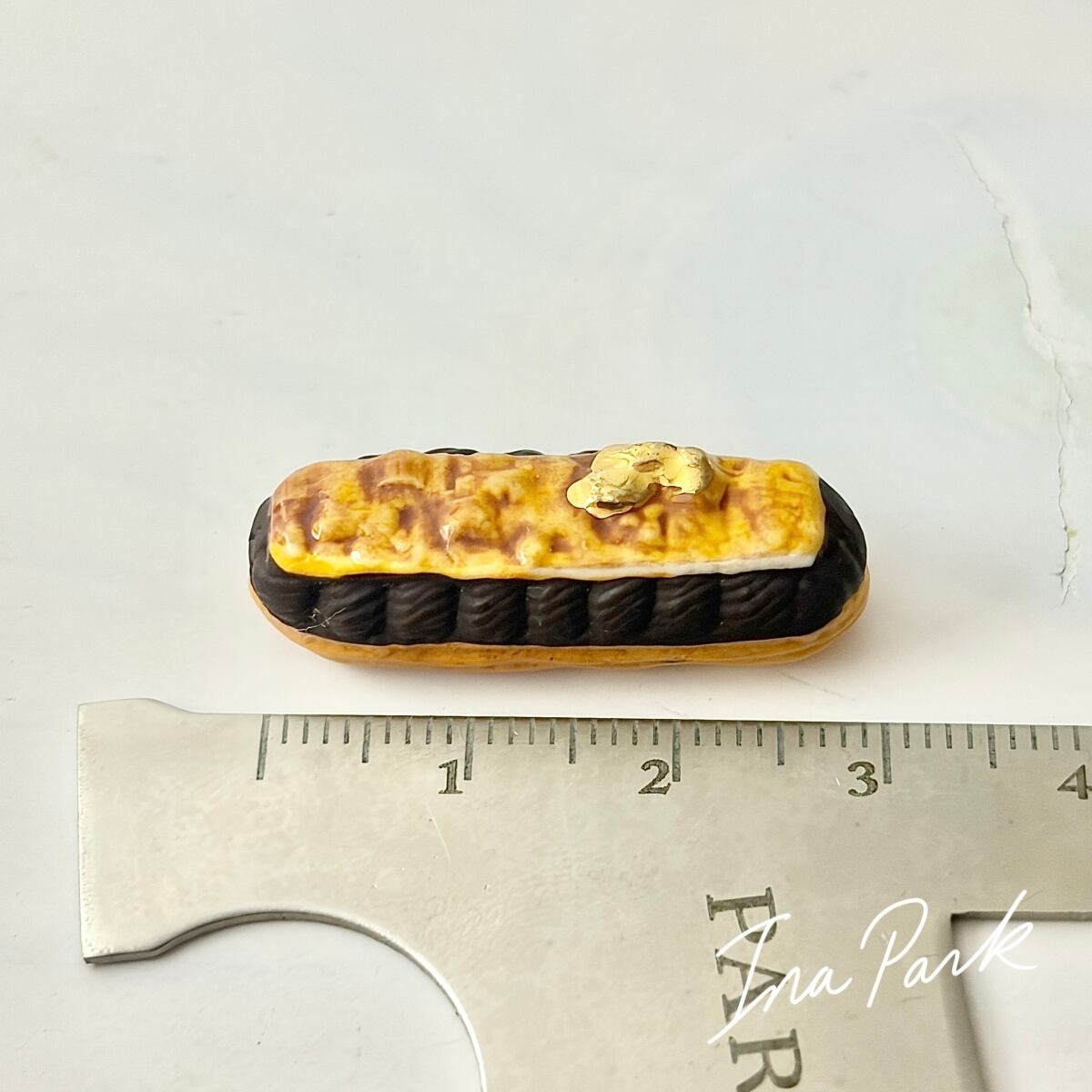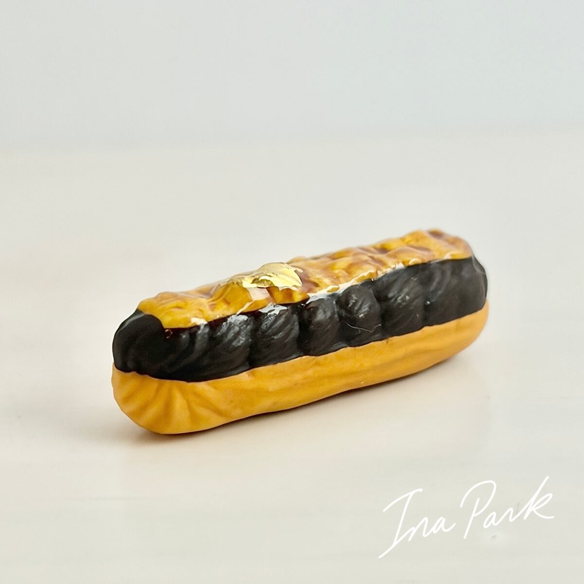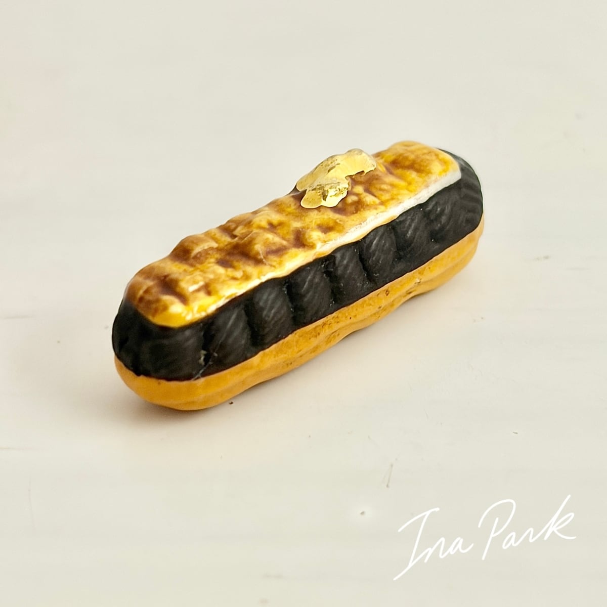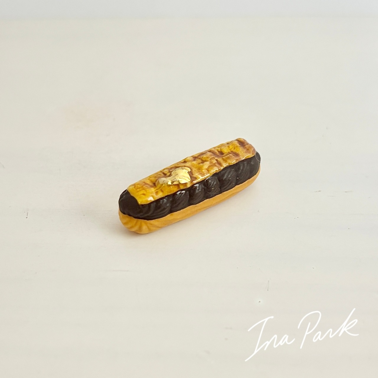 金彩入り チョコレートエクレアのフェーヴ フェーブ フランス製 ミニチュア 陶器 雑貨 置物