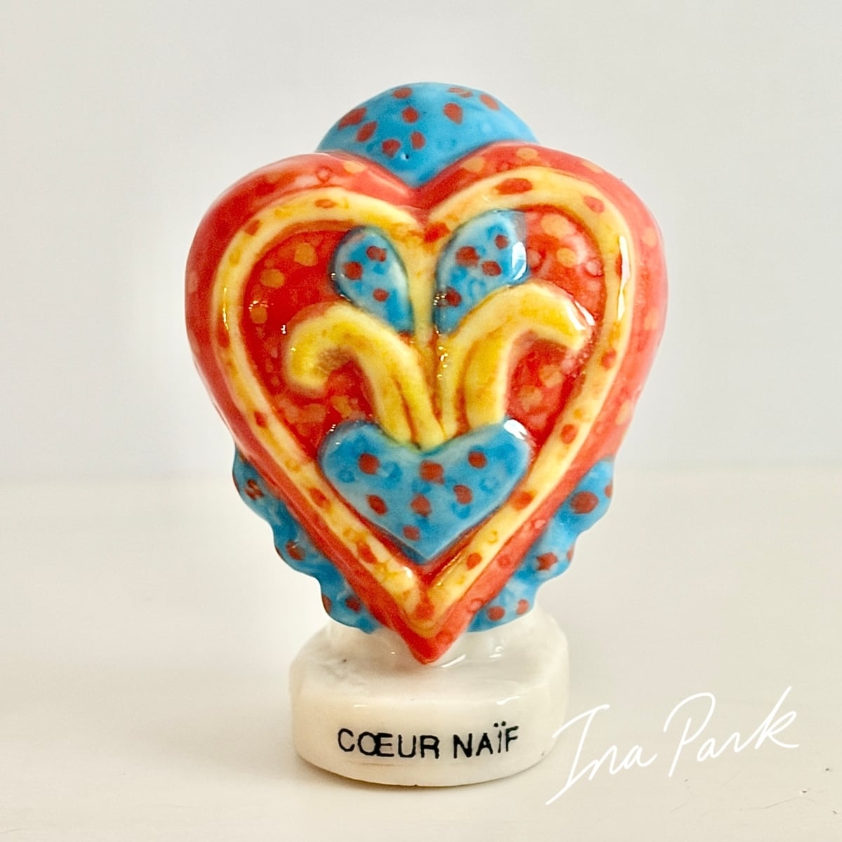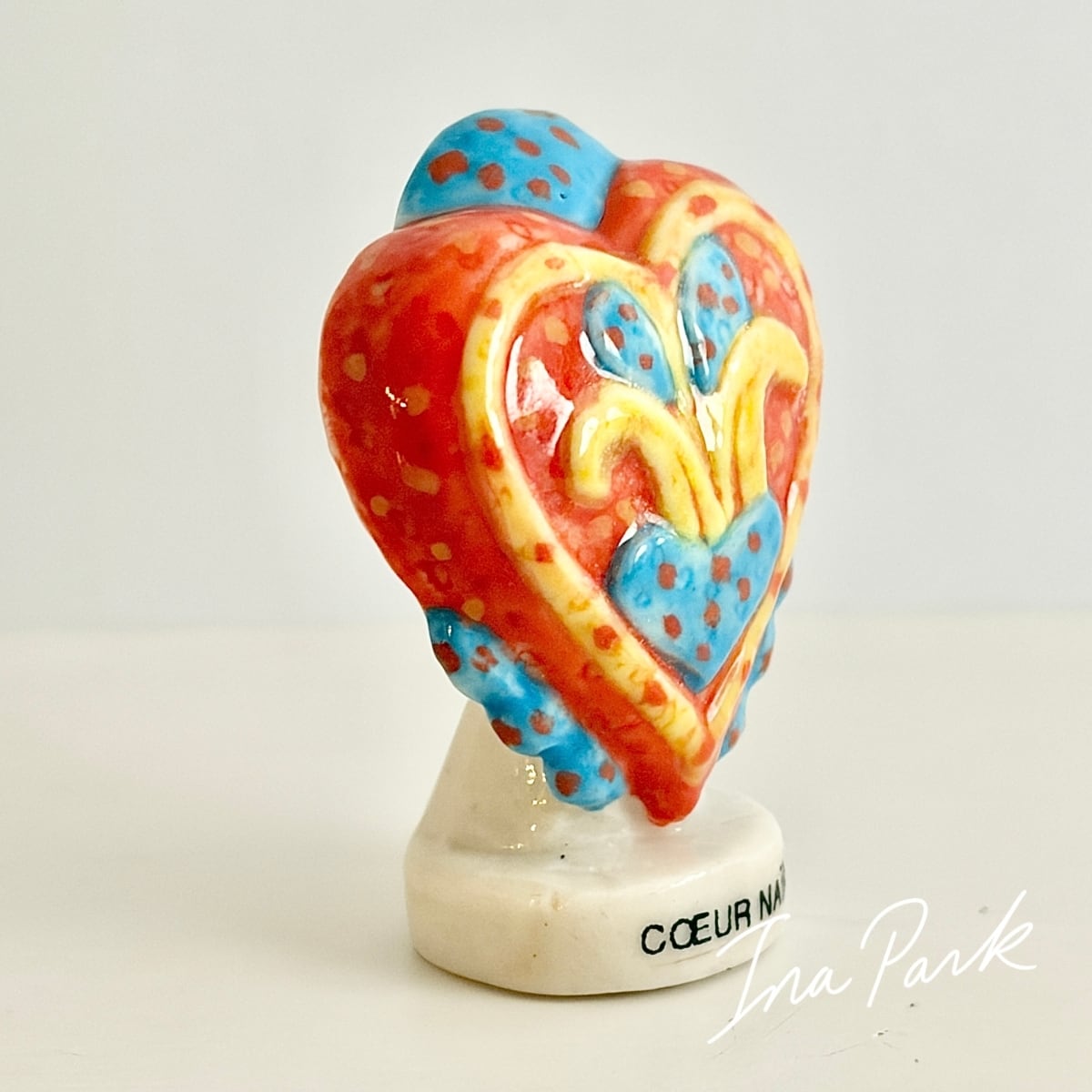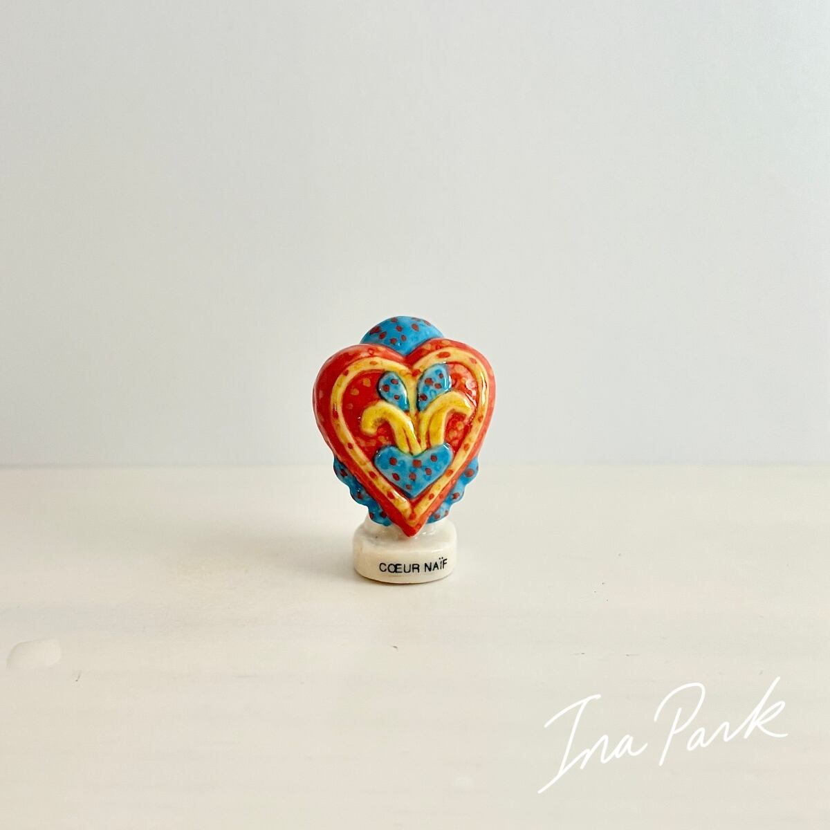 1999ヴィンテージ エモーショナルなハートのフェーヴ フェーブ フランス製 ミニチュア 陶器 雑貨 置物