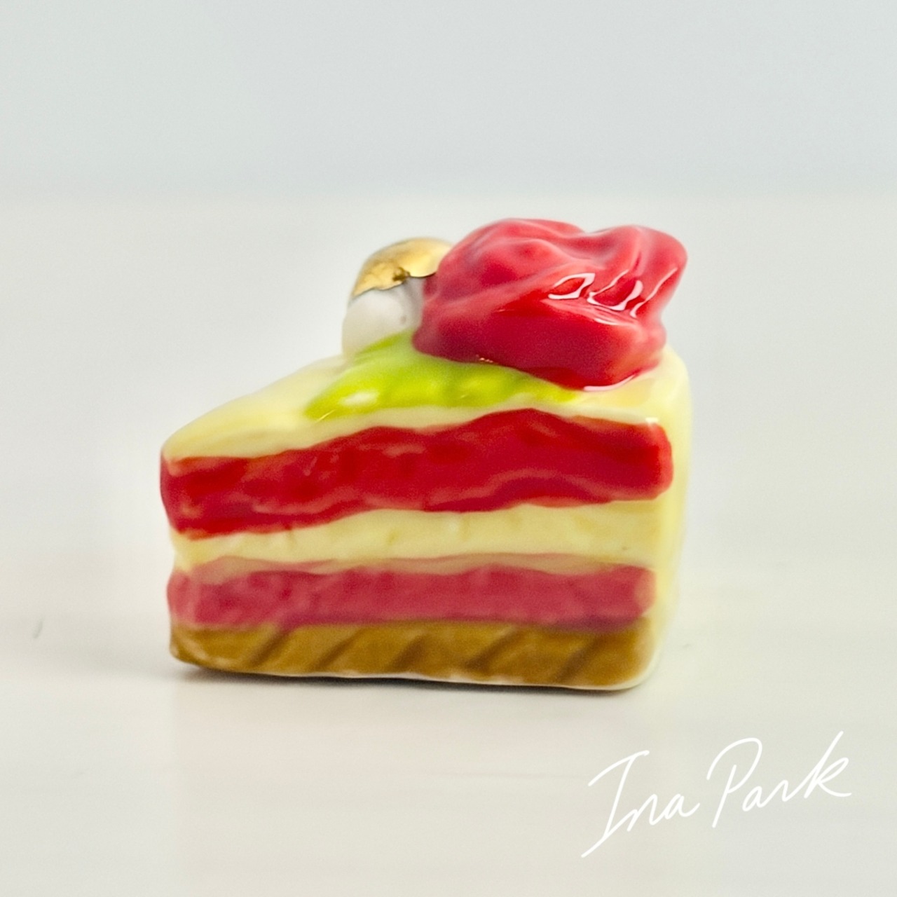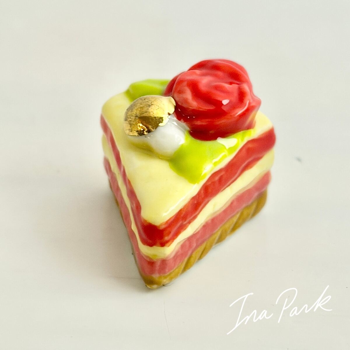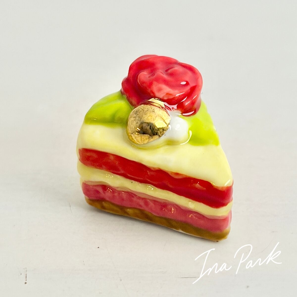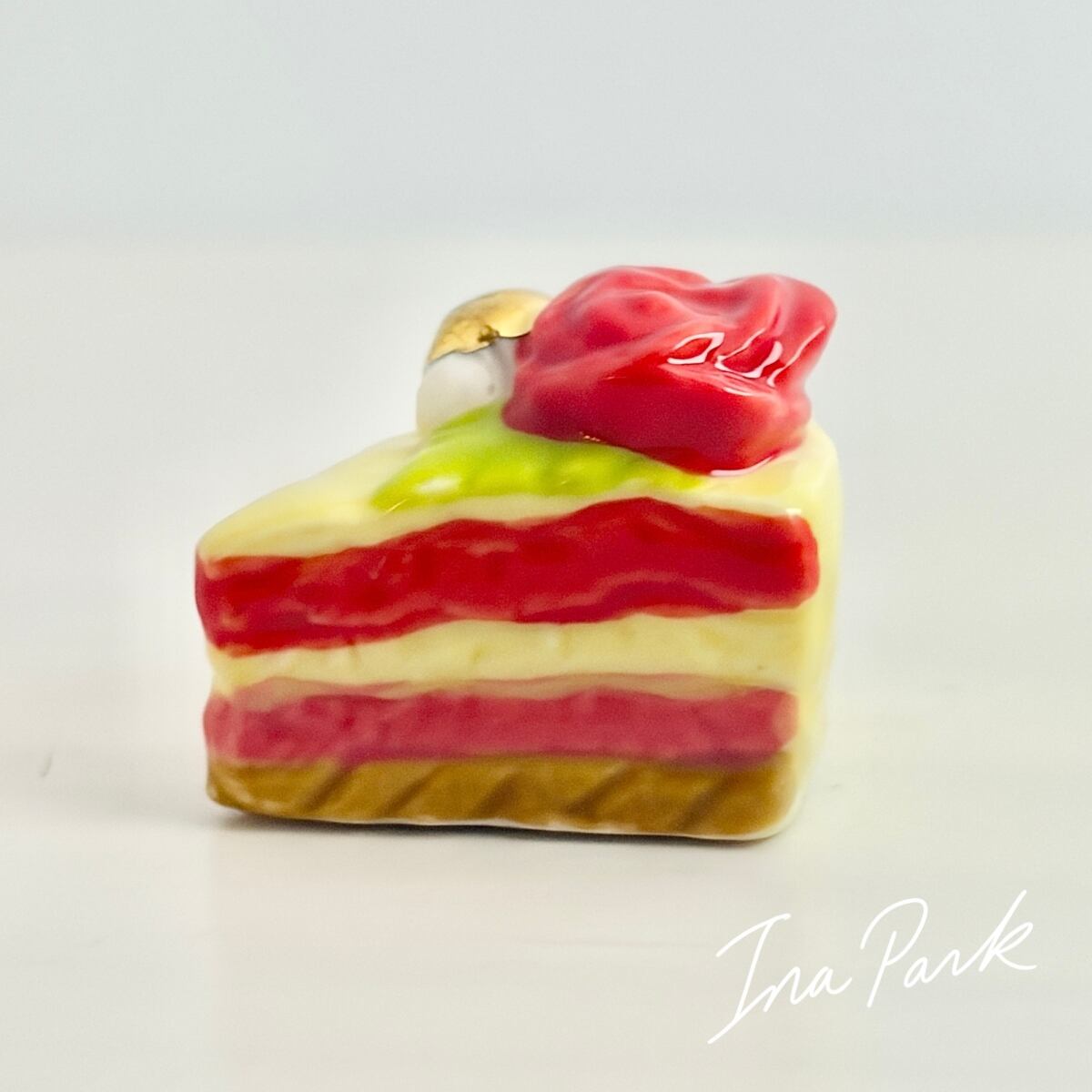 ラ・ファム・ショコラ バラの乗ったカットケーキ チョコレート フェーヴ フェーブ フランス製 ミニチュア 陶器 雑貨 置物
