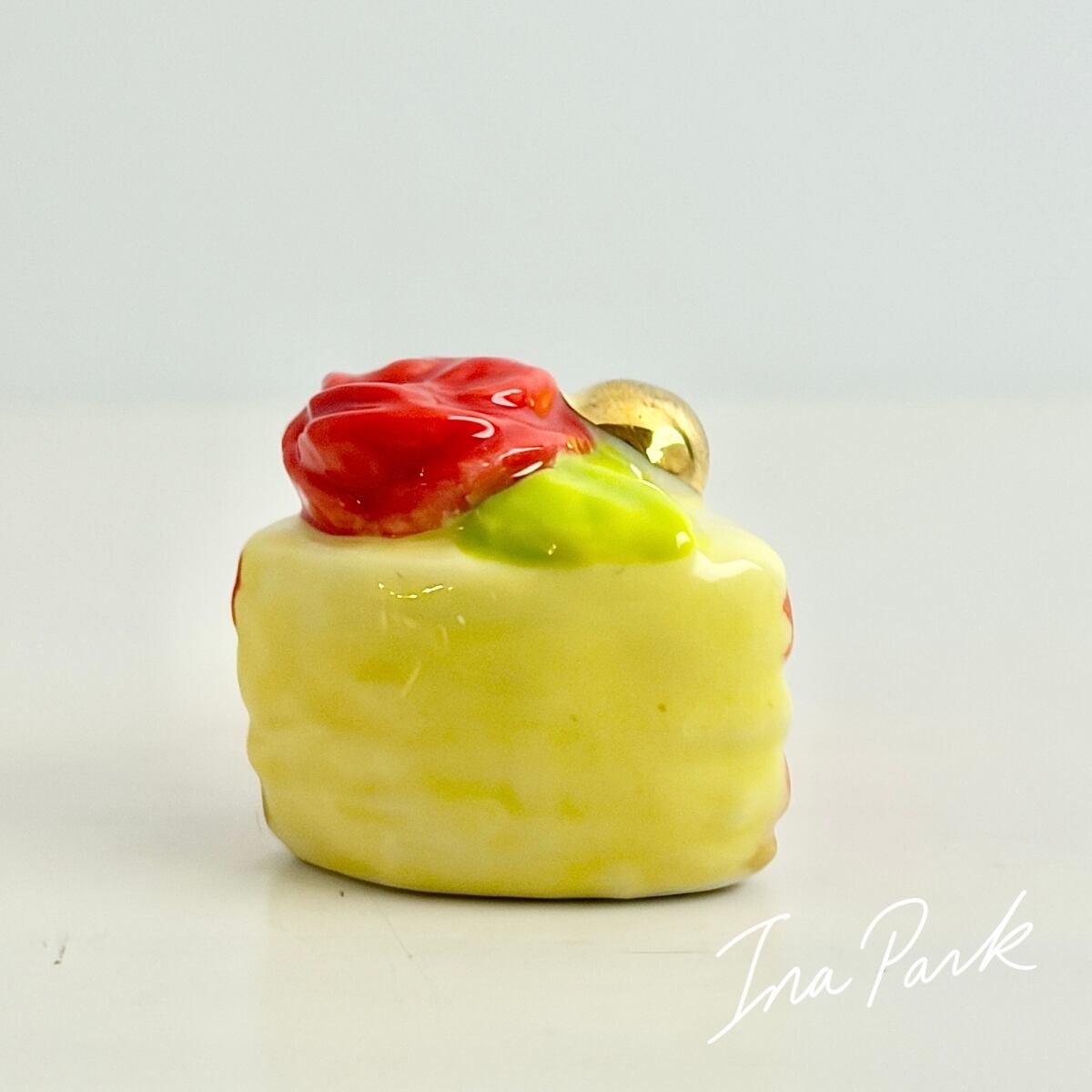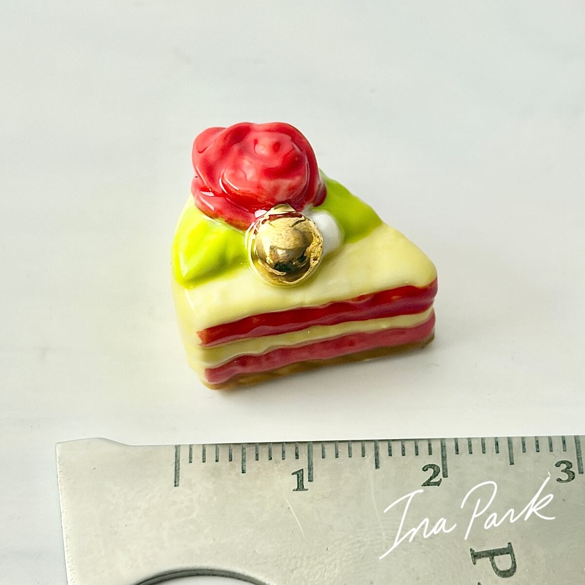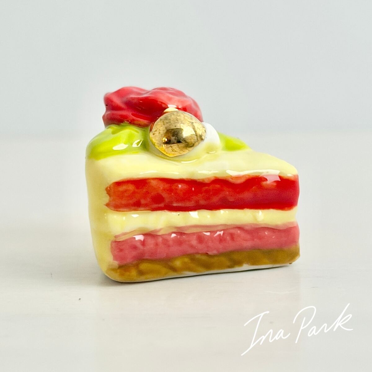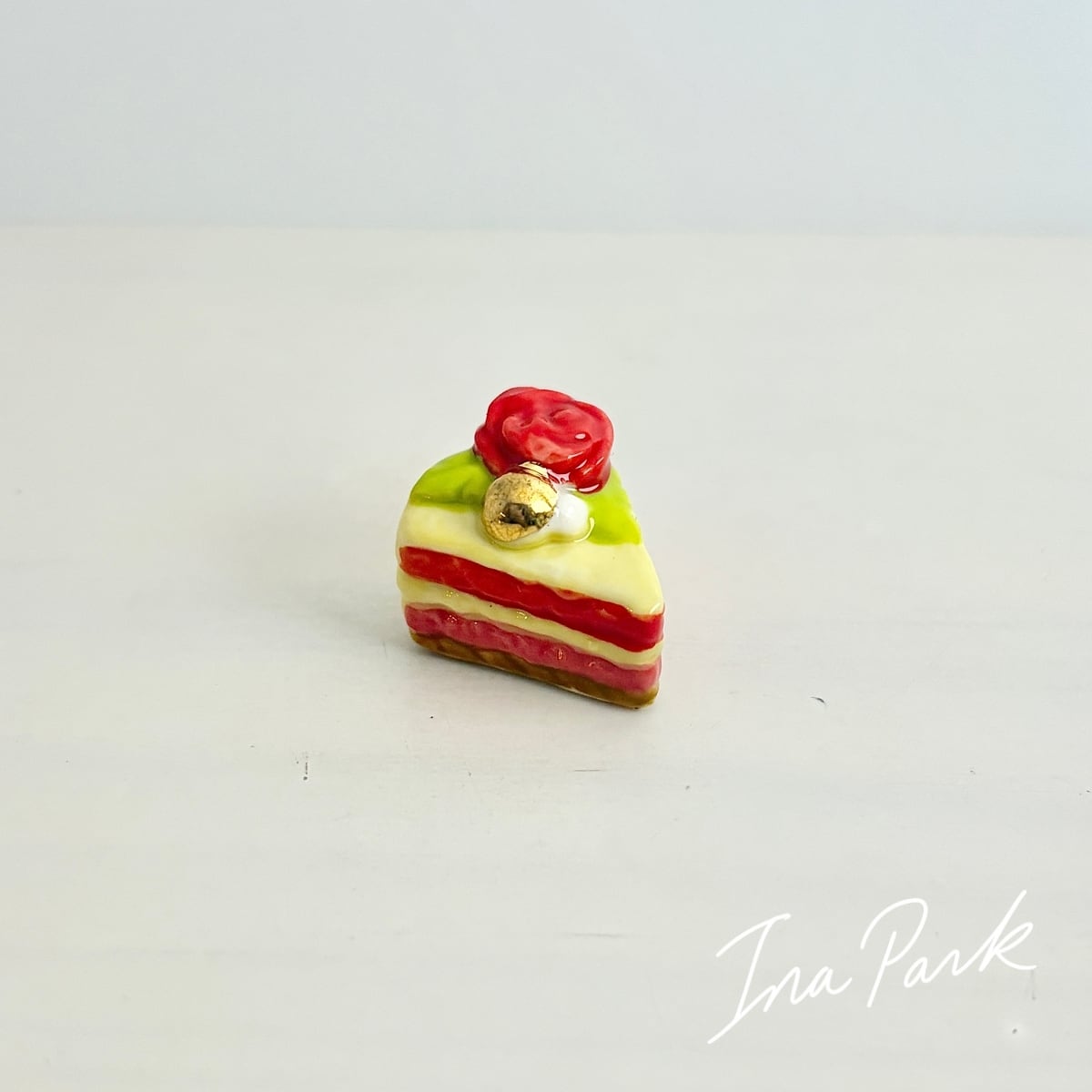 ラ・ファム・ショコラ バラの乗ったカットケーキ チョコレート フェーヴ フェーブ フランス製 ミニチュア 陶器 雑貨 置物