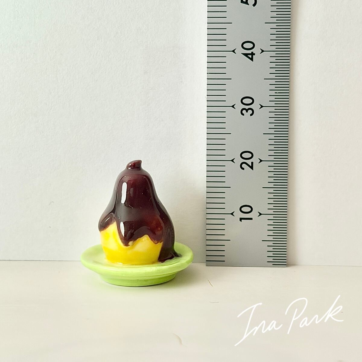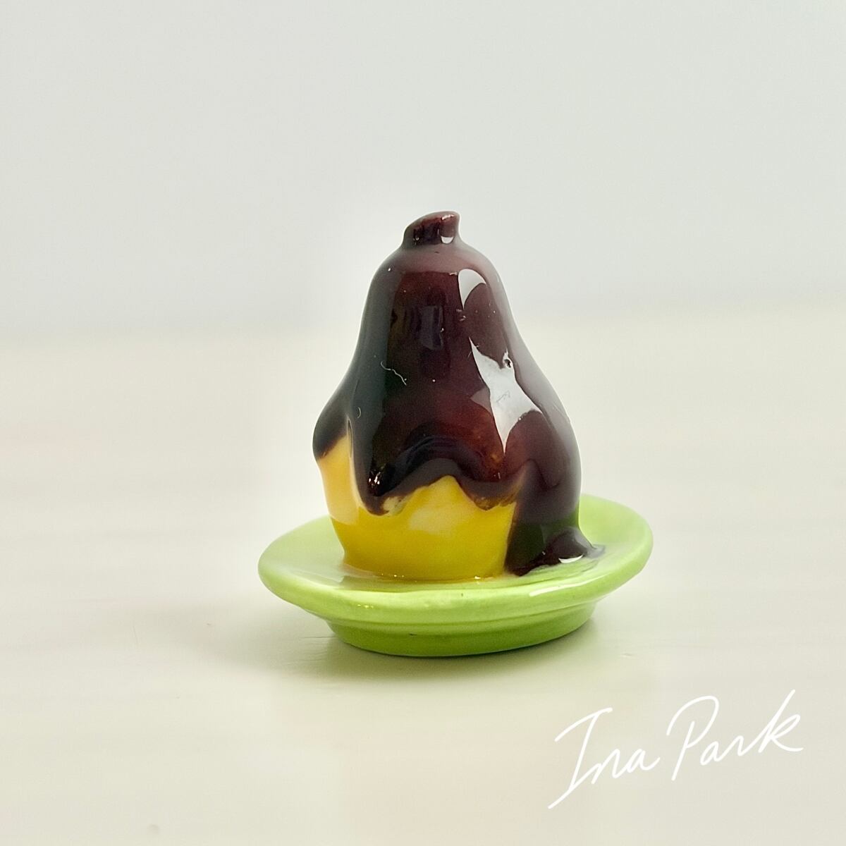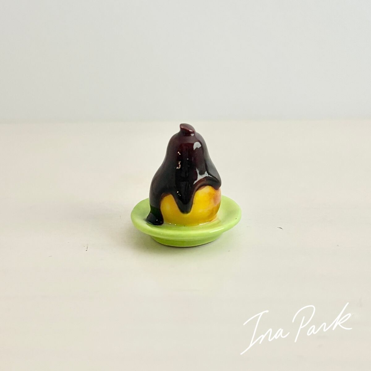 洋梨のチョコレートがけ デザートのフェーヴ フェーブ フランス製 ミニチュア 陶器 雑貨 置物