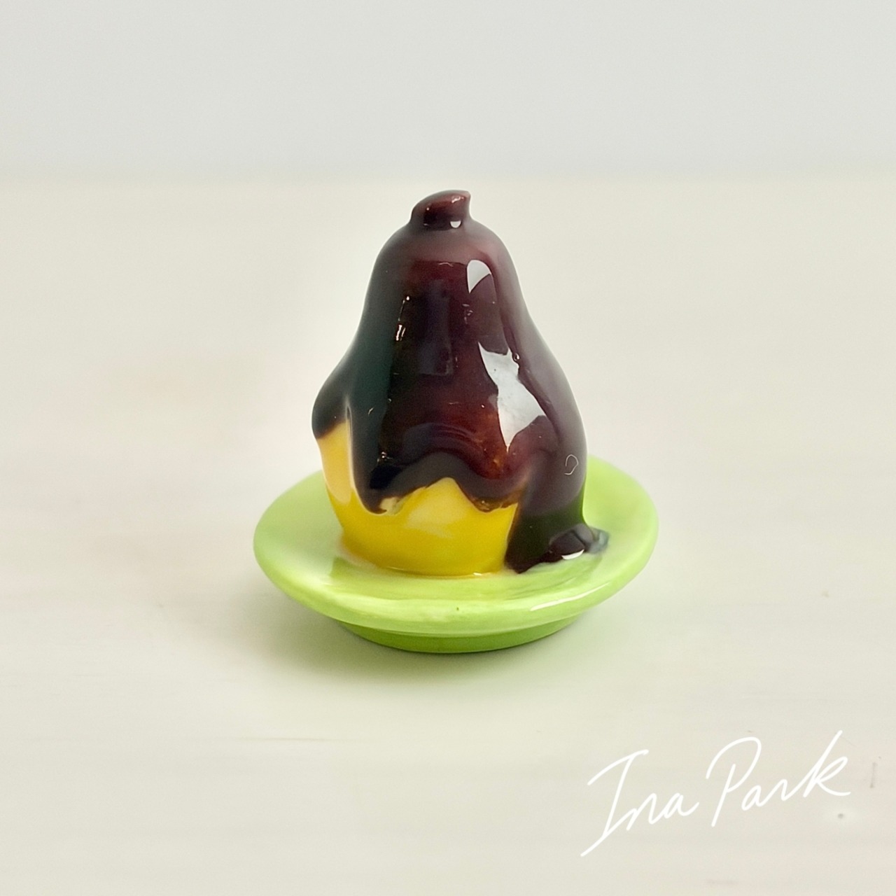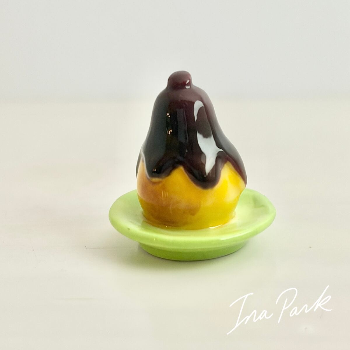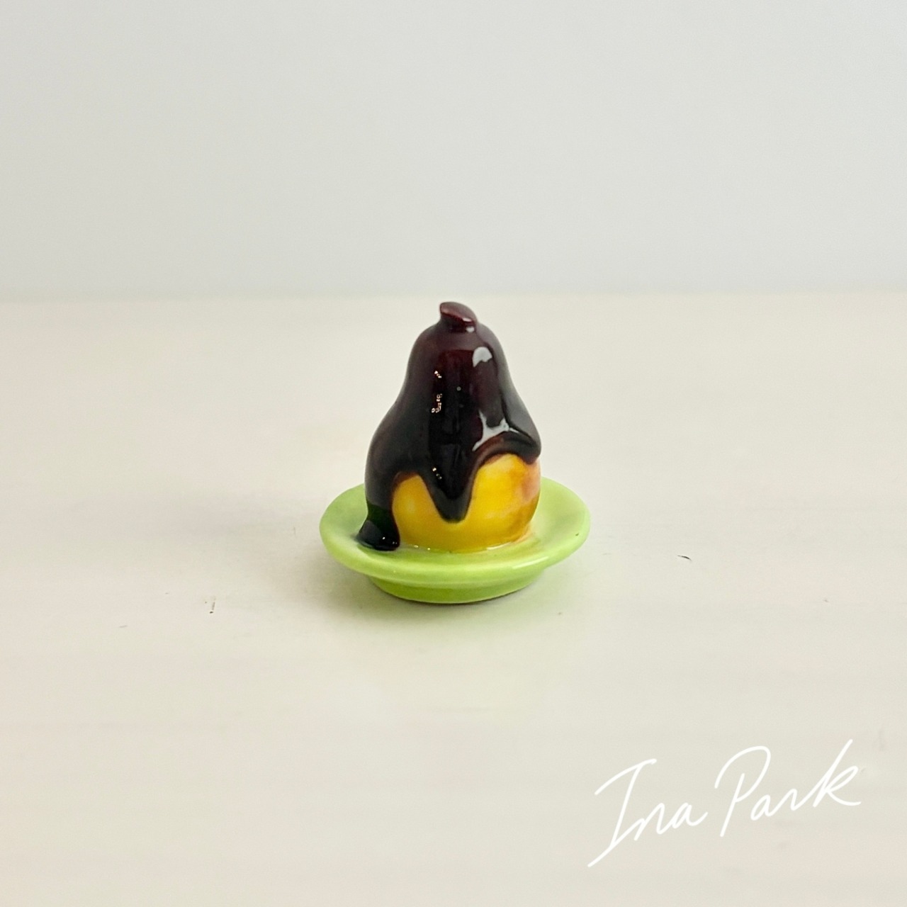 洋梨のチョコレートがけ デザートのフェーヴ フェーブ フランス製 ミニチュア 陶器 雑貨 置物