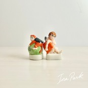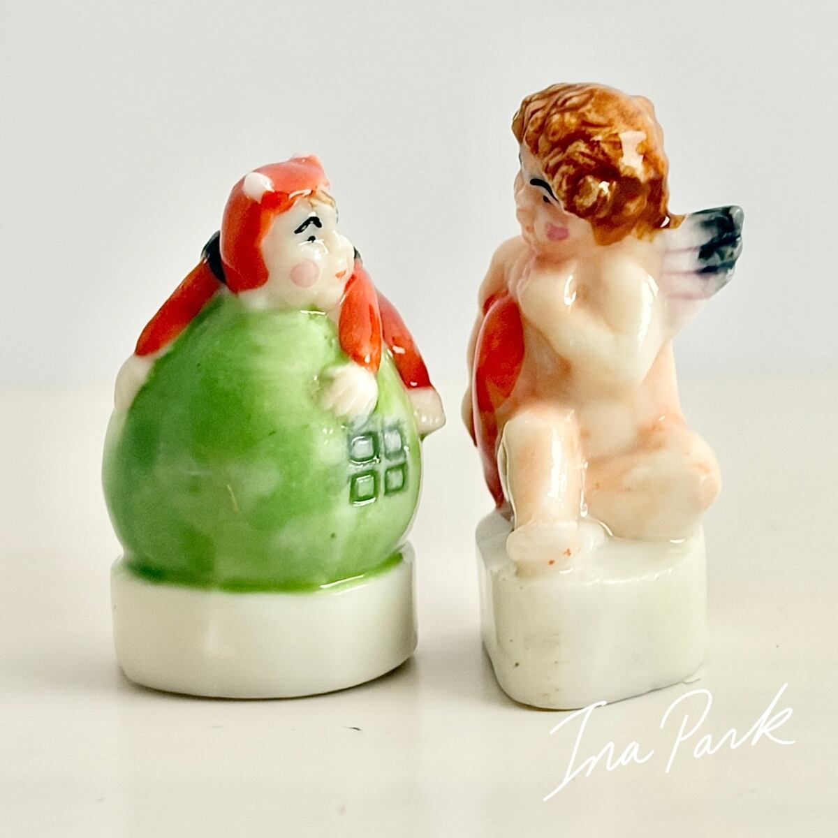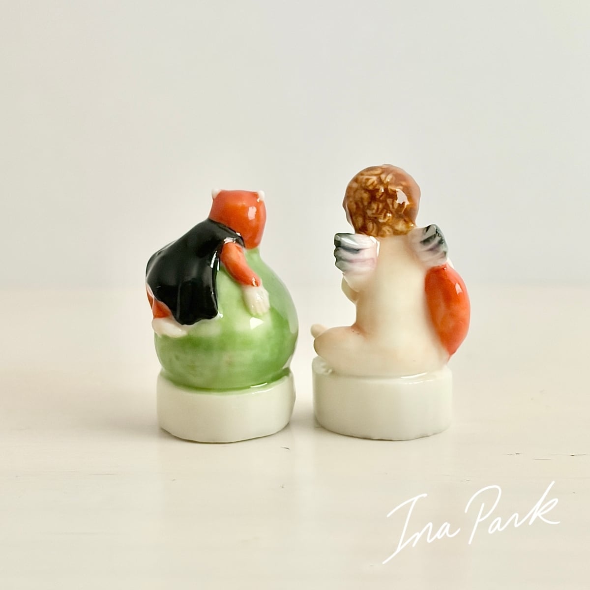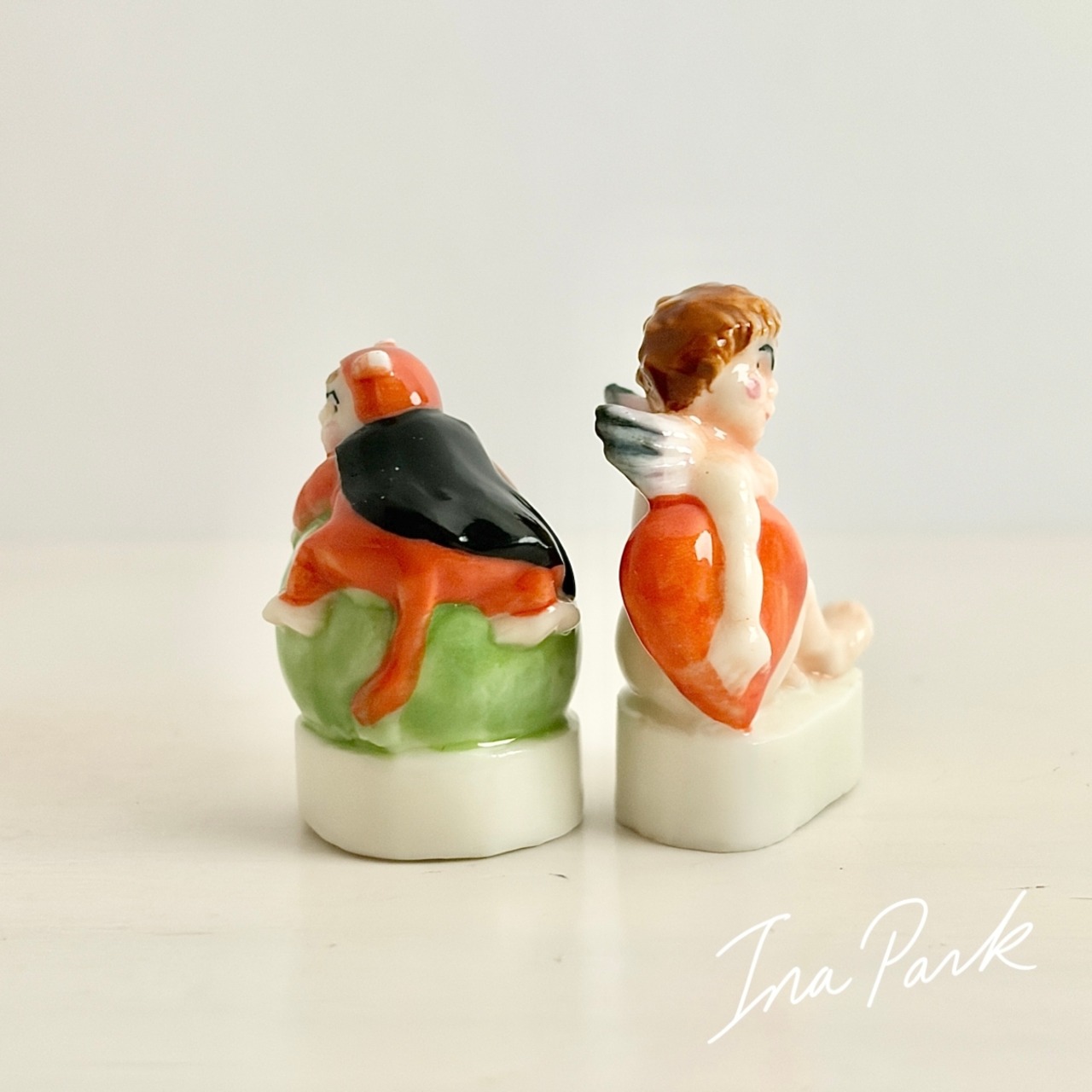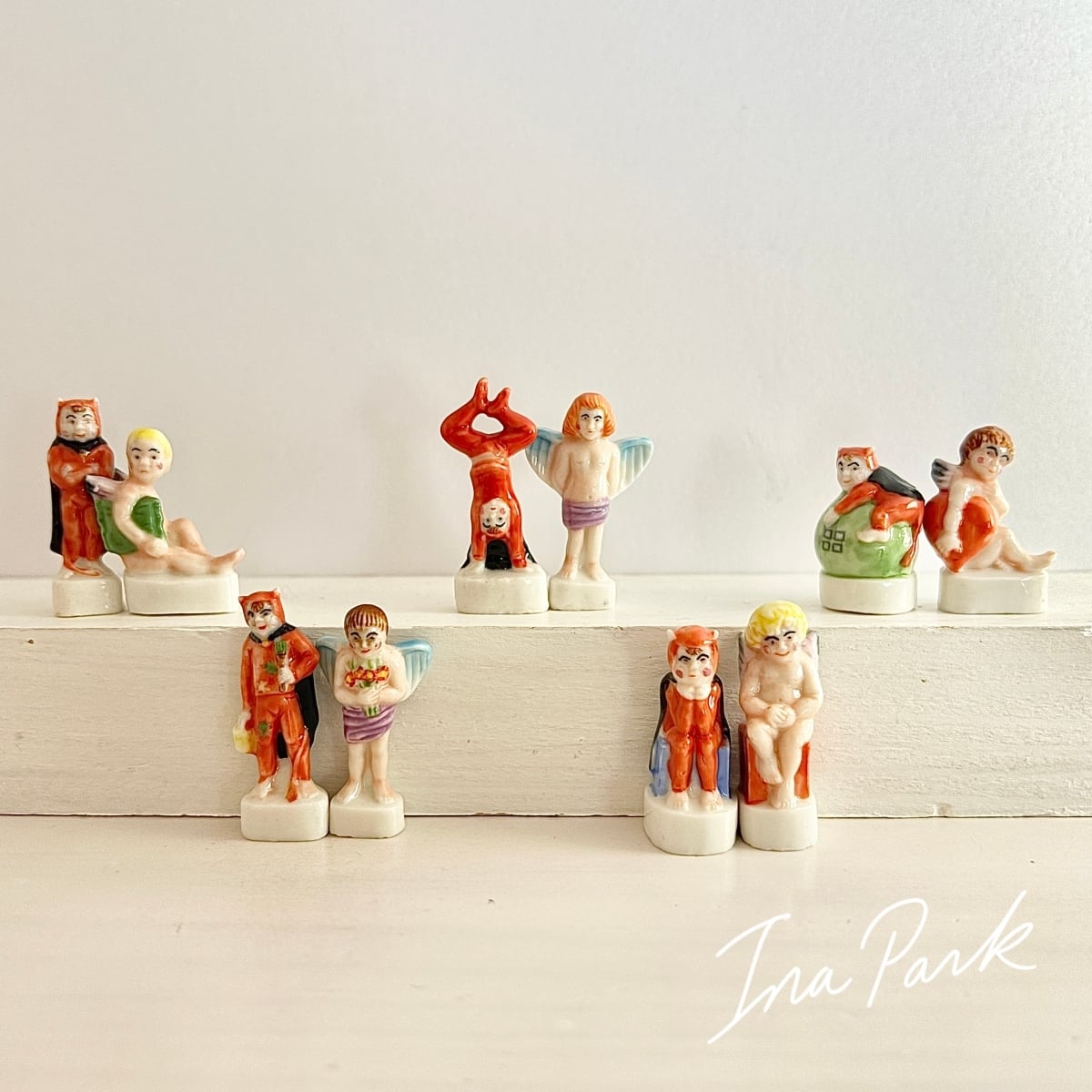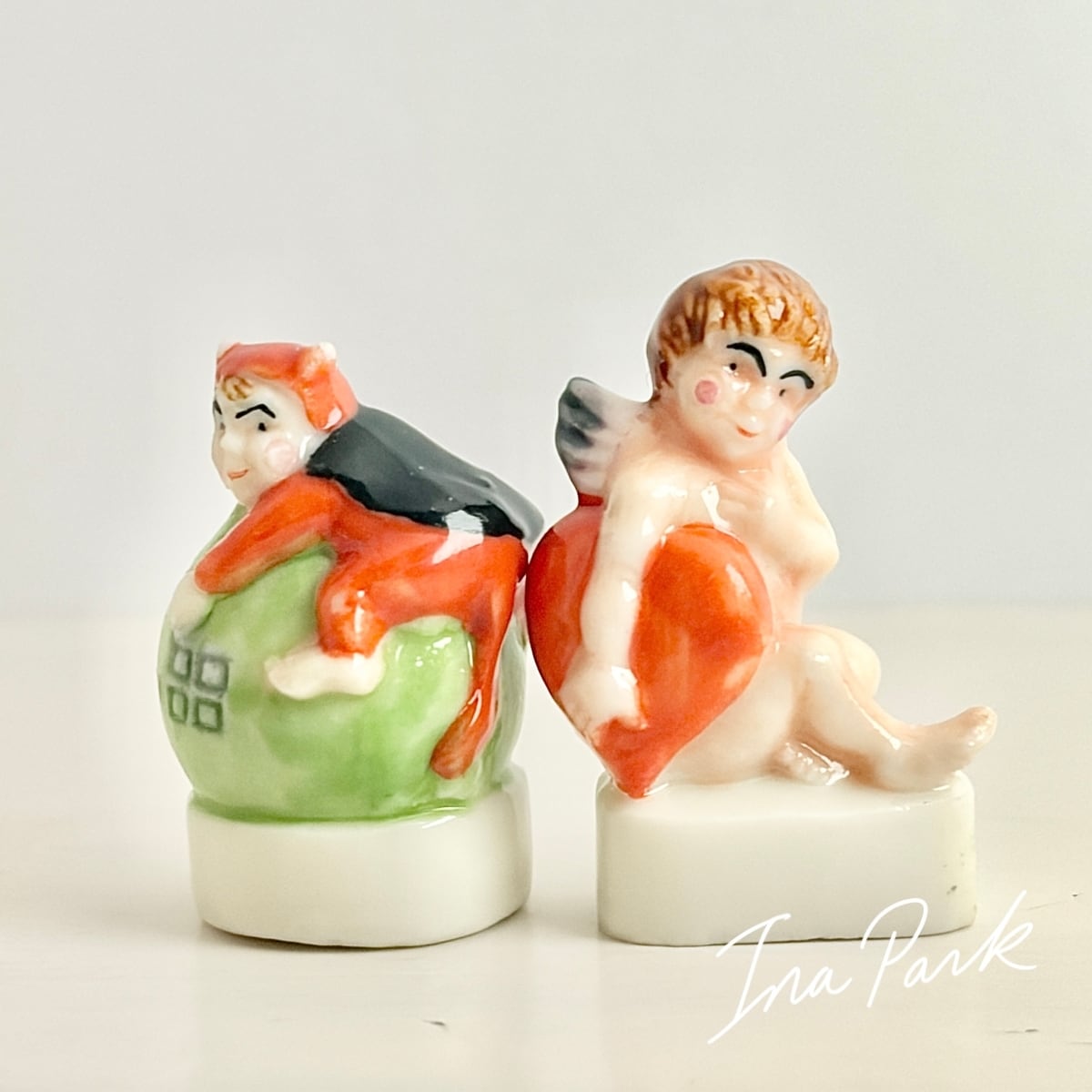 1997 天使と悪魔のフェーヴ ペア フェーブ フランス製 ミニチュア 陶器 雑貨 置物