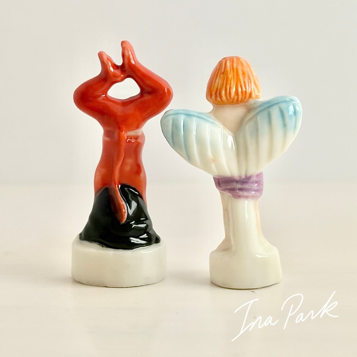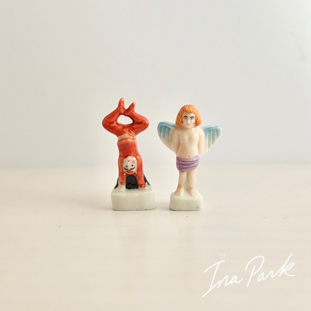 1997 天使と悪魔のフェーヴ ペア フェーブ フランス製 ミニチュア 陶器 雑貨 置物