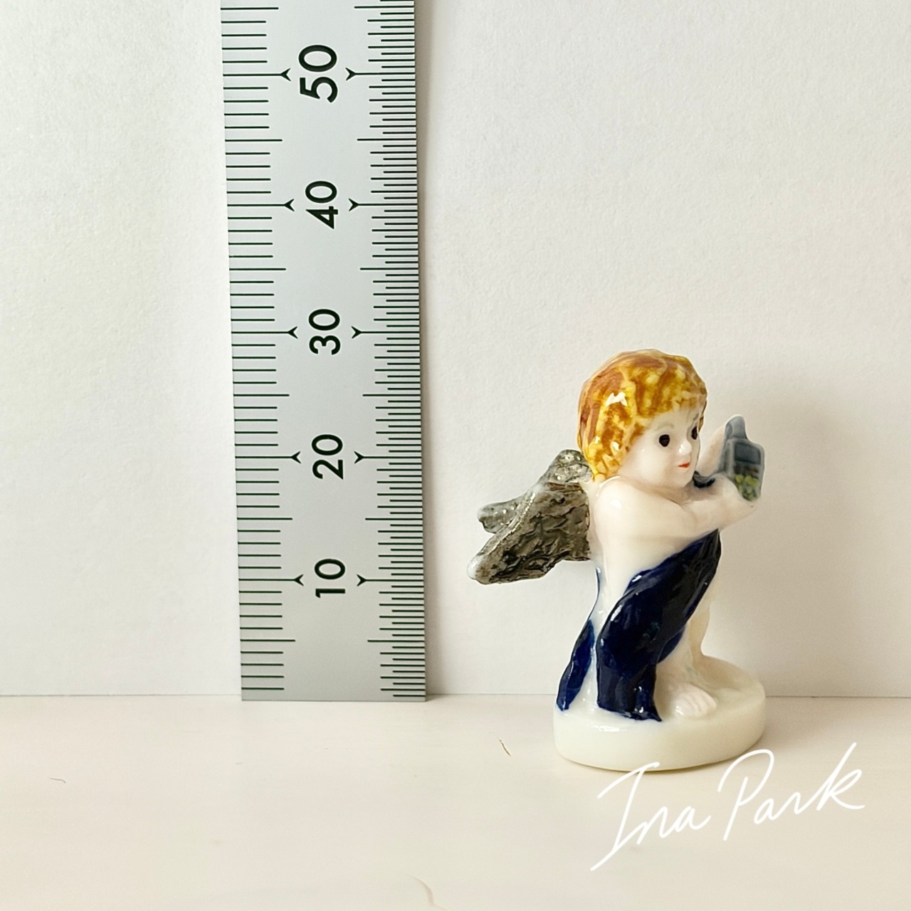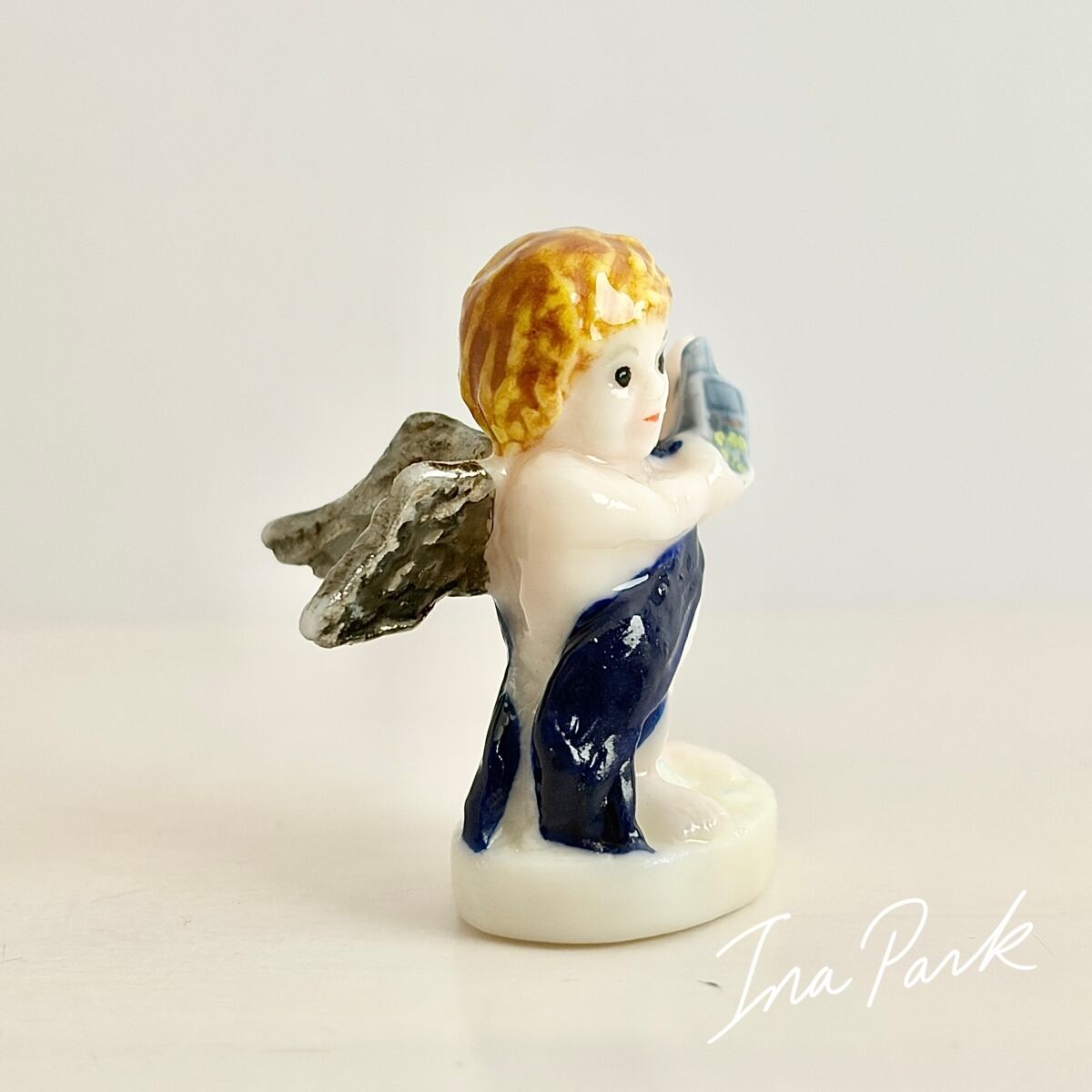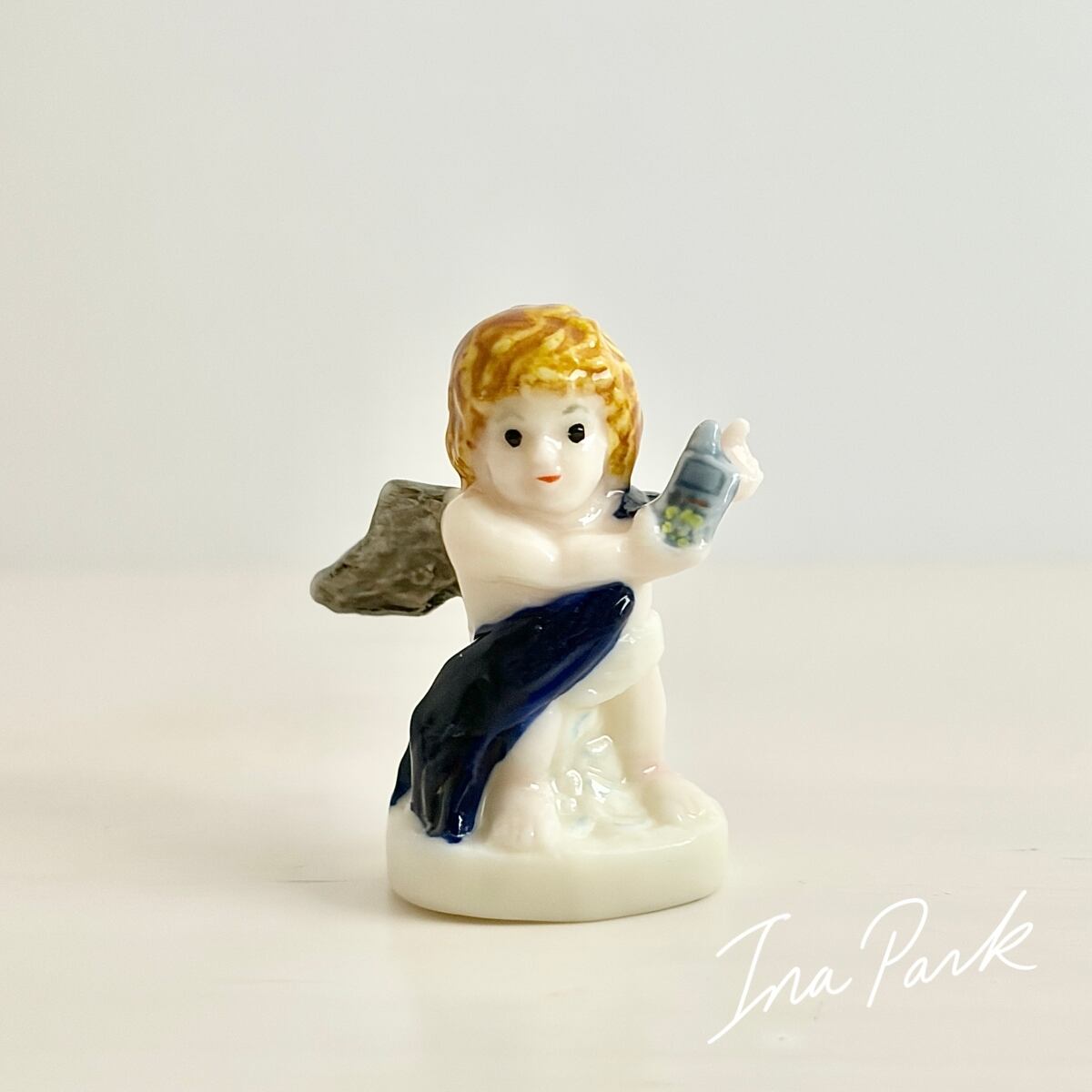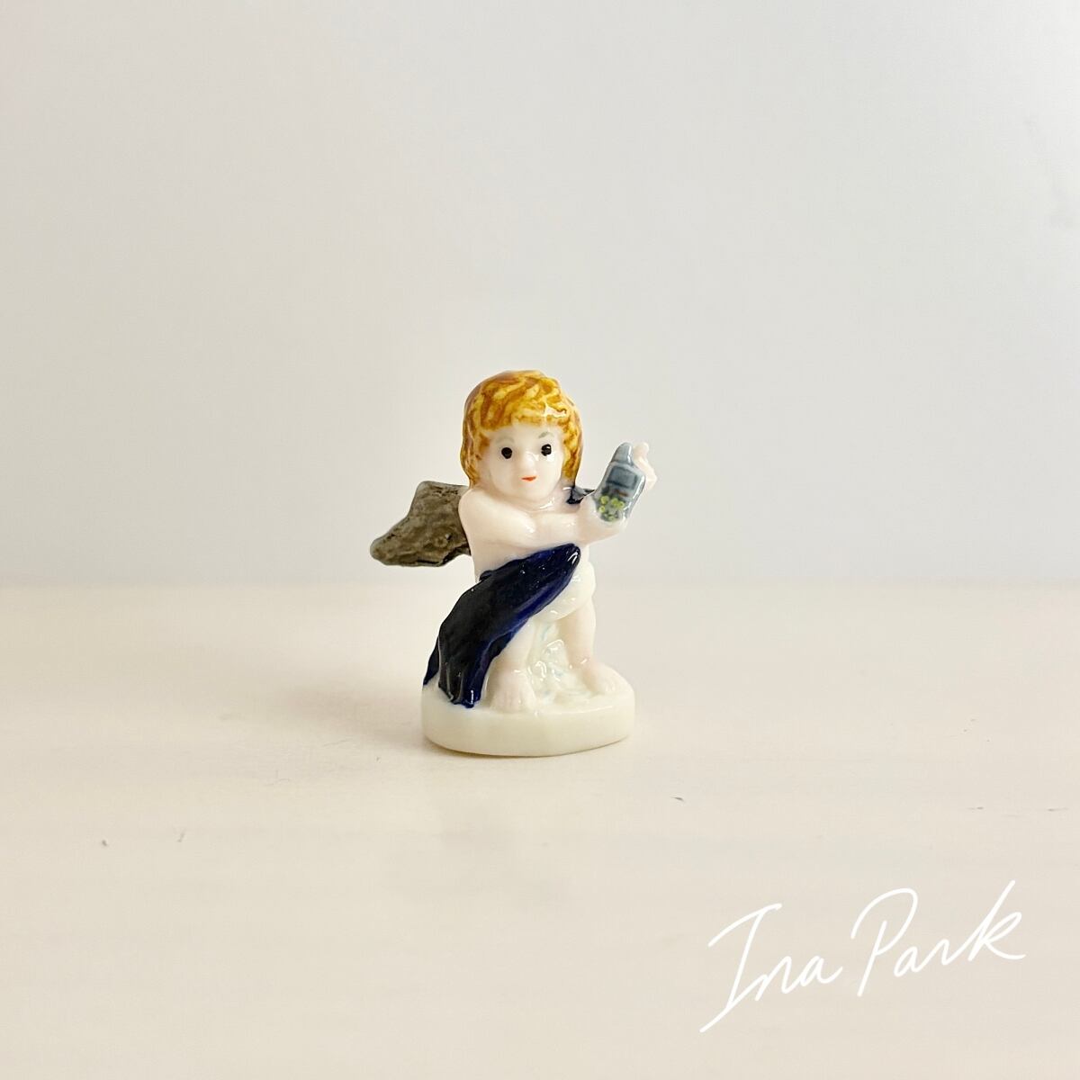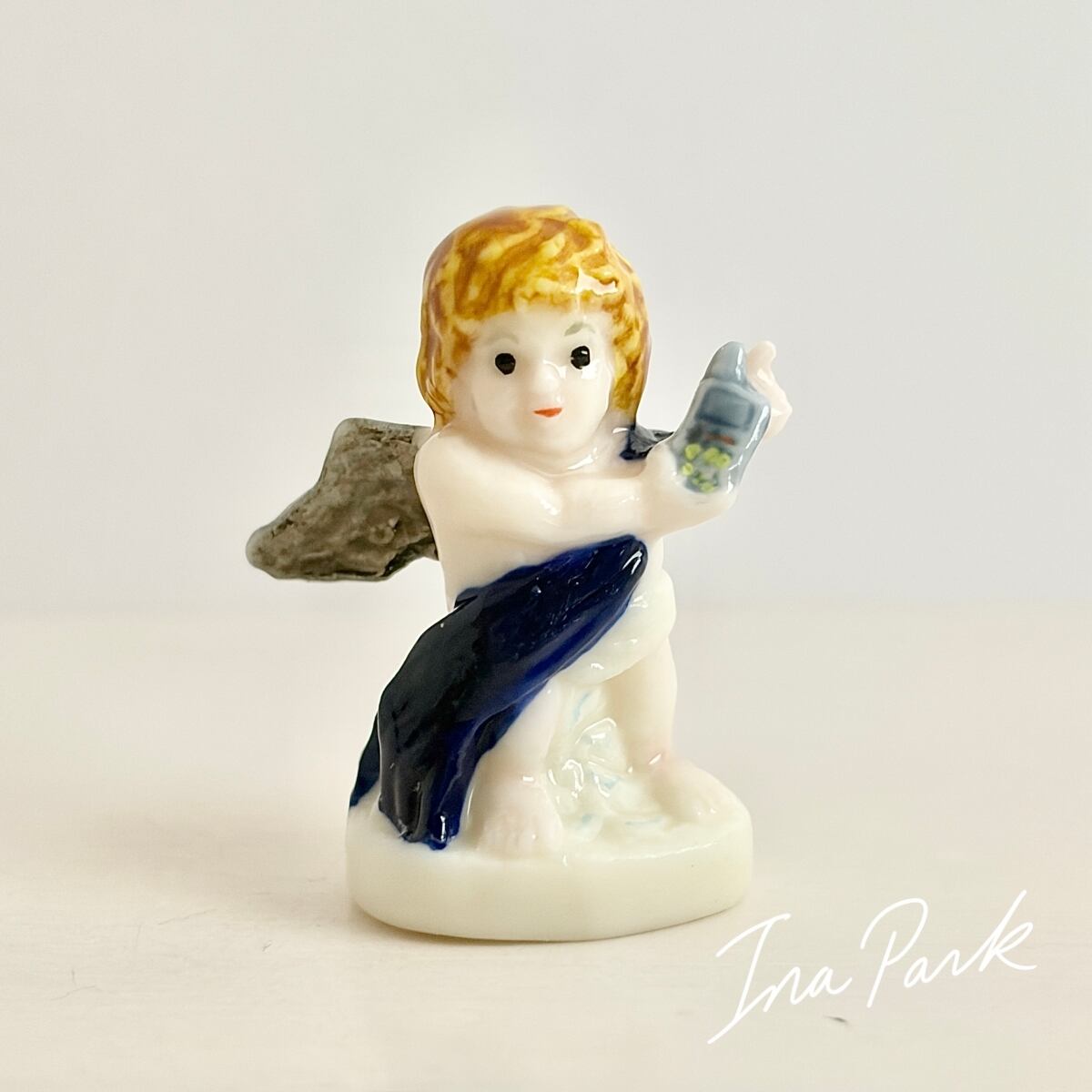 携帯電話を持つ天使のフェーヴ フェーブ フランス製 ミニチュア 陶器 雑貨 置物
