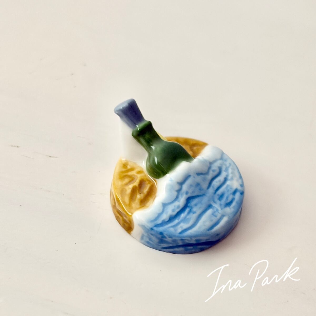 流れ着いたレターボトルのフェーヴ フェーブ フランス製 ミニチュア 陶器 雑貨 置物