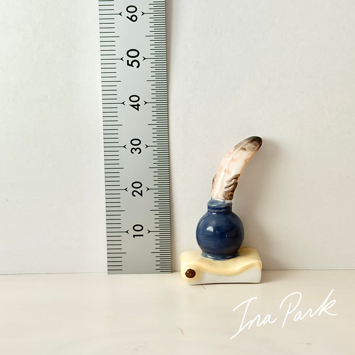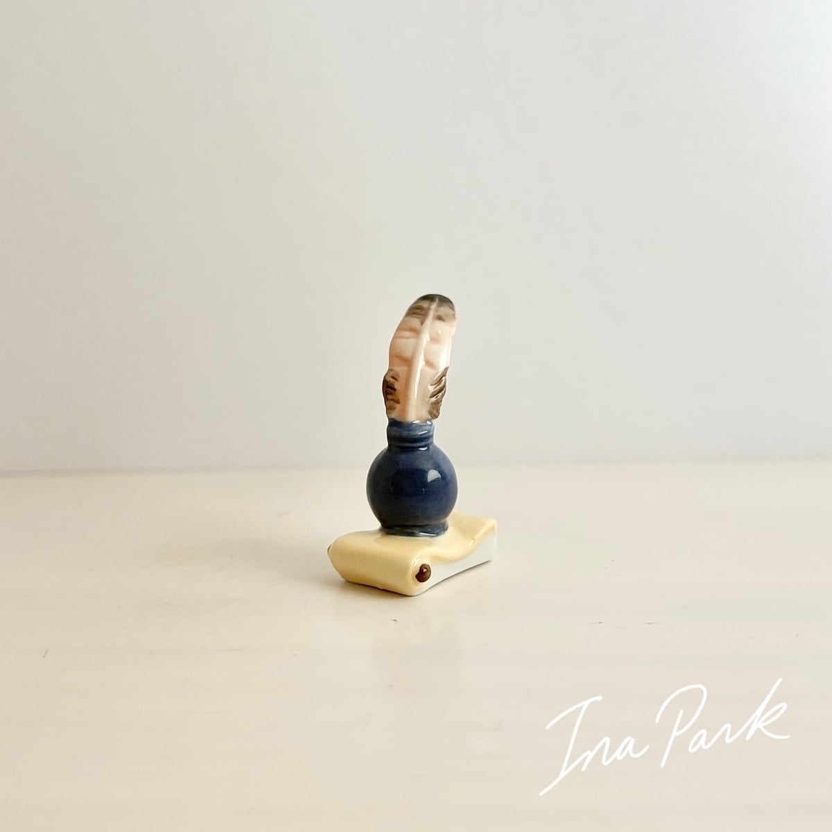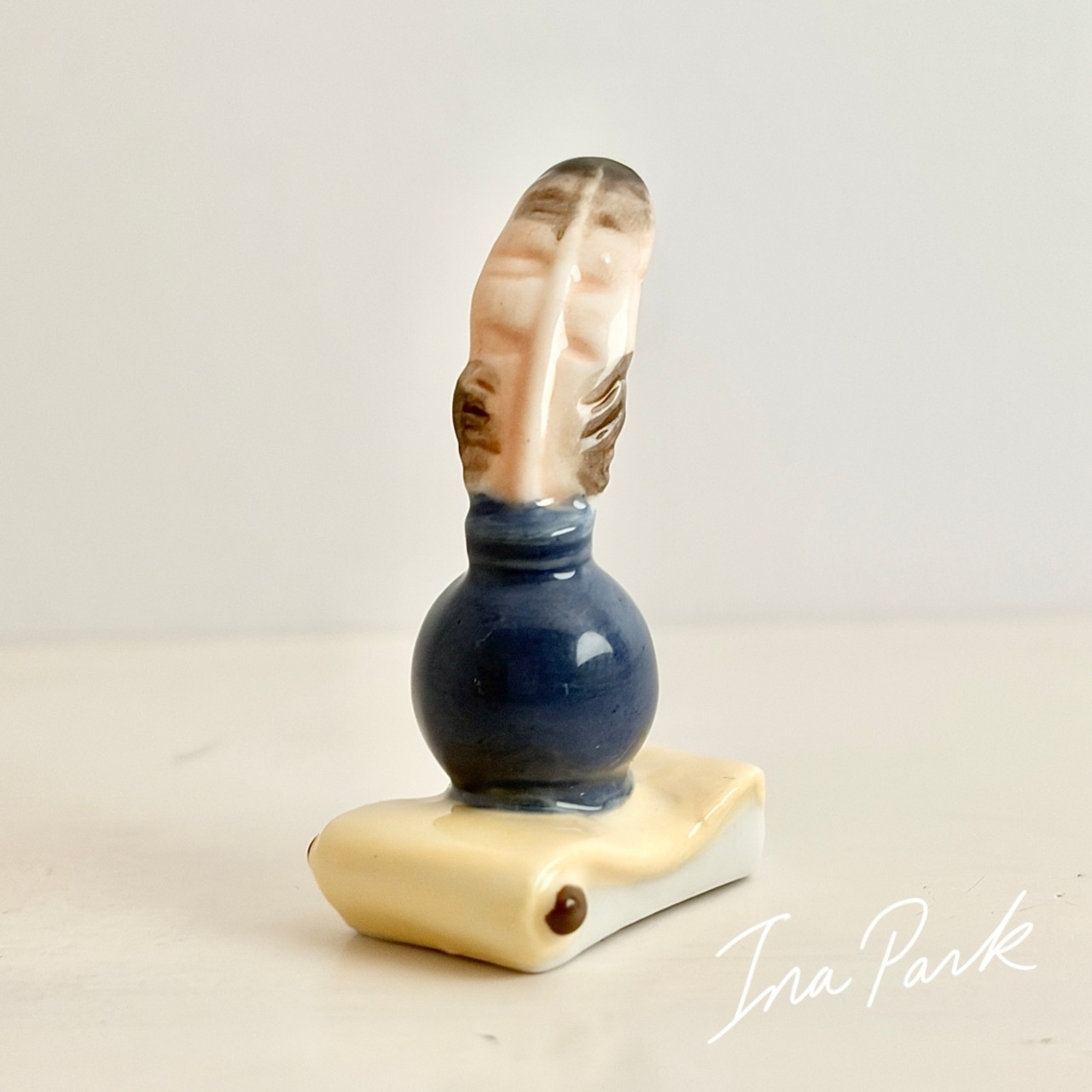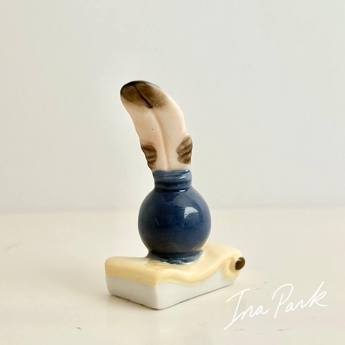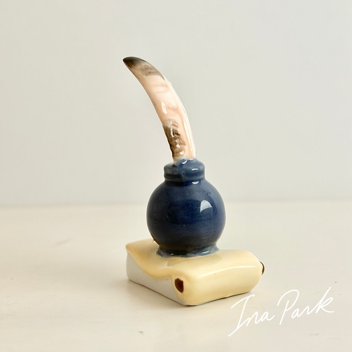 インク壺と羽ペンのフェーヴ フェーブ フランス製 ミニチュア 陶器 雑貨 置物
