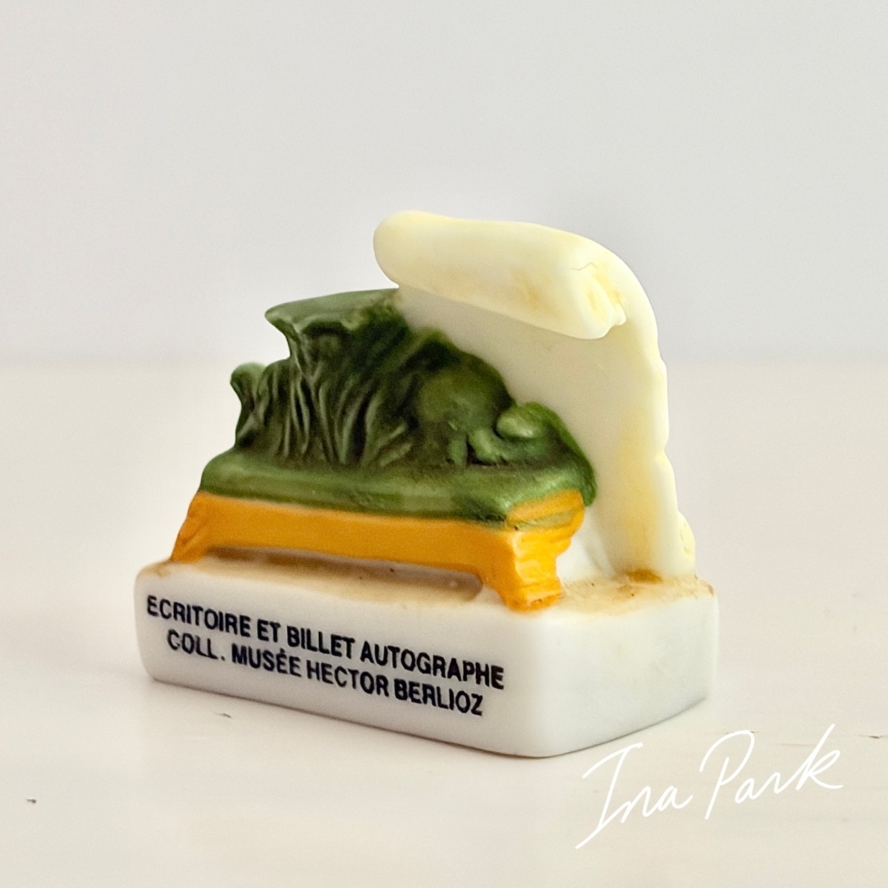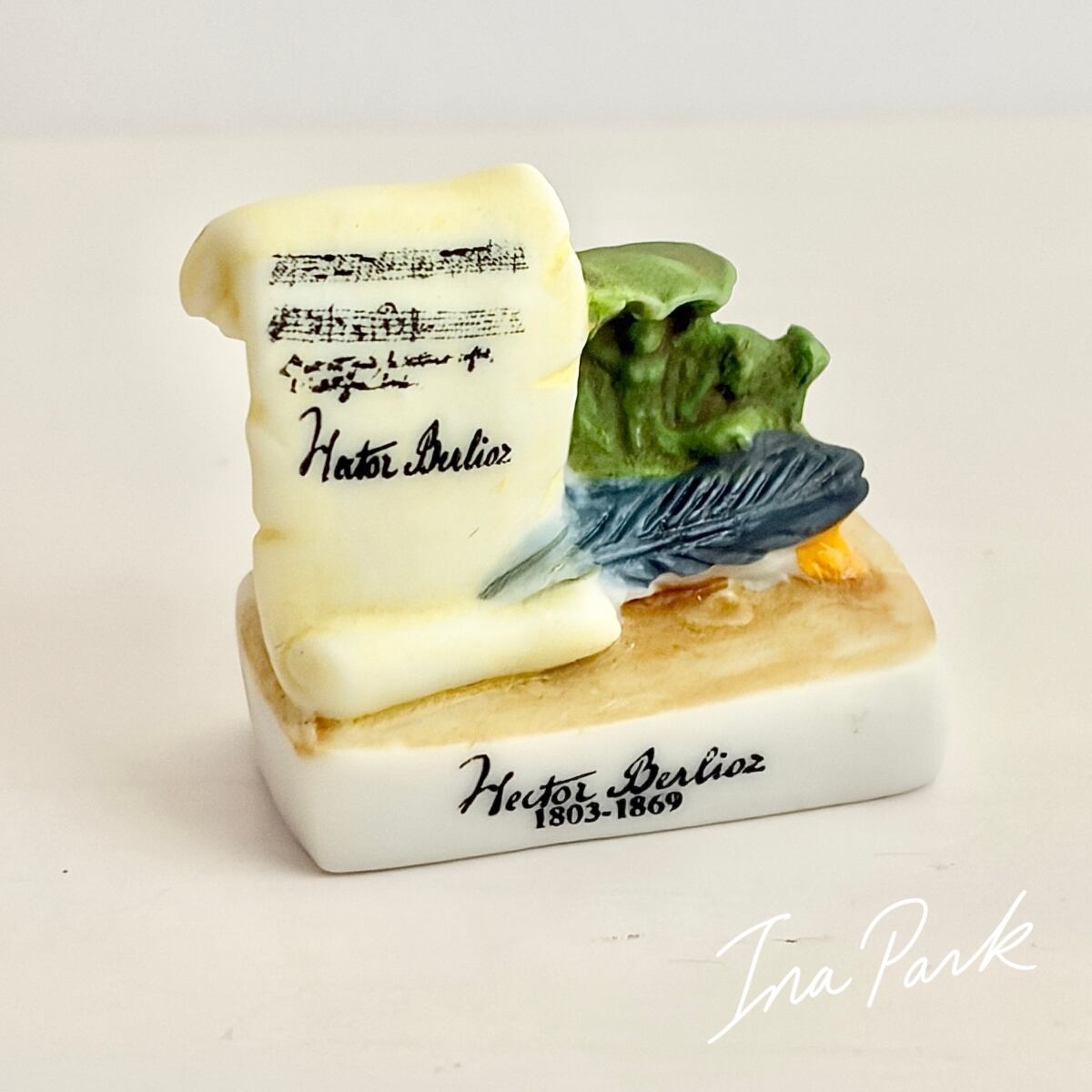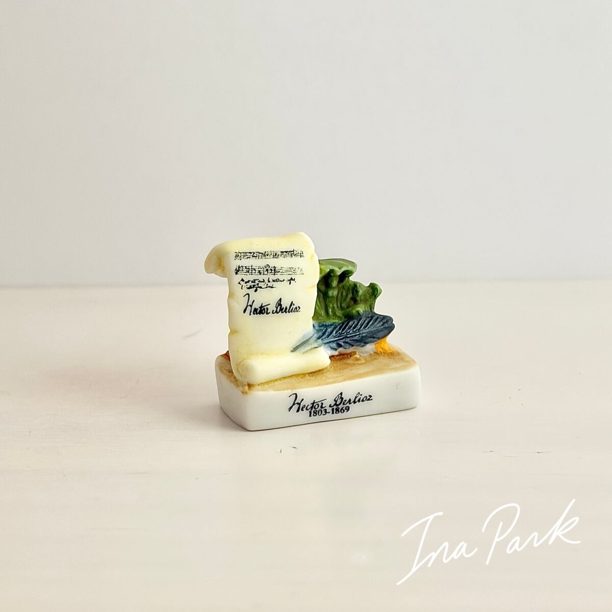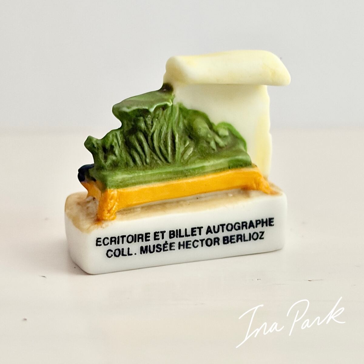 音楽家 ベルリオーズ 羽ペンと羊皮紙、楽譜 のフェーヴ フェーブ フランス製 ミニチュア 陶器 雑貨 置物