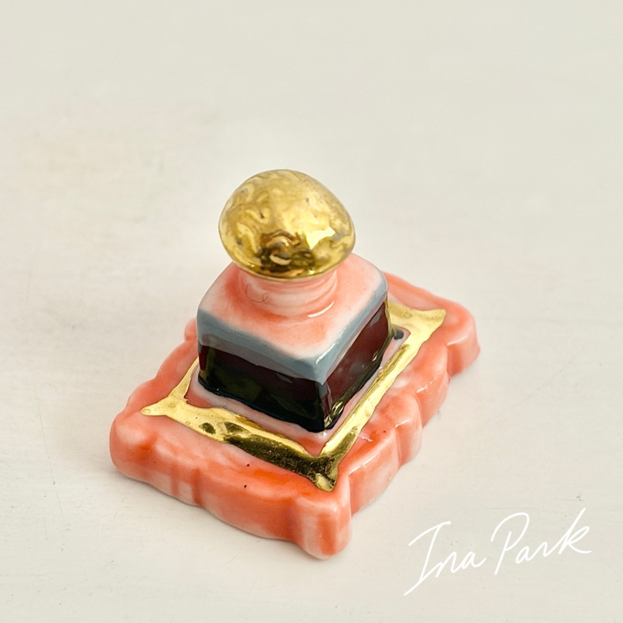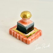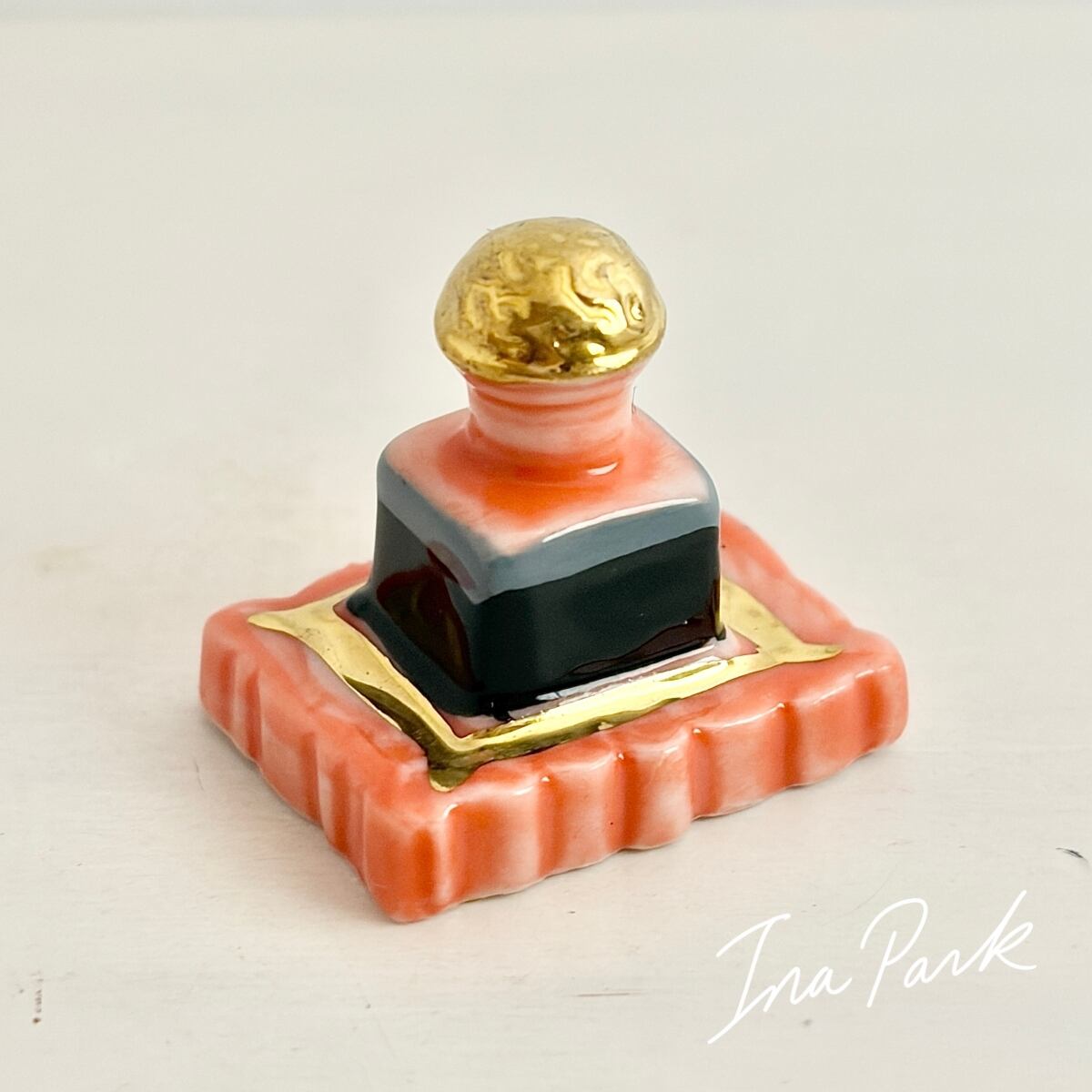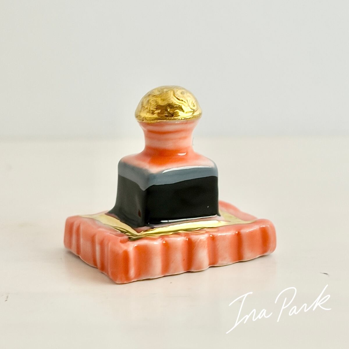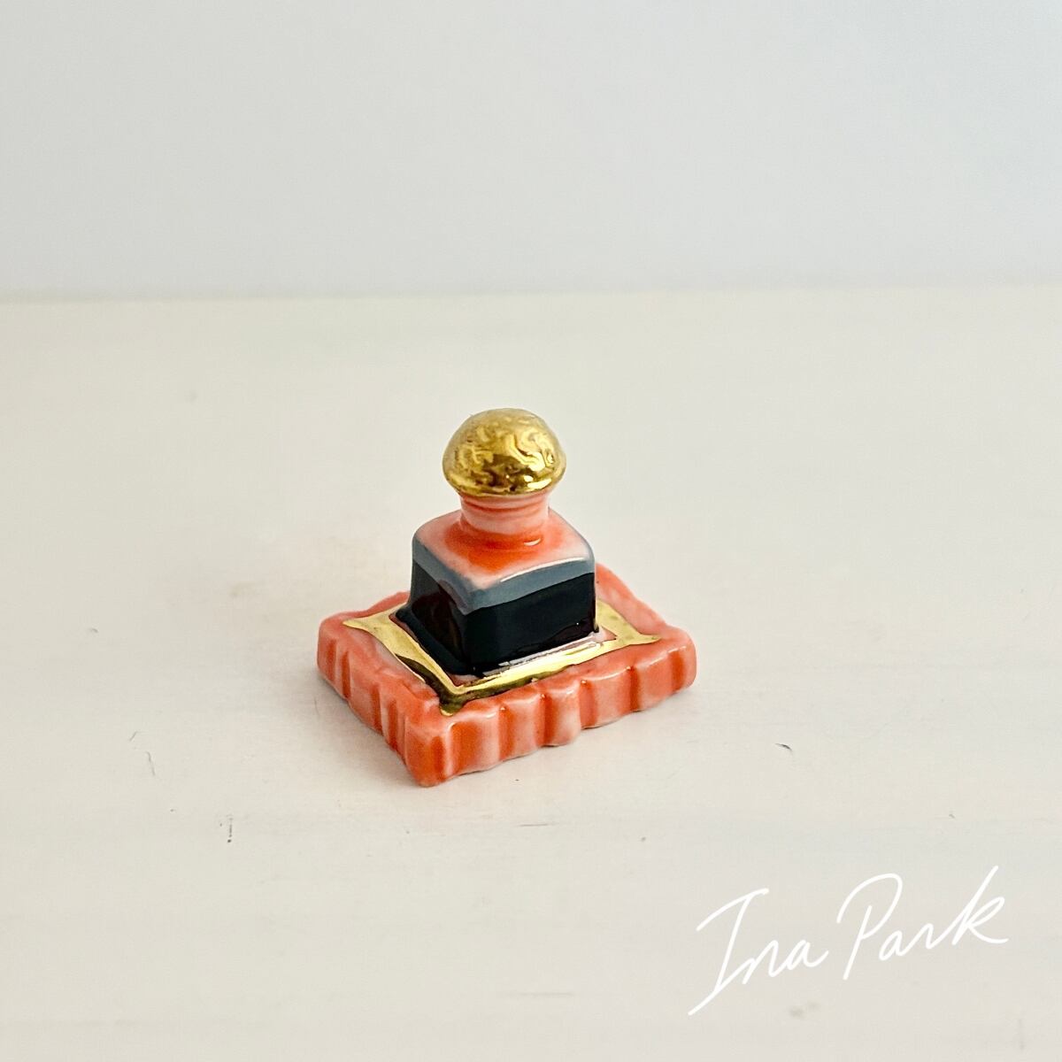珊瑚色のスタンプ台、持ち手 インク壺シリーズ フェーヴ フェーブ フランス製 ミニチュア 陶器 雑貨 置物