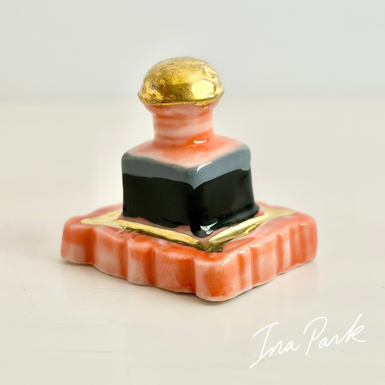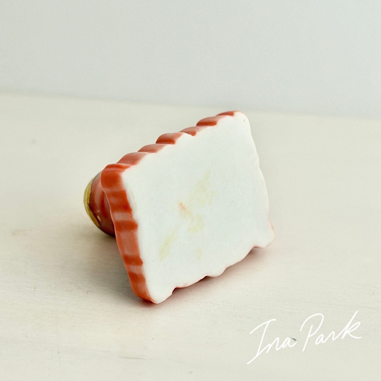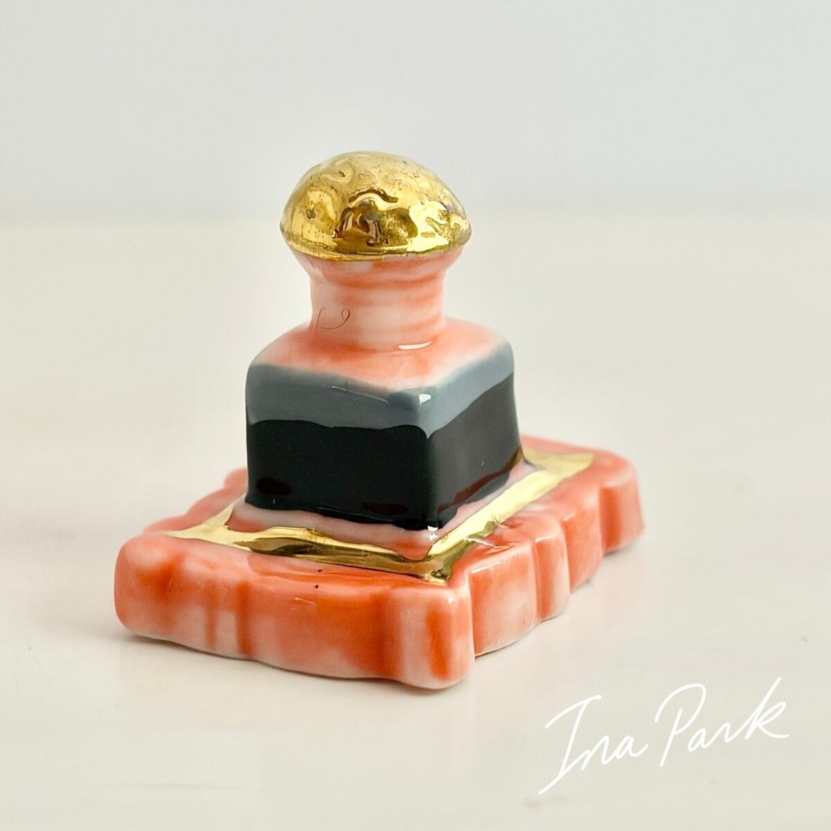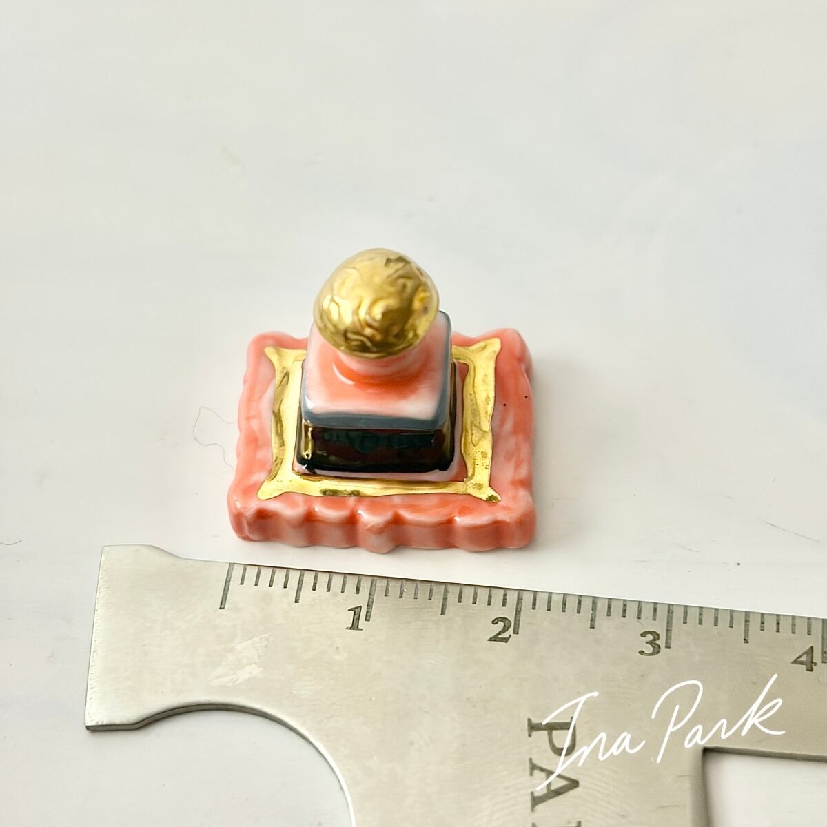 珊瑚色のスタンプ台、持ち手 インク壺シリーズ フェーヴ フェーブ フランス製 ミニチュア 陶器 雑貨 置物