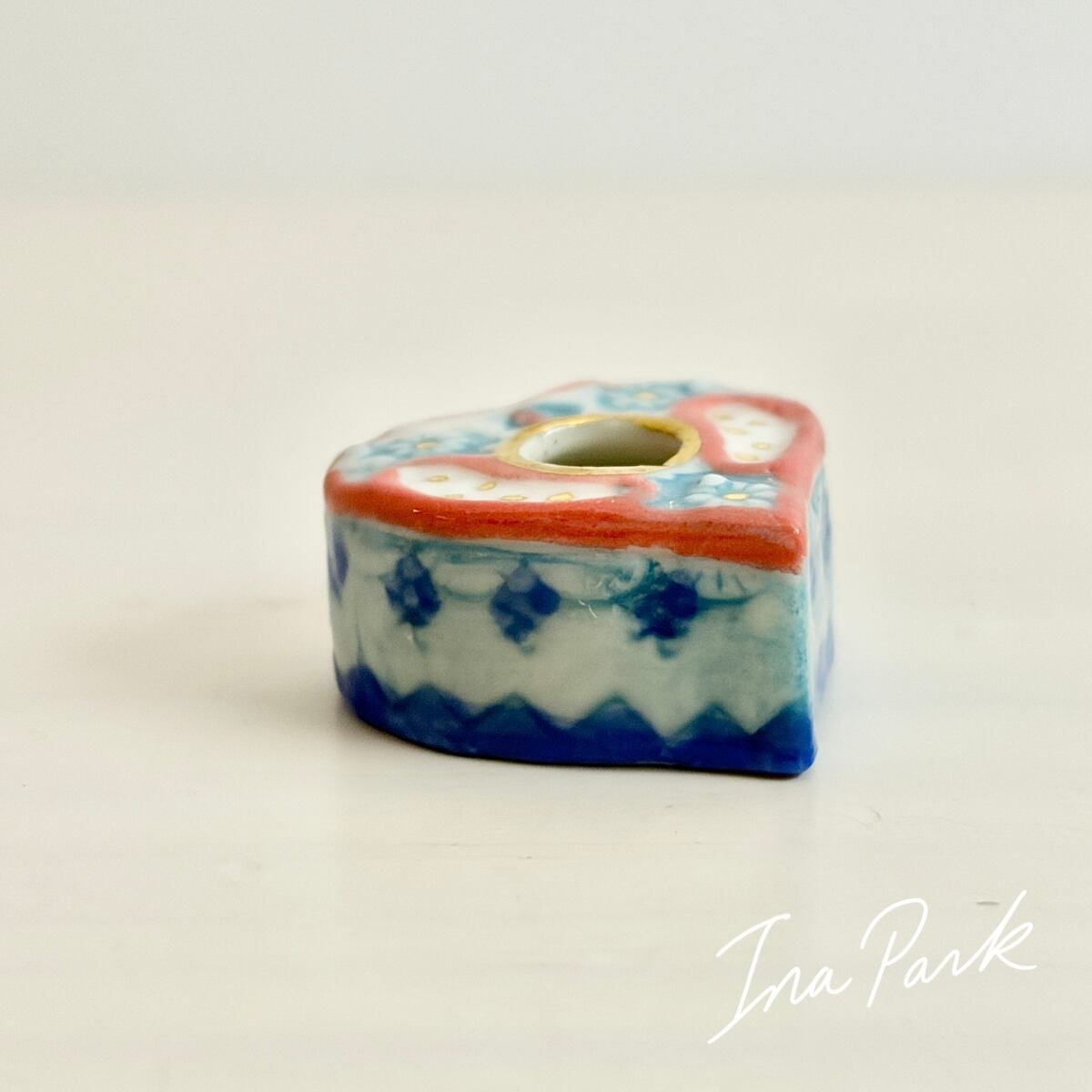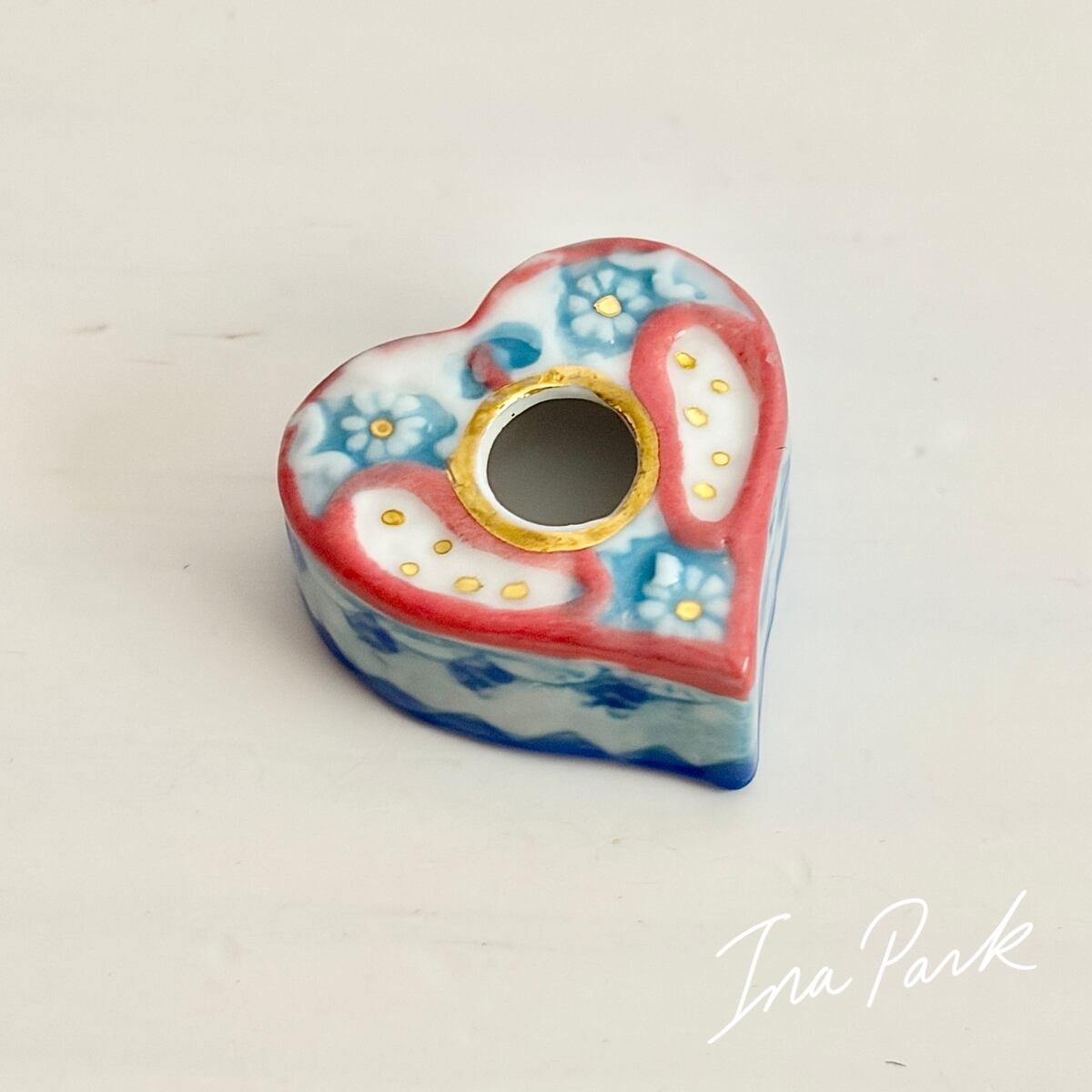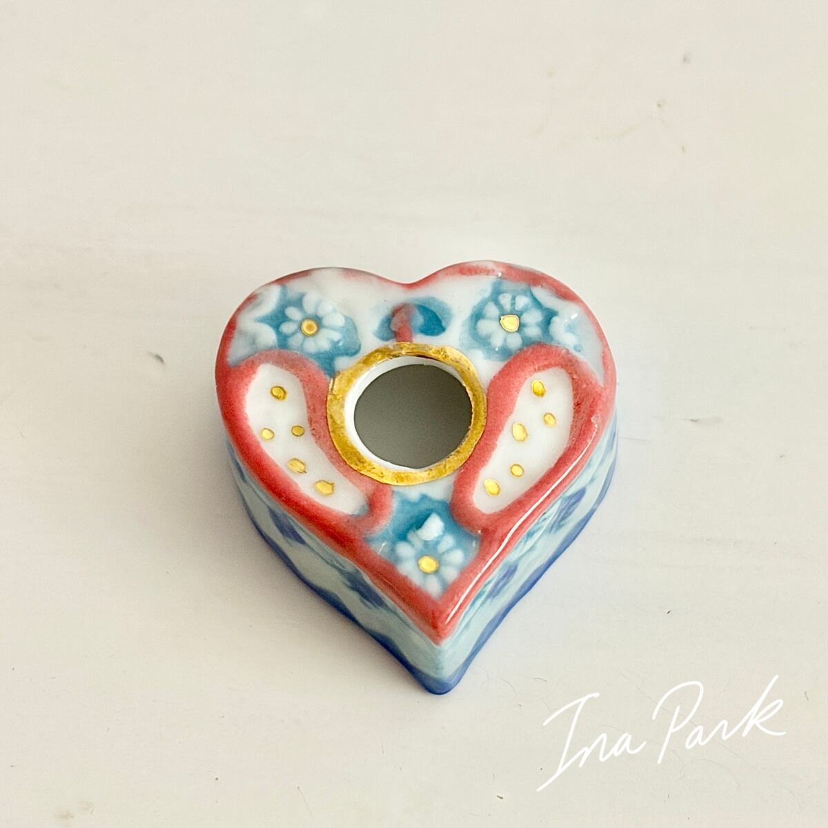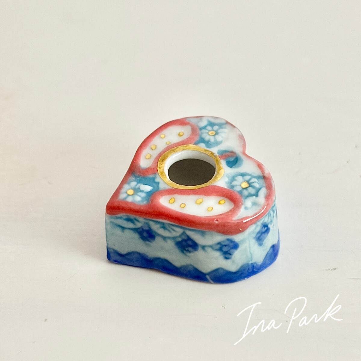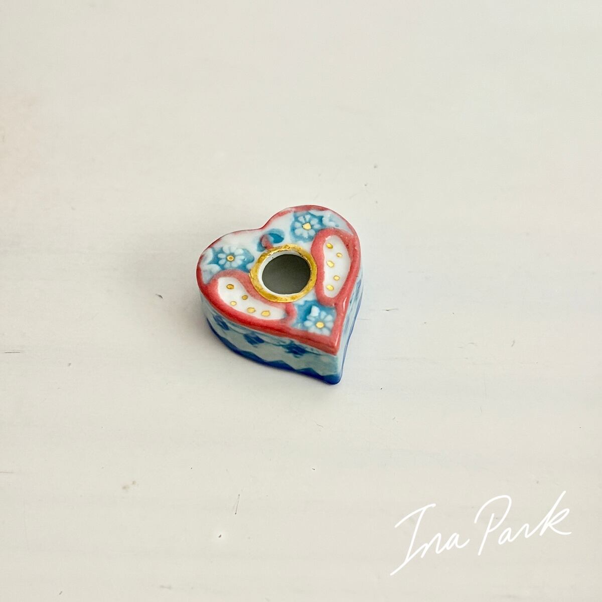 ハート型 装飾インク壺のフェーヴ フェーブ フランス製 ミニチュア 陶器 雑貨 置物