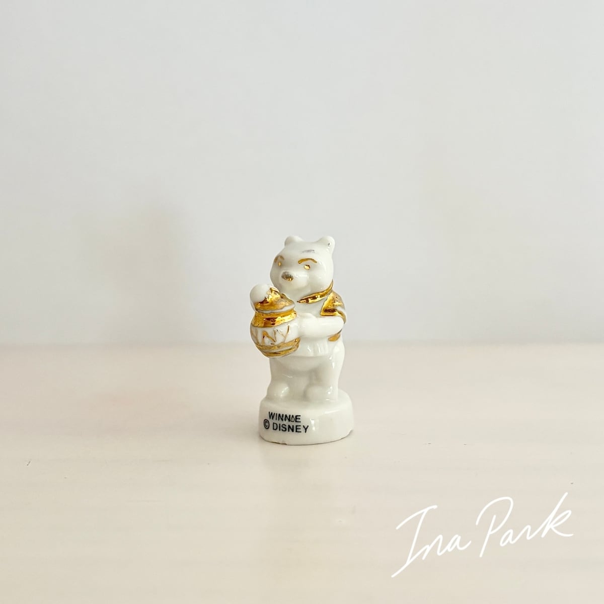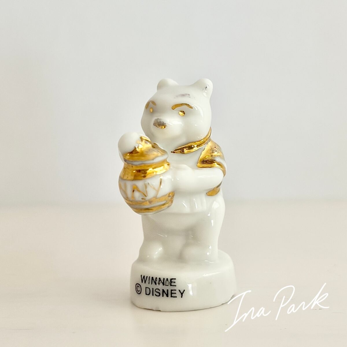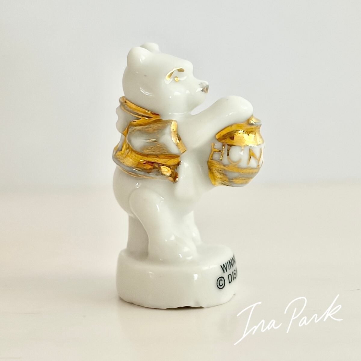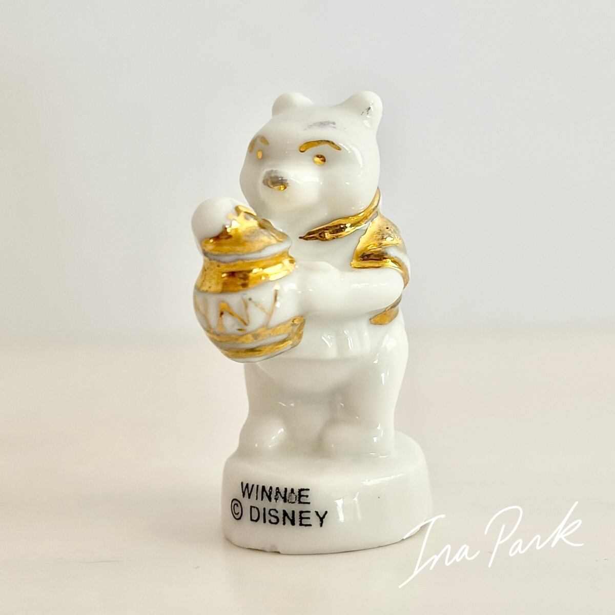 ホワイト&ゴールドのくまのプーさん テディベア フェーヴ フェーブ フランス製 ミニチュア 陶器 雑貨 置物