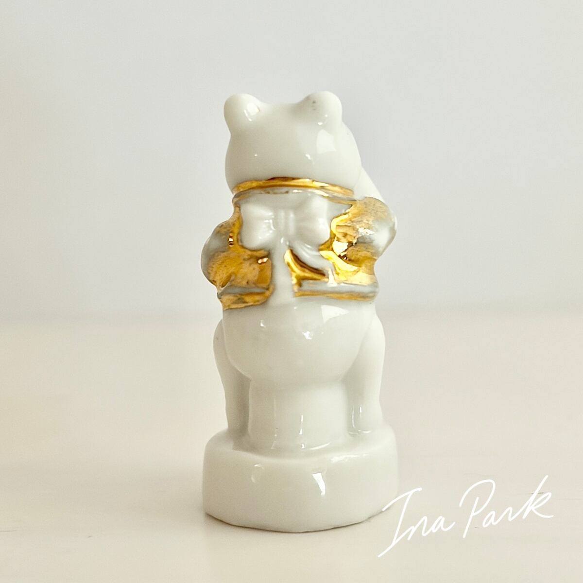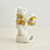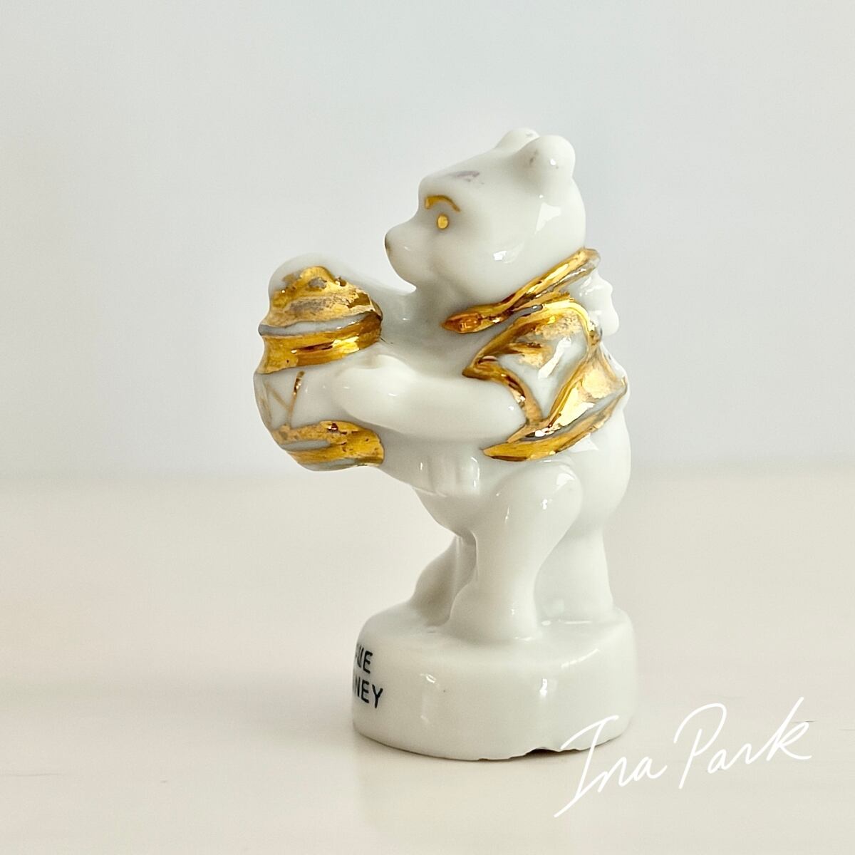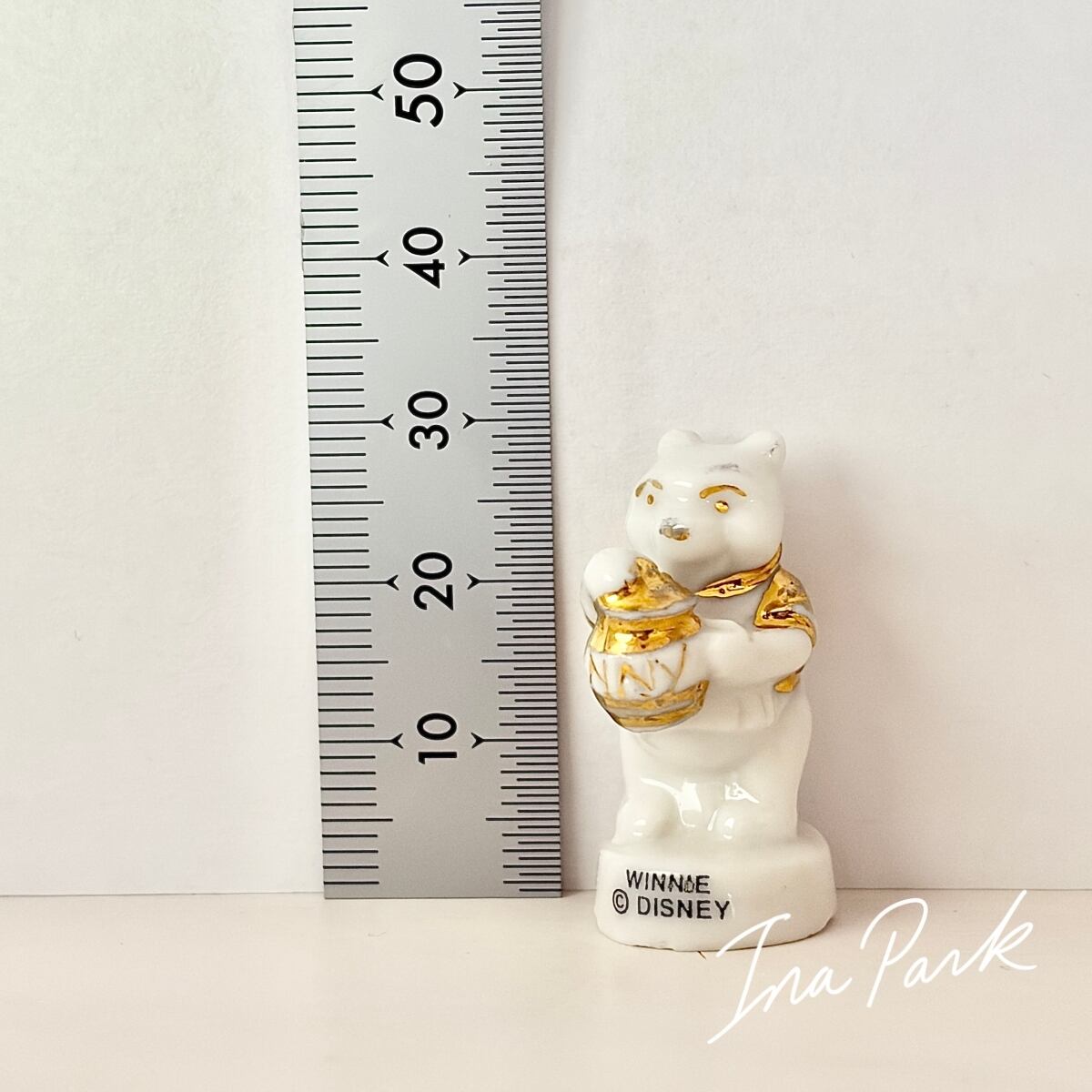 ホワイト&ゴールドのくまのプーさん テディベア フェーヴ フェーブ フランス製 ミニチュア 陶器 雑貨 置物