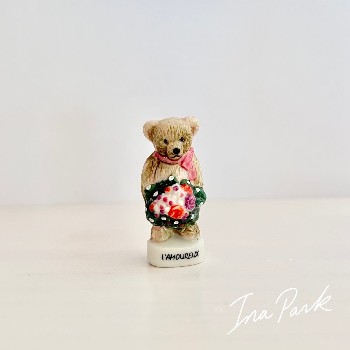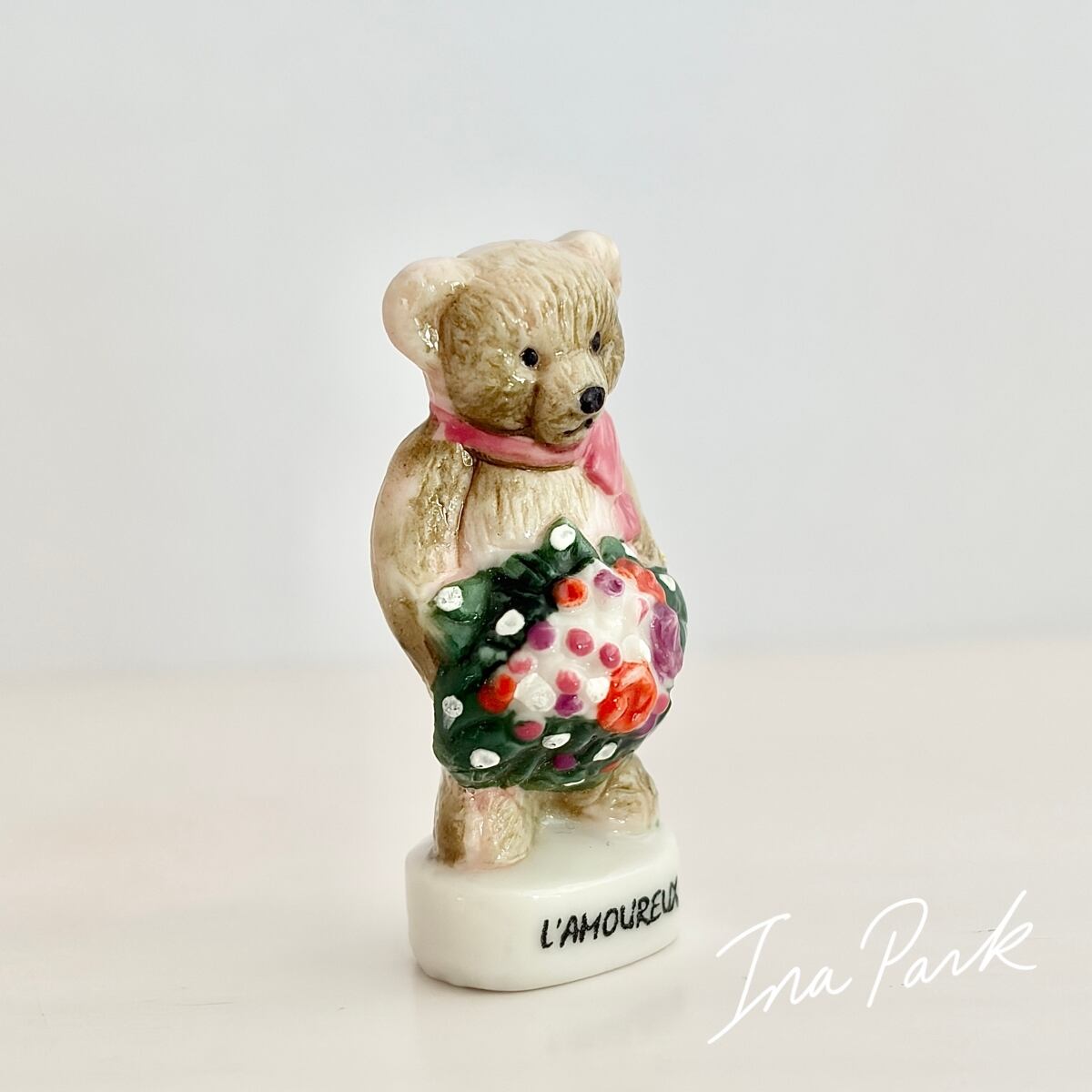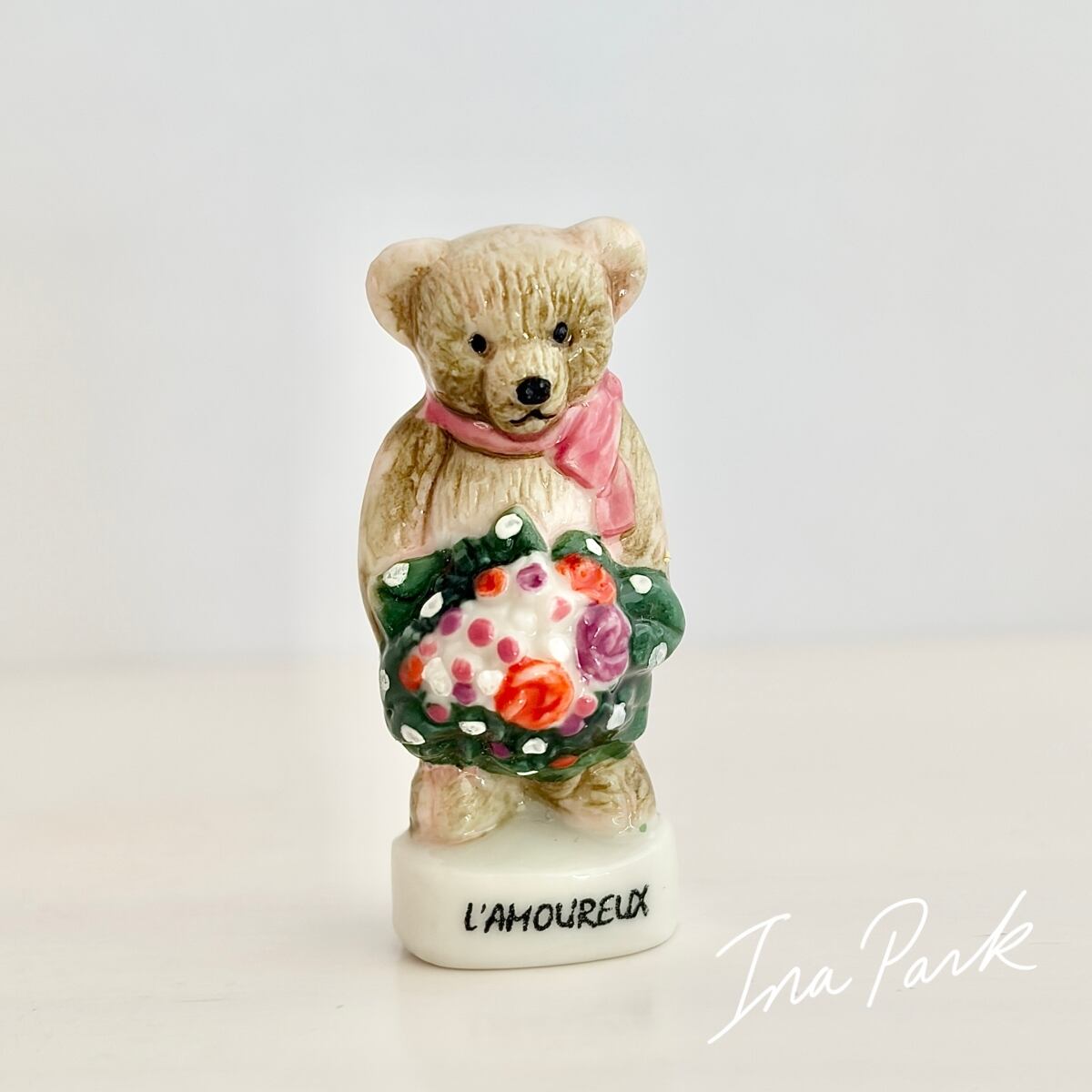 恋するくま 艶あり テディベア フェーヴ フェーブ フランス製 ミニチュア 陶器 雑貨 置物