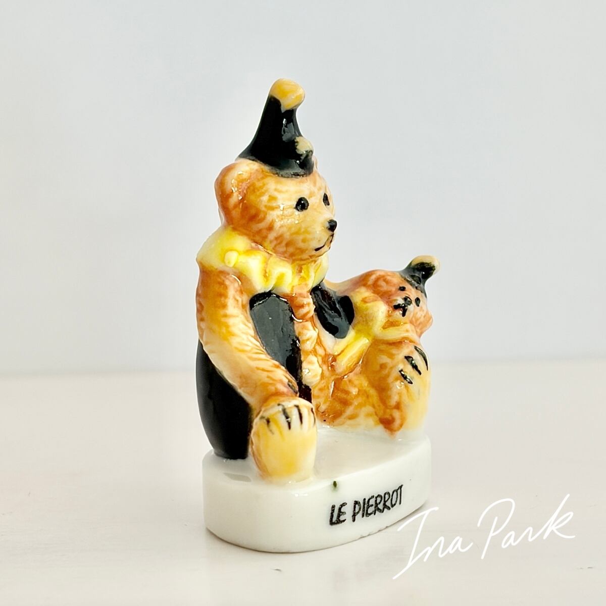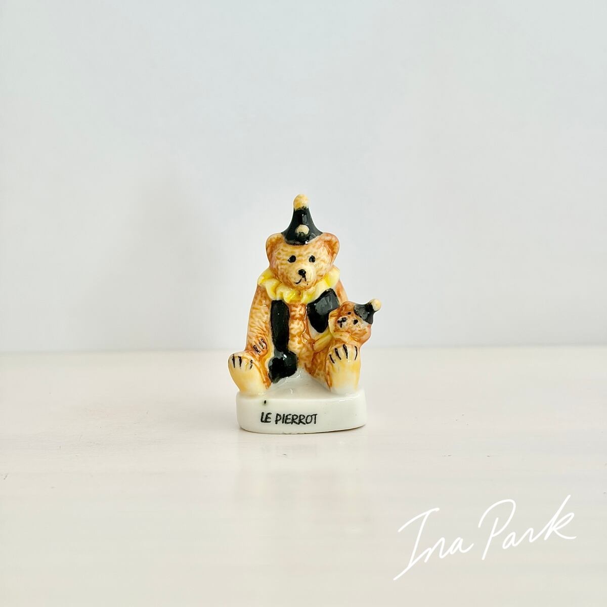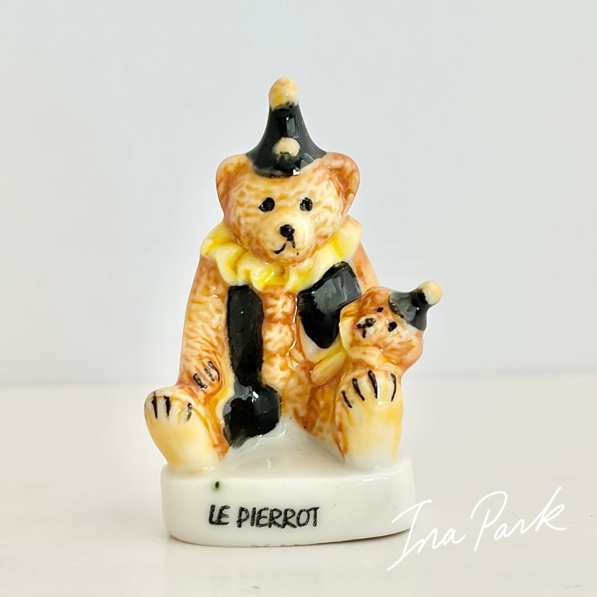 親子のピエロくま テディベア フェーヴ フェーブ フランス製 ミニチュア 陶器 雑貨 置物