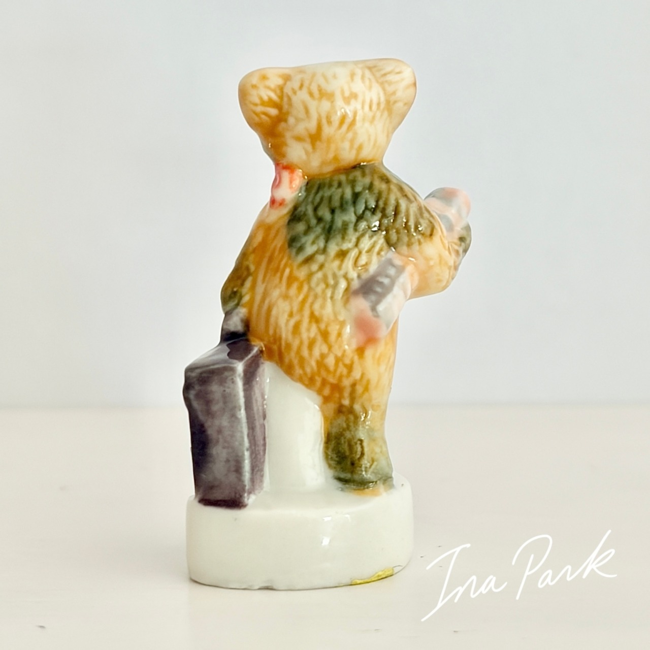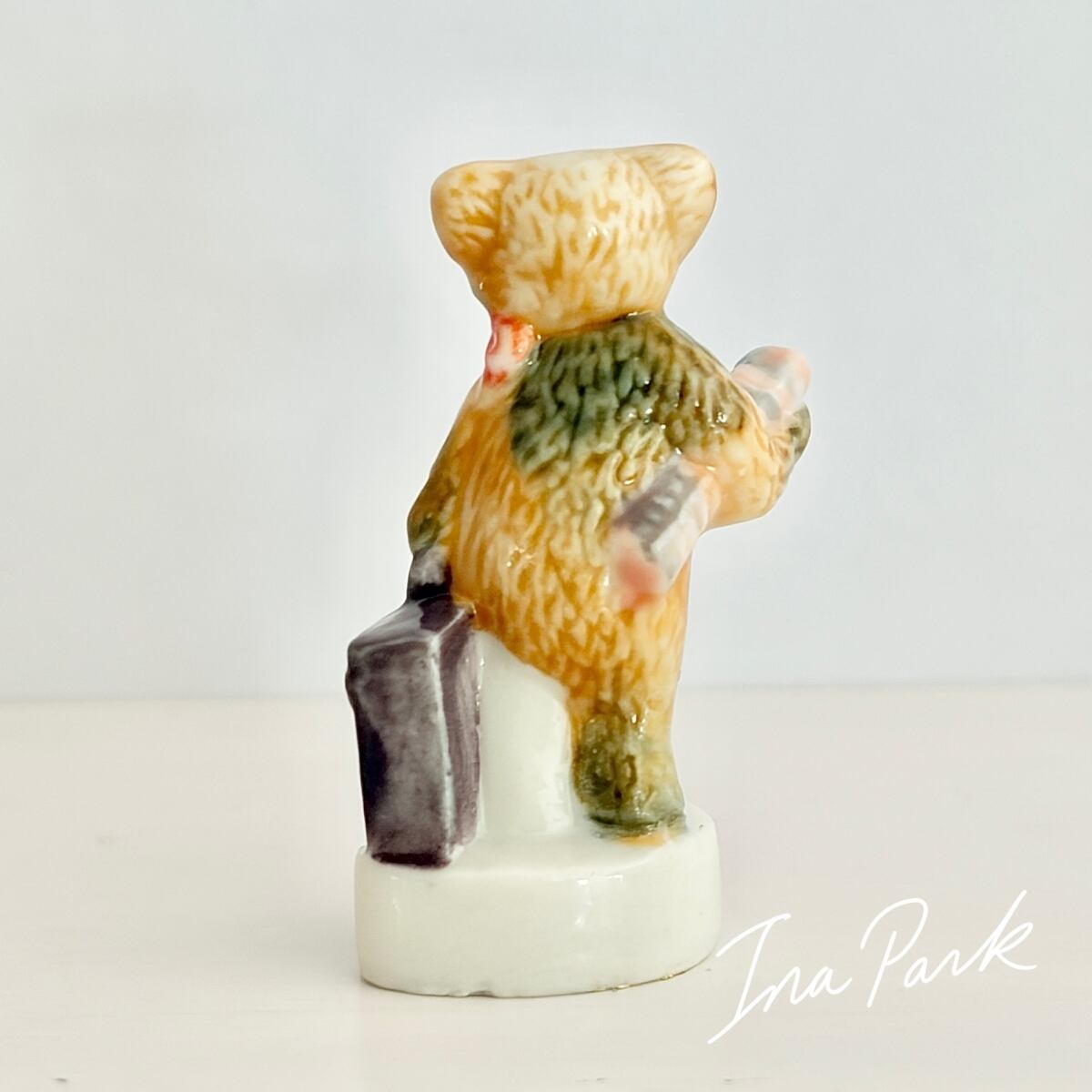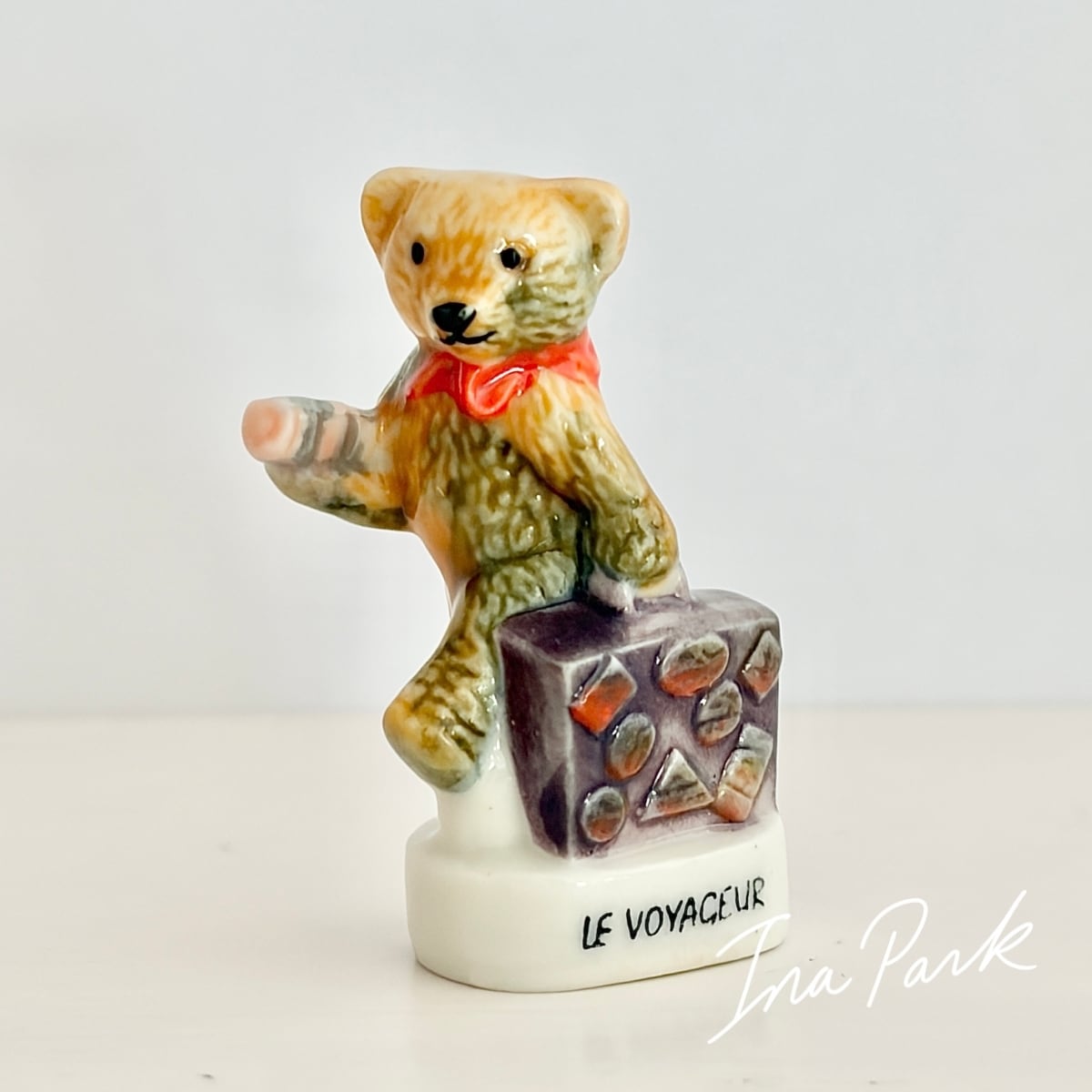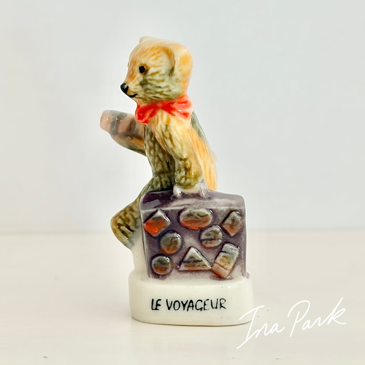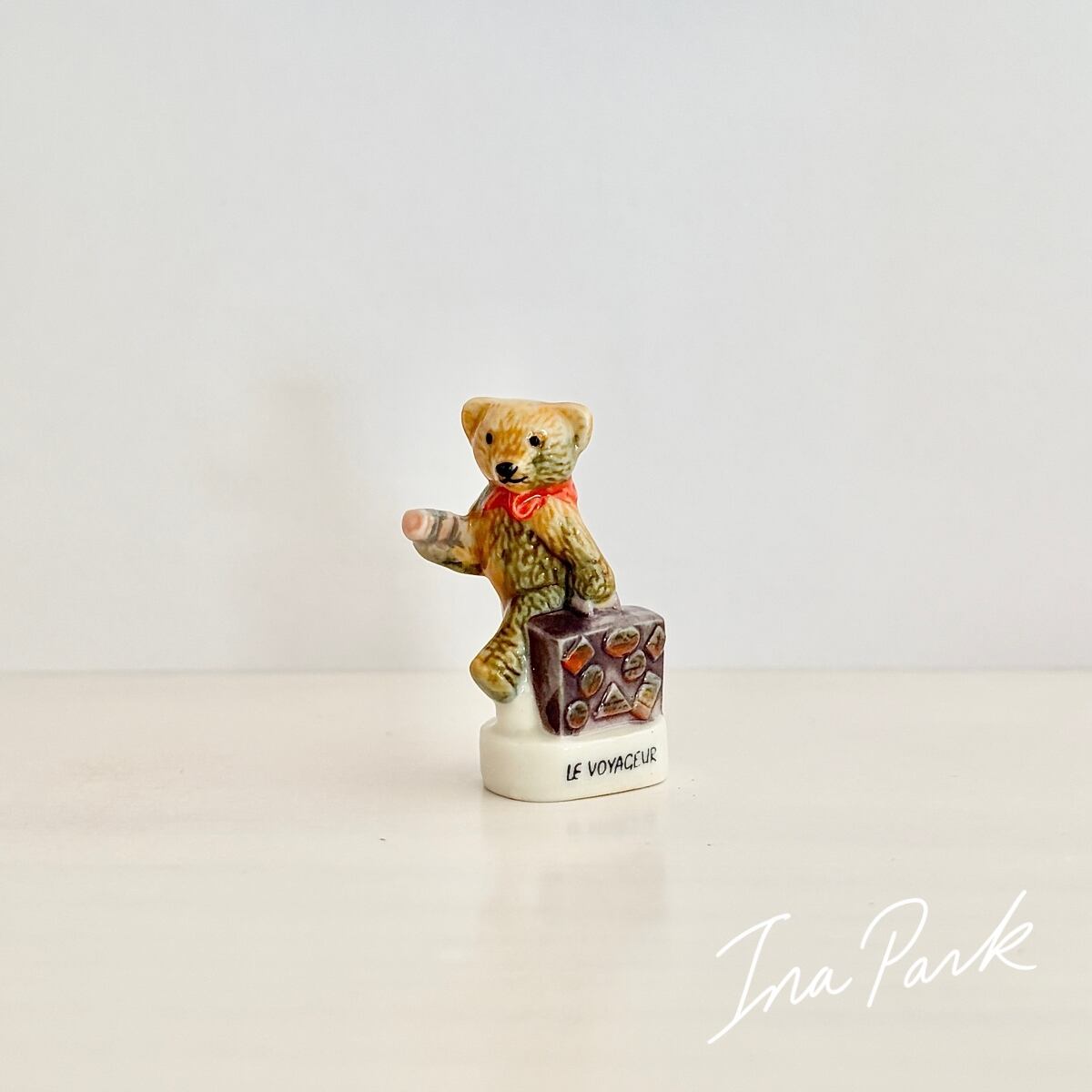 旅行カバンを持つくま テディベア フェーヴ フェーブ フランス製 ミニチュア 陶器 雑貨 置物