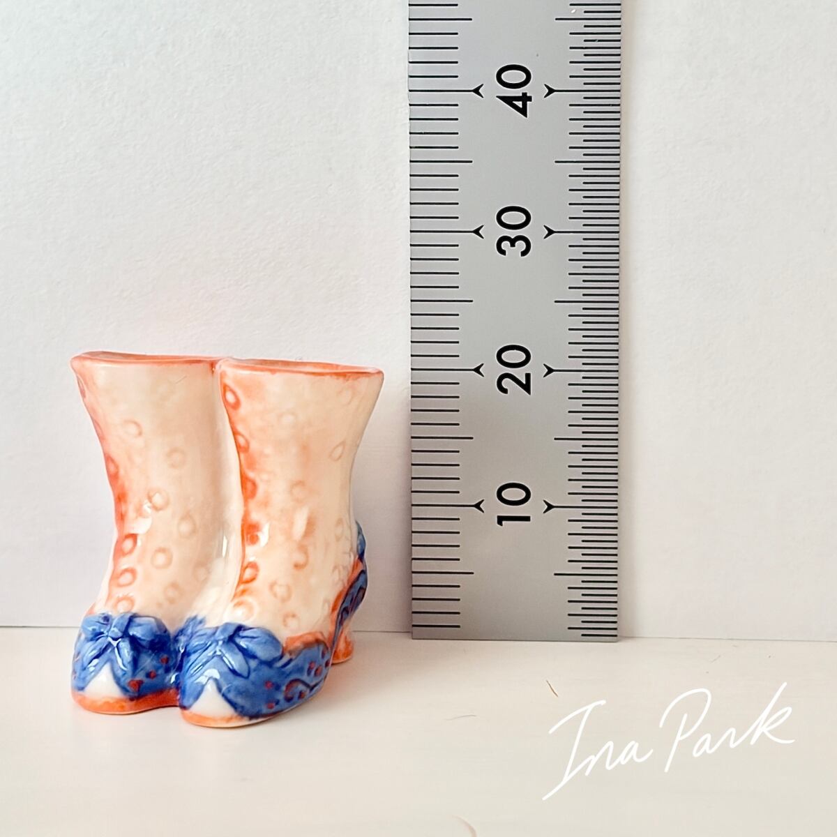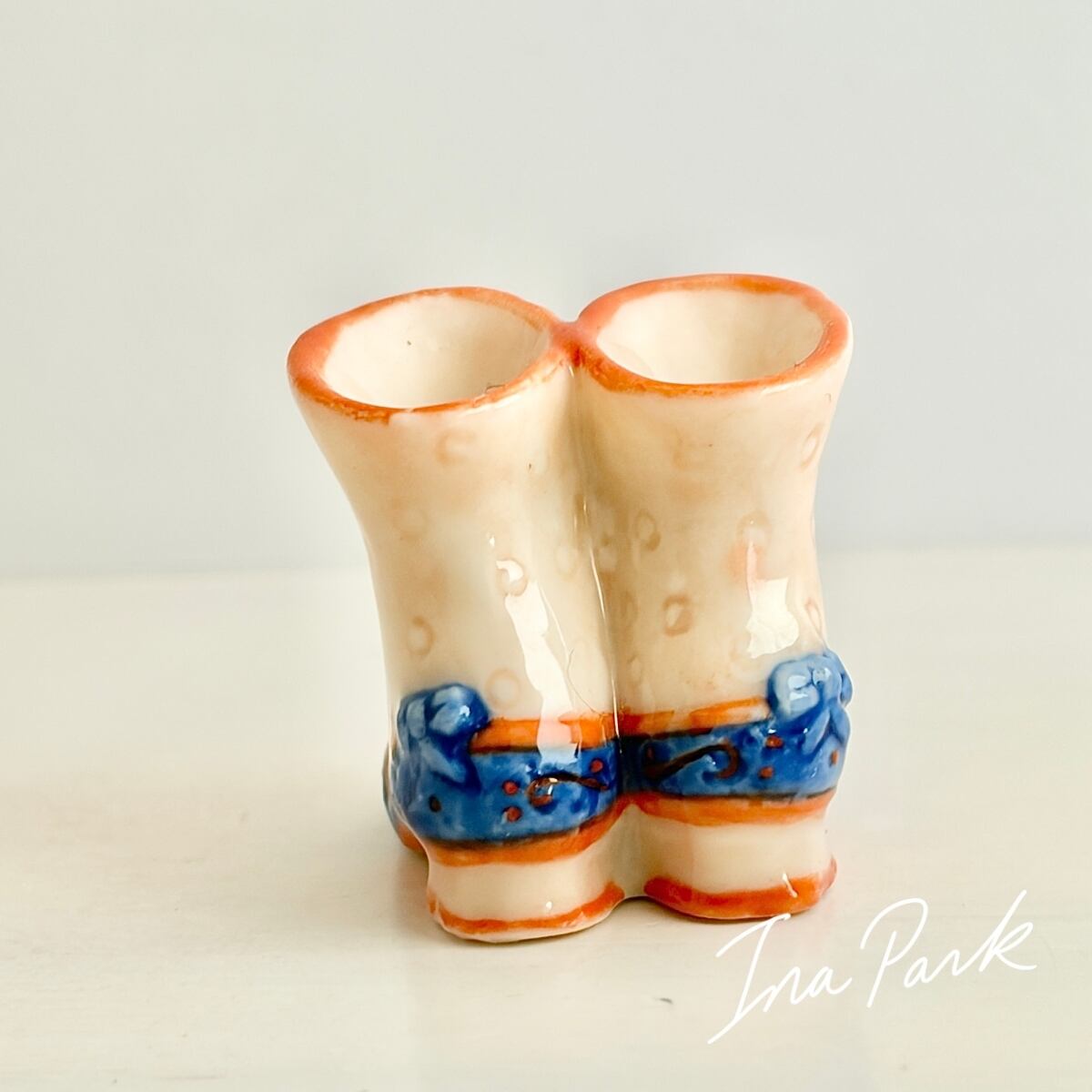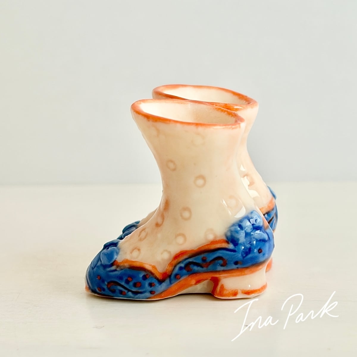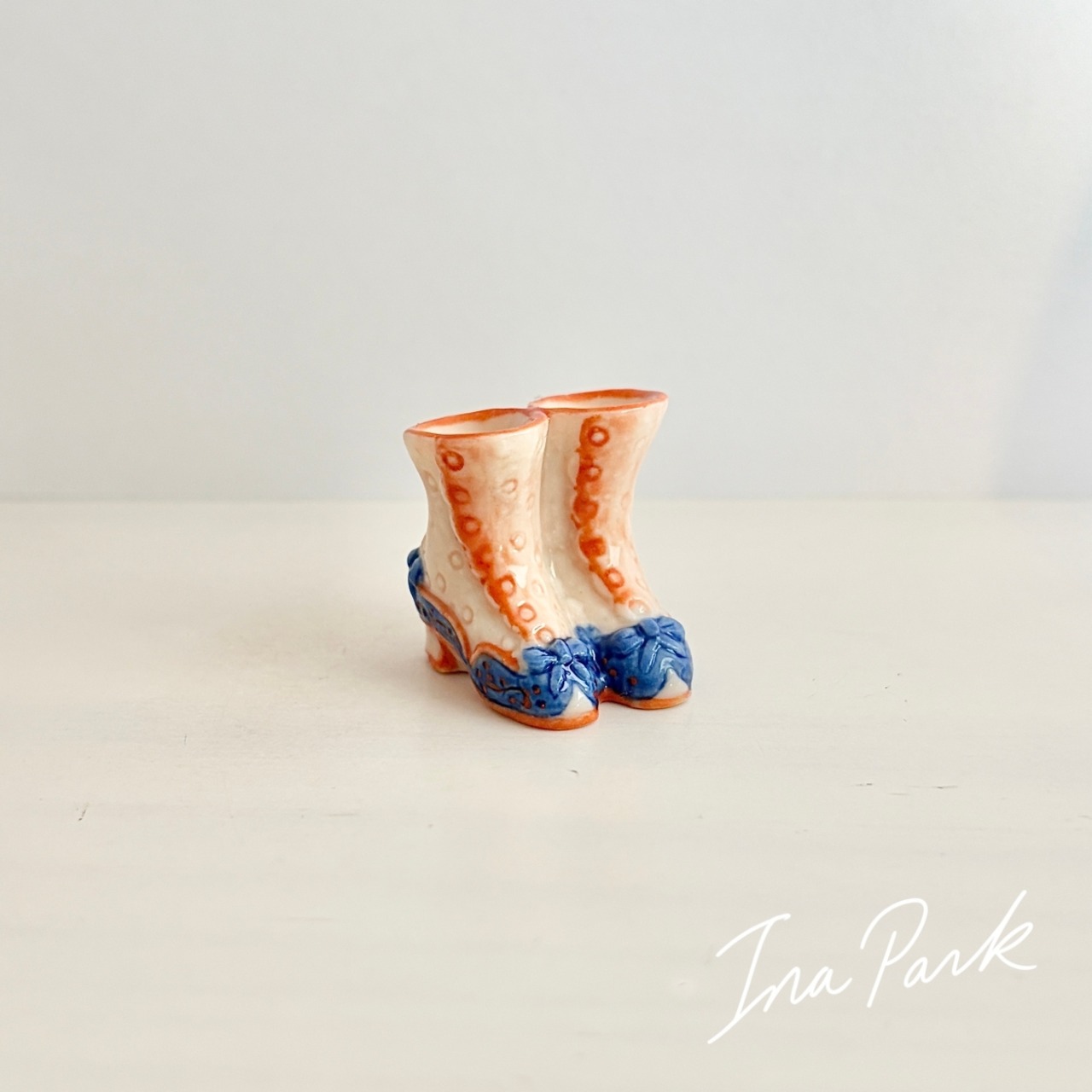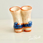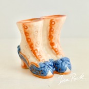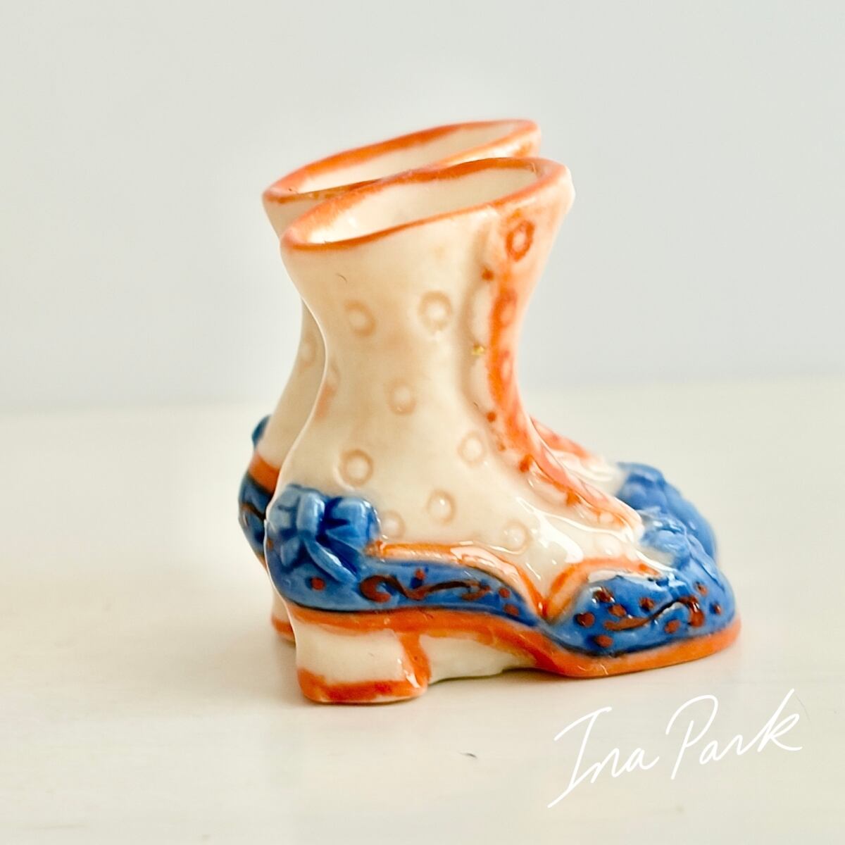 青いリボンのブーツ フェーヴ フェーブ フランス製 ミニチュア 陶器 雑貨 置物