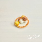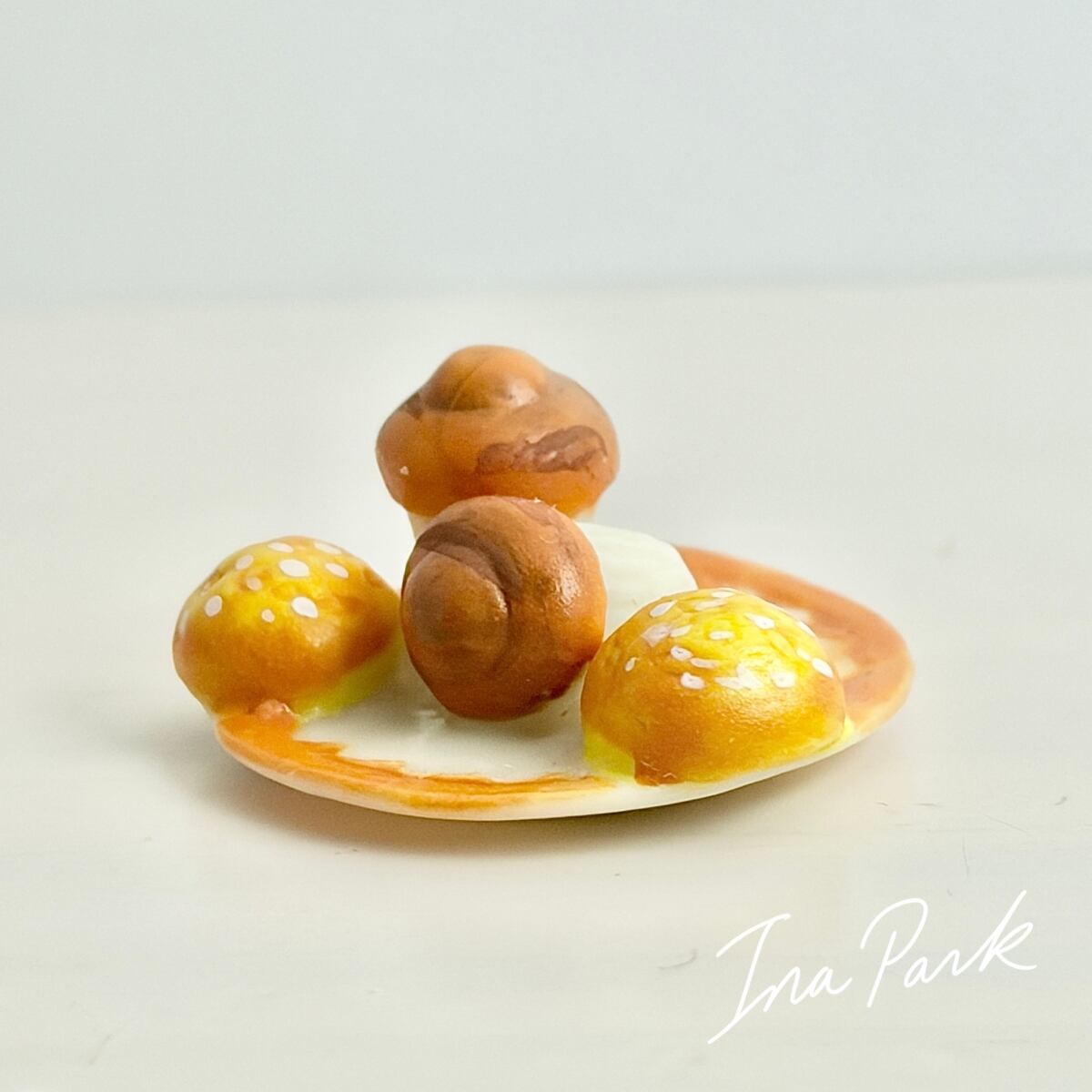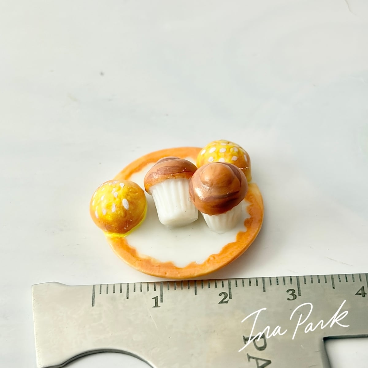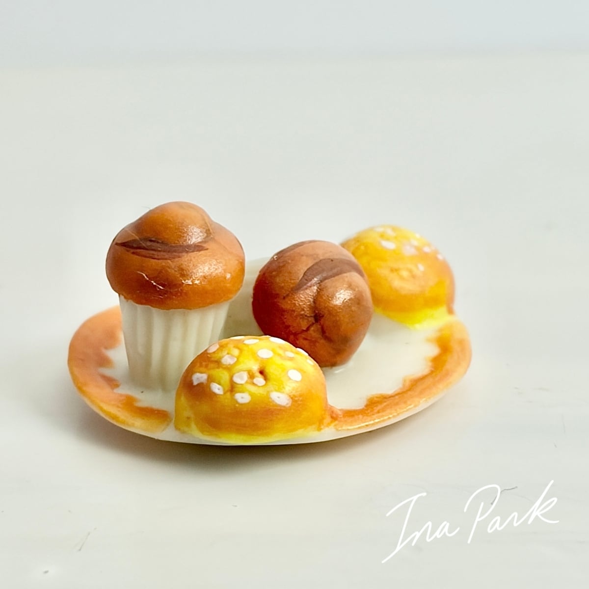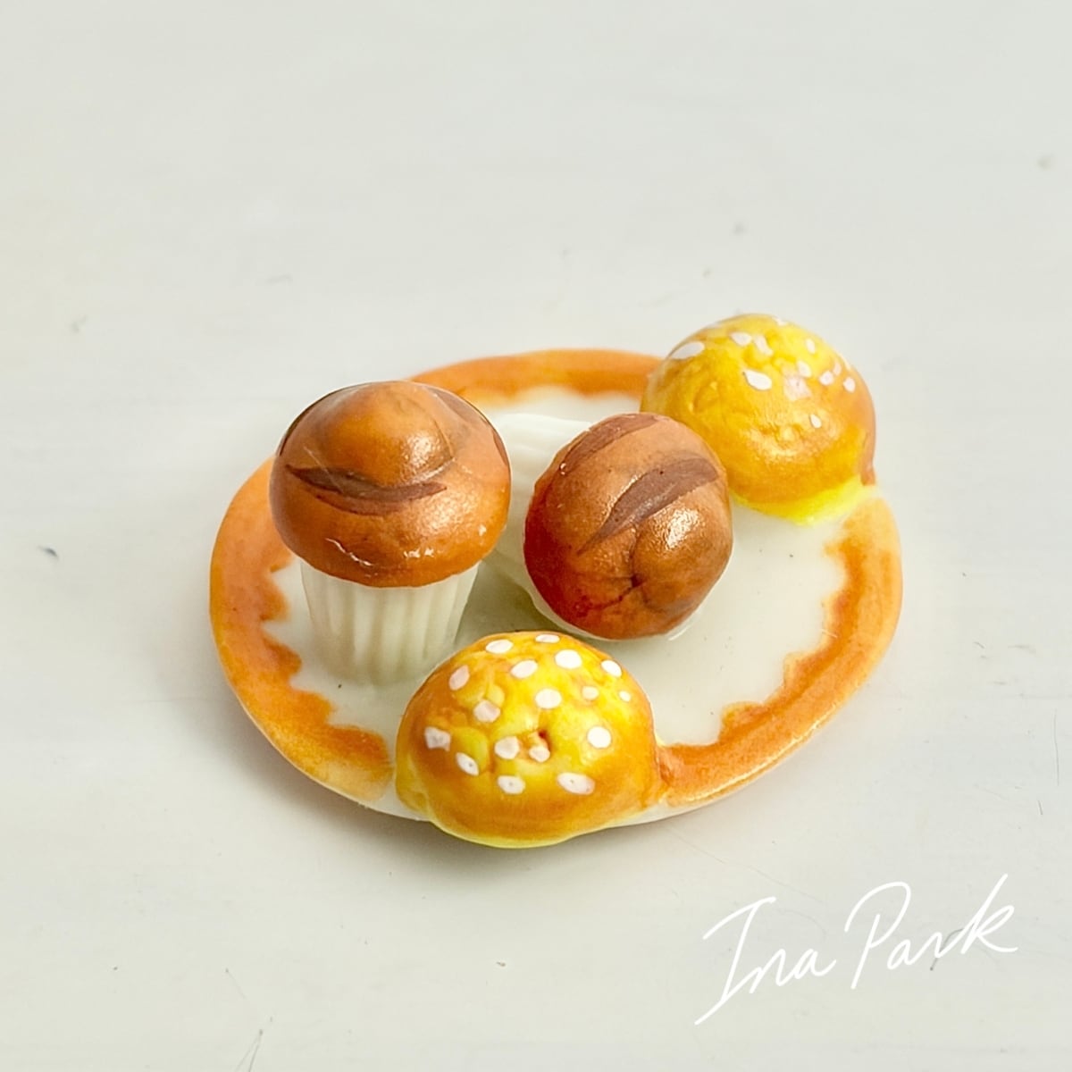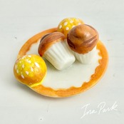 お皿の上のカップケーキとパン フェーヴ フェーブ フランス製 ミニチュア 陶器 雑貨 置物