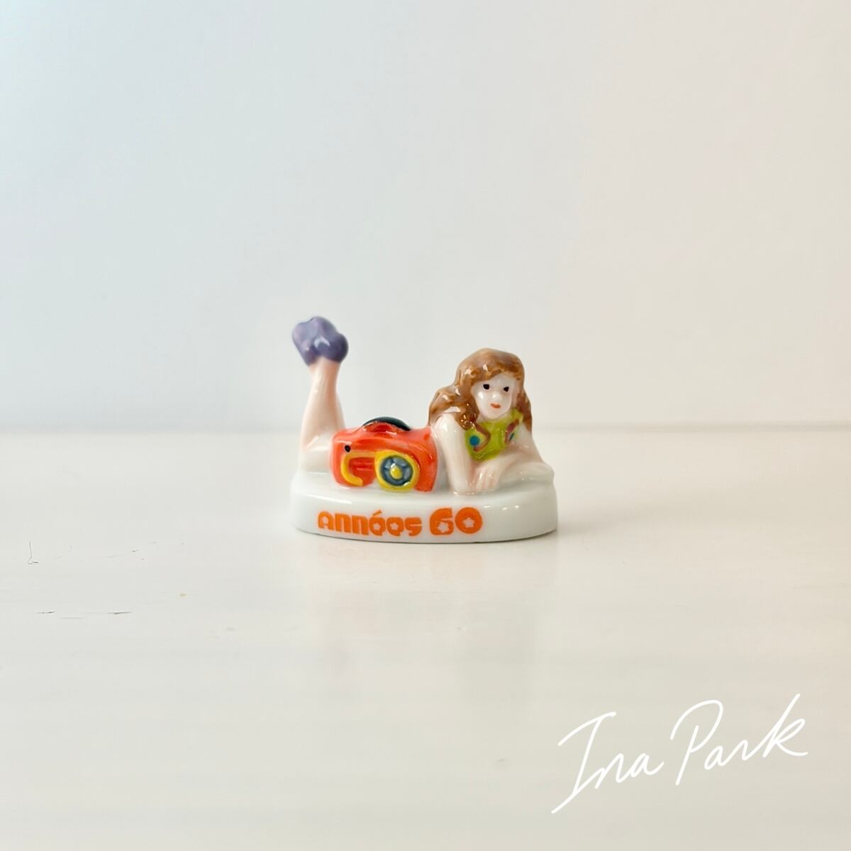 ラジカセと女の子 60sイエイエ 1960年代カルチャー フェーヴ フェーブ フランス製 ミニチュア 陶器 雑貨 置物
