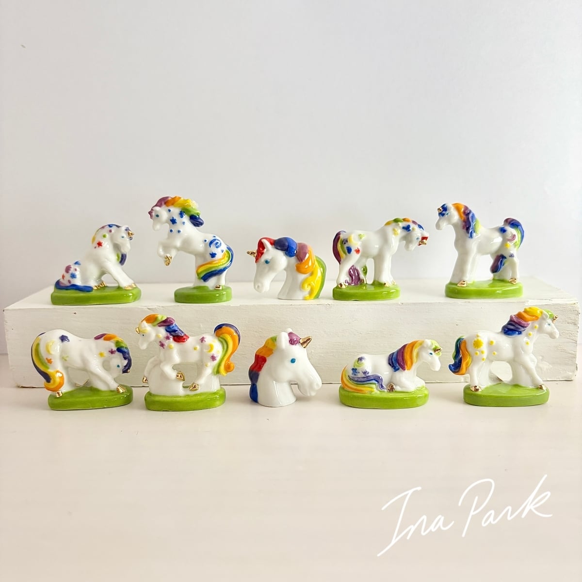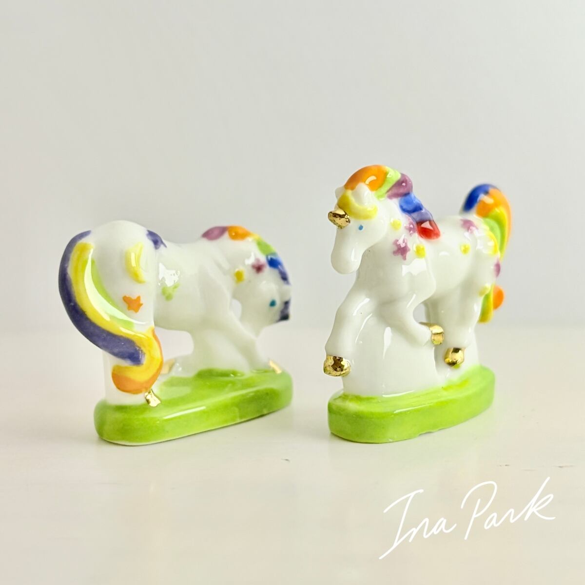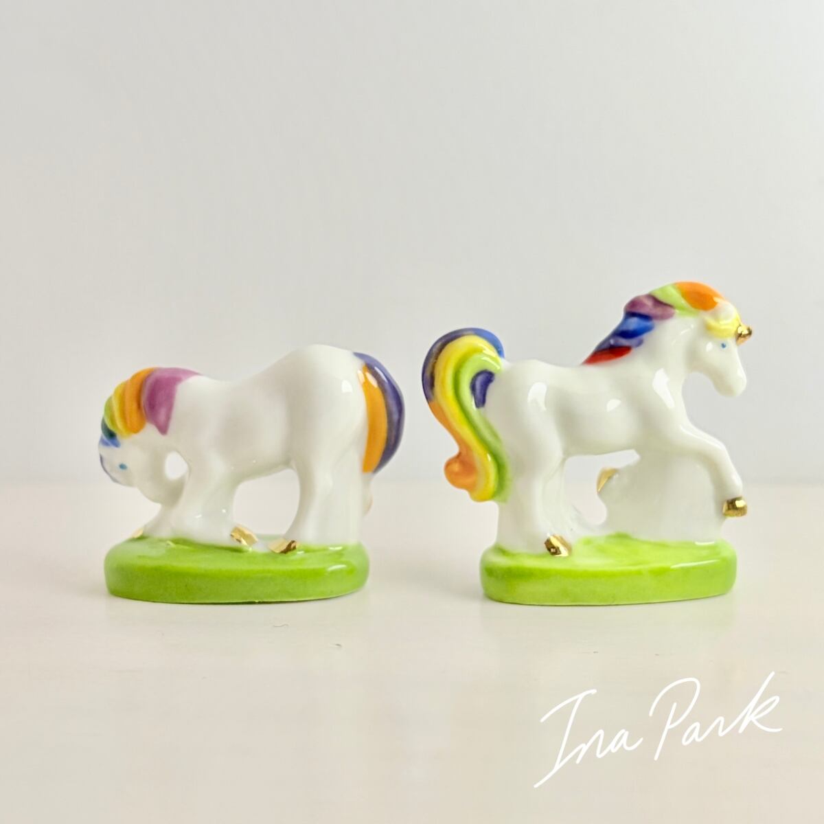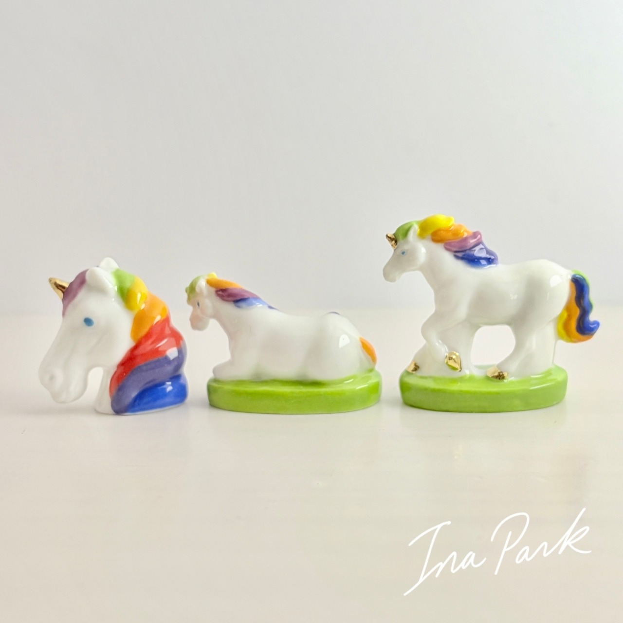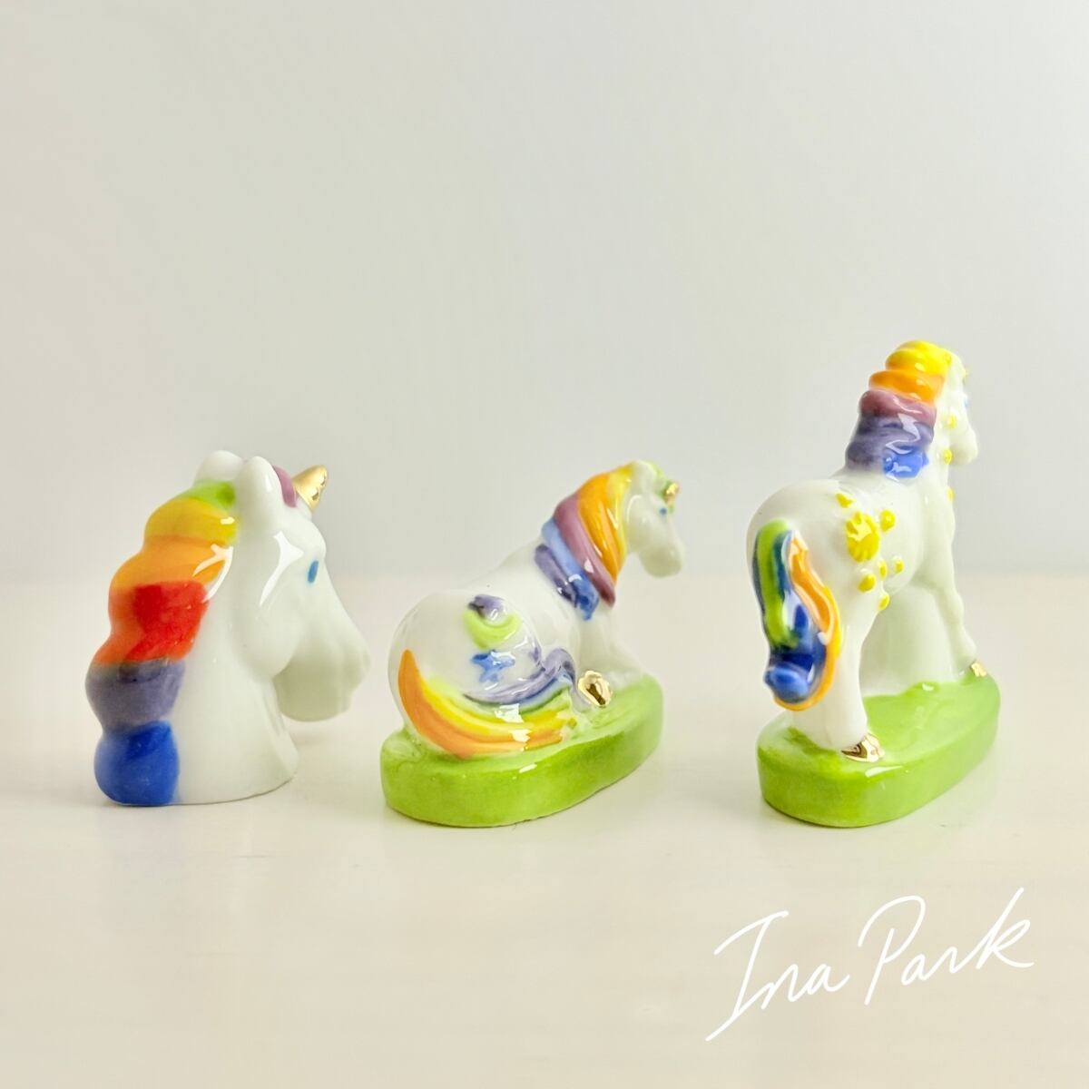 虹色のユニコーン フェーヴ フェーブ フランス製 ミニチュア 陶器 雑貨 置物