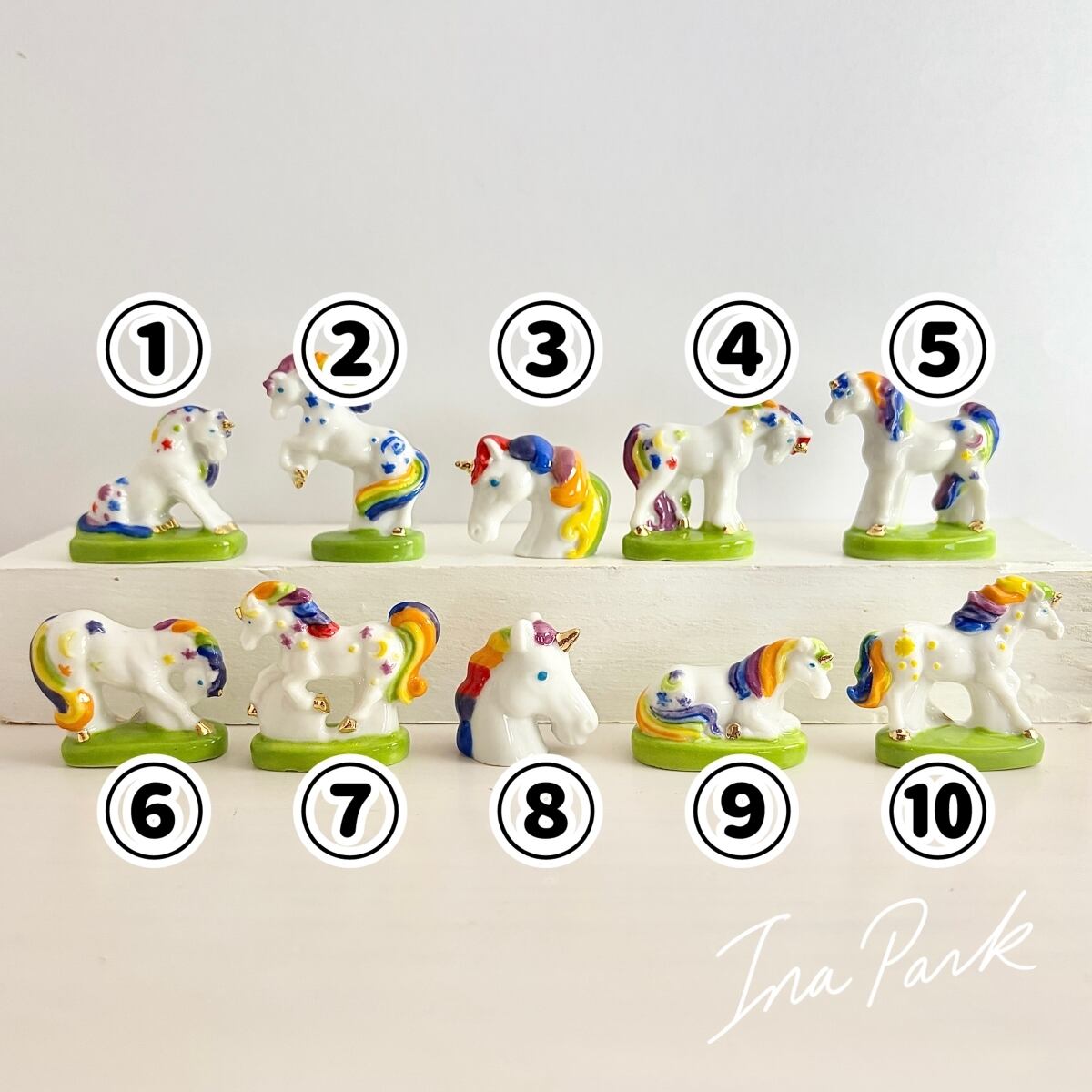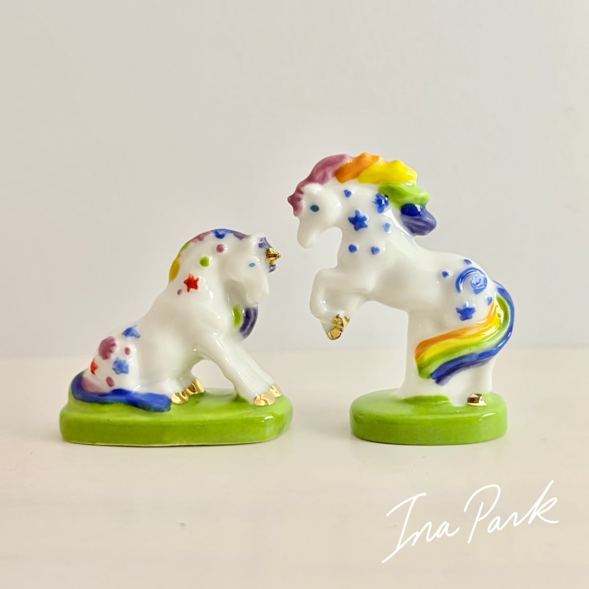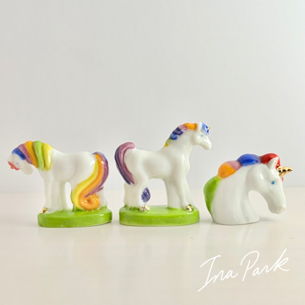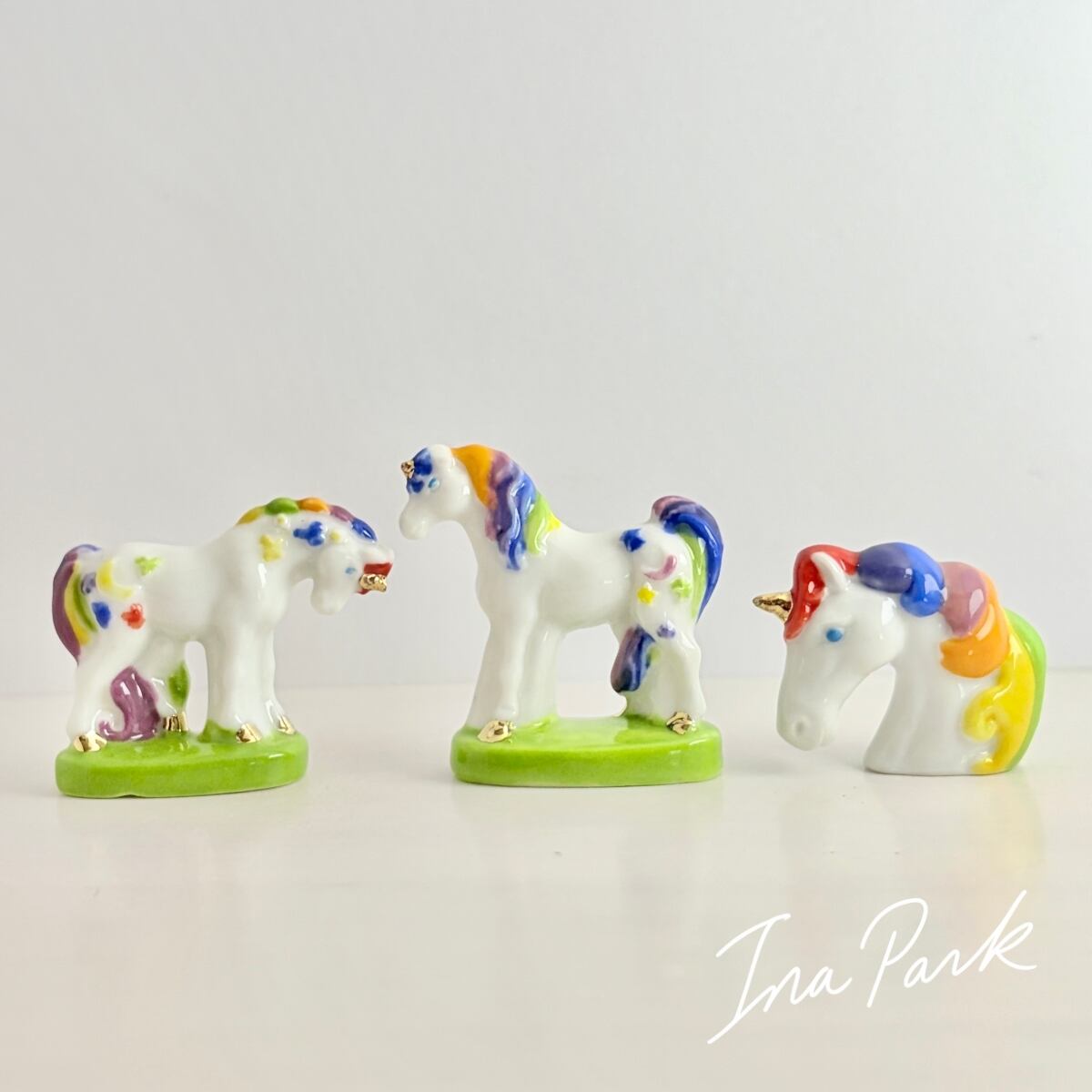 虹色のユニコーン フェーヴ フェーブ フランス製 ミニチュア 陶器 雑貨 置物