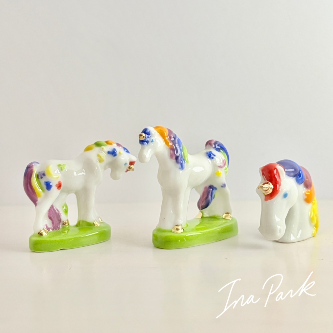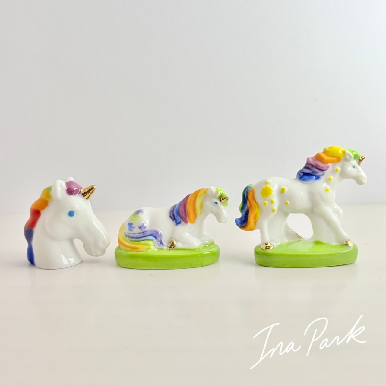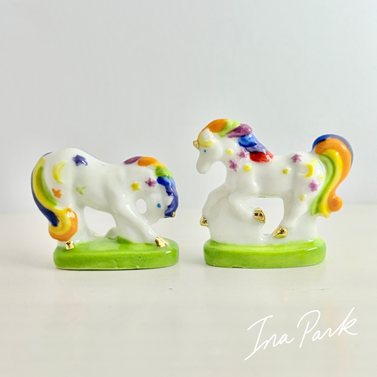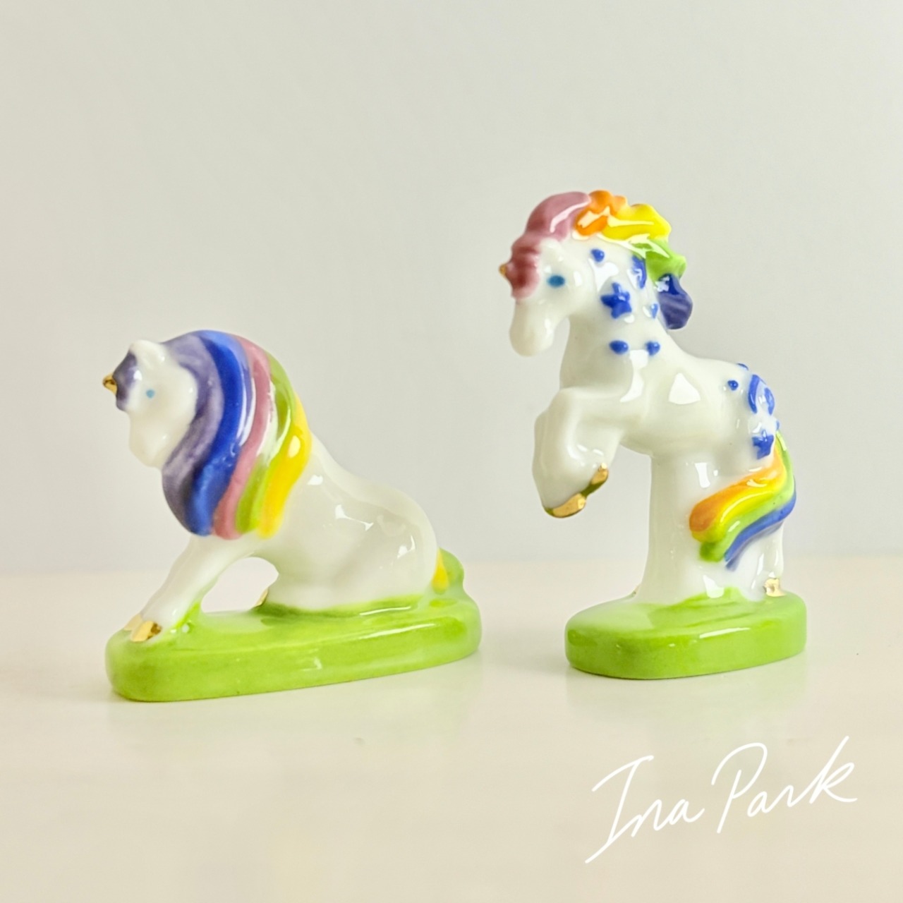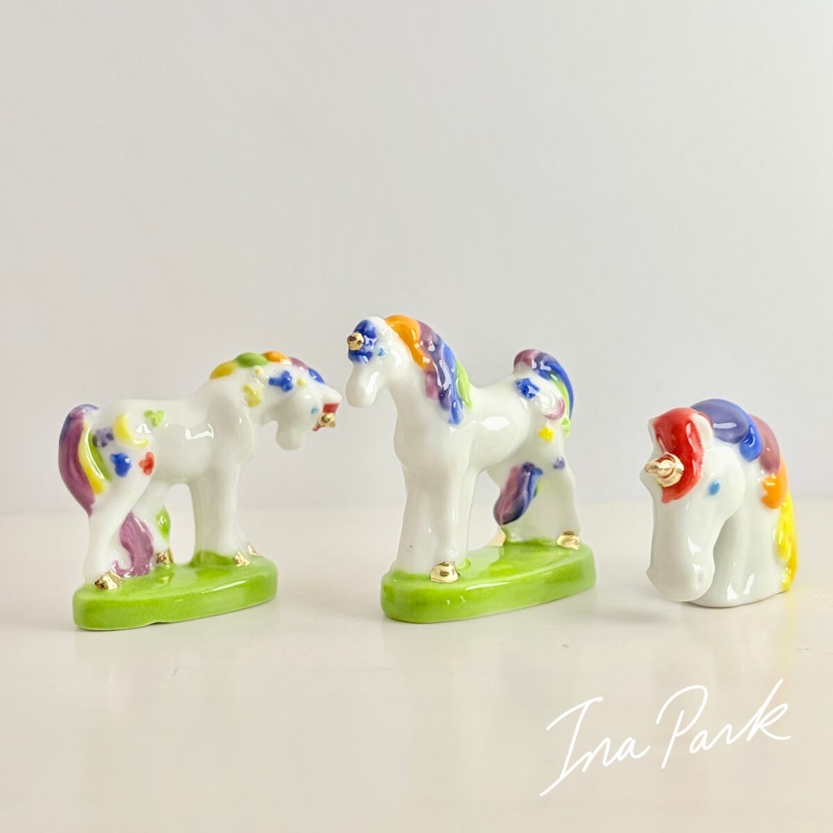 虹色のユニコーン フェーヴ フェーブ フランス製 ミニチュア 陶器 雑貨 置物