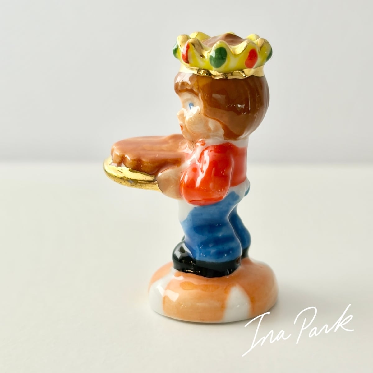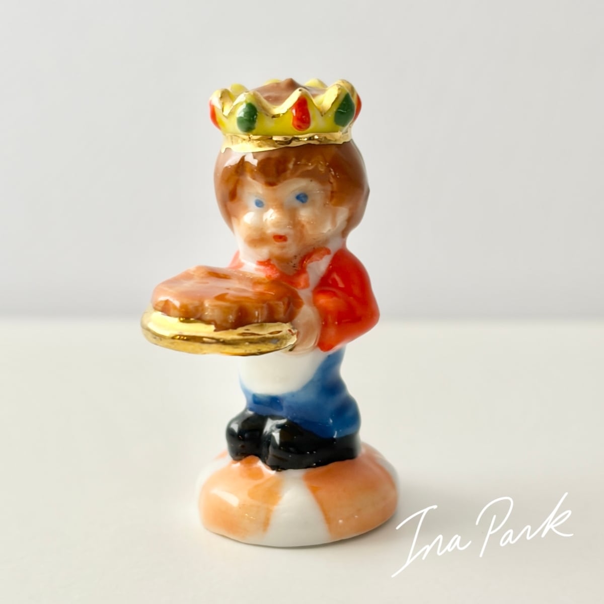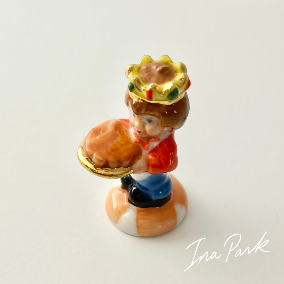 ガレットを運ぶ男の子 フェーヴ フェーブ フランス製 ミニチュア 陶器 雑貨 置物