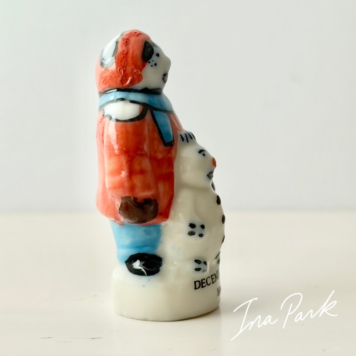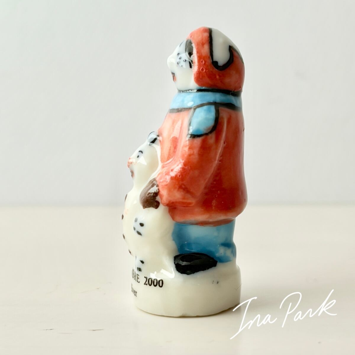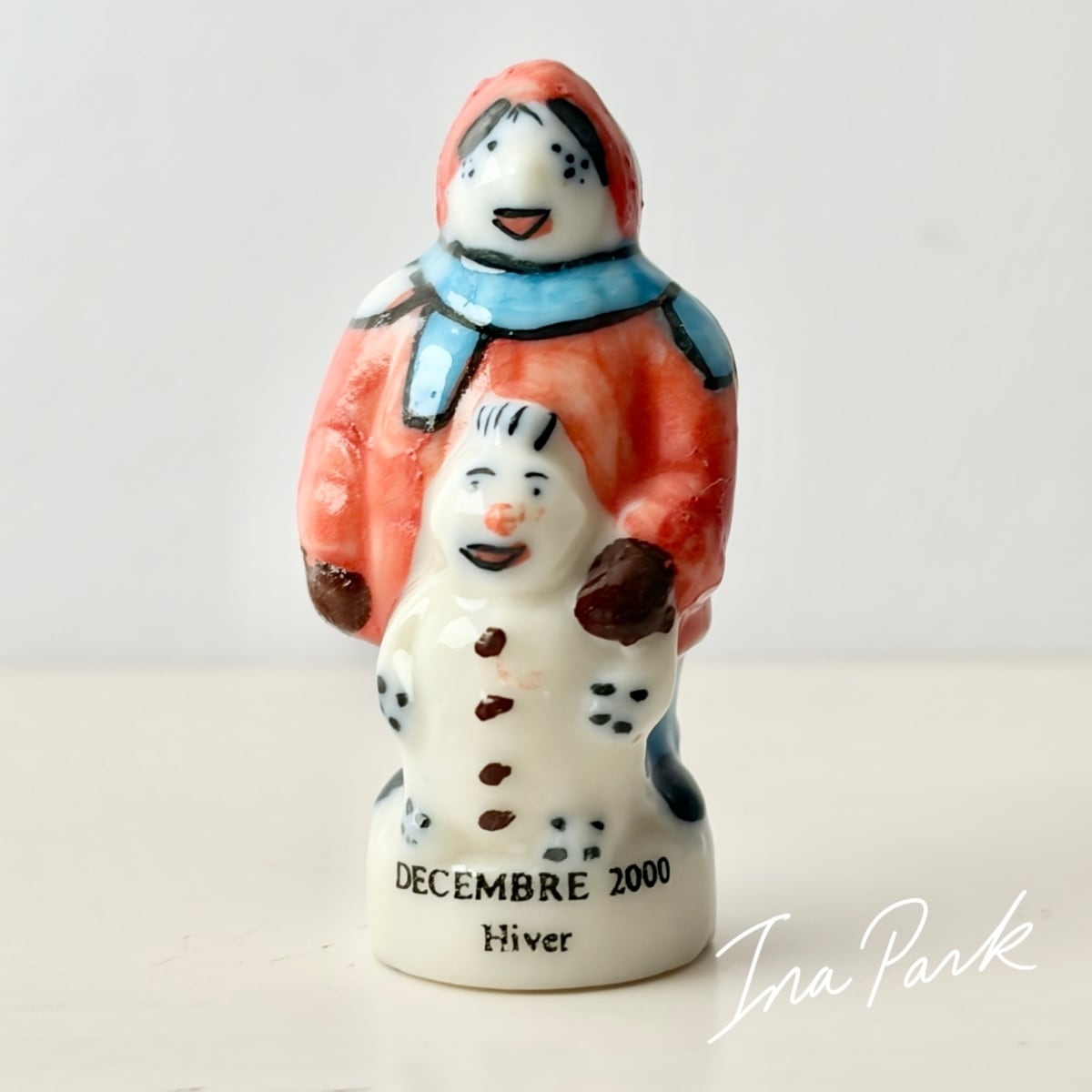 雪だるまと男の子 フェーヴ フェーブ フランス製 ミニチュア 陶器 雑貨 置物