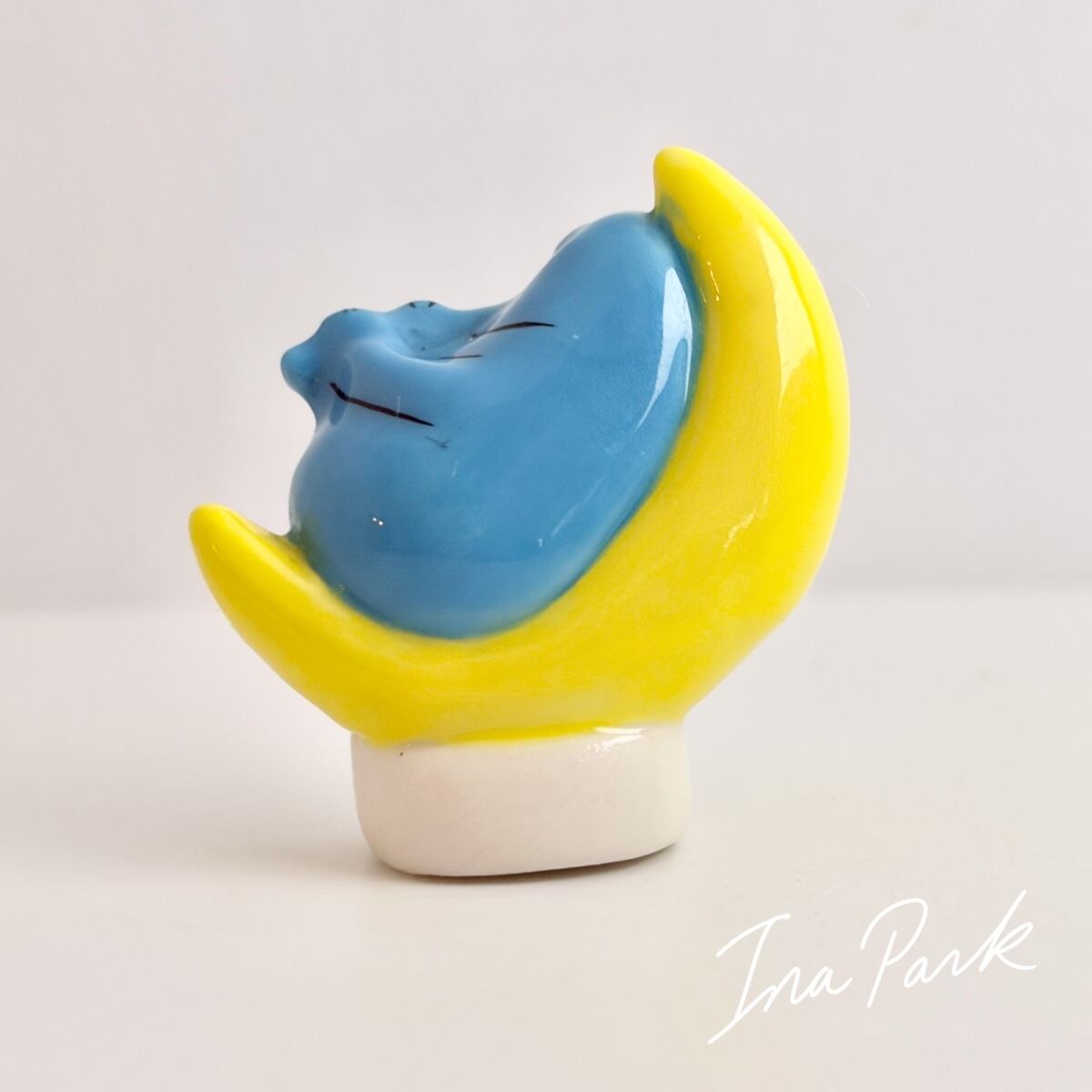 月で眠るバーバブル フェーヴ フェーブ フランス製 ミニチュア 陶器 雑貨 置物