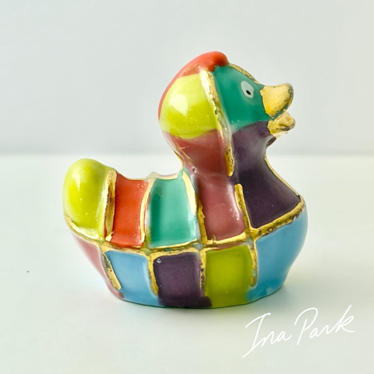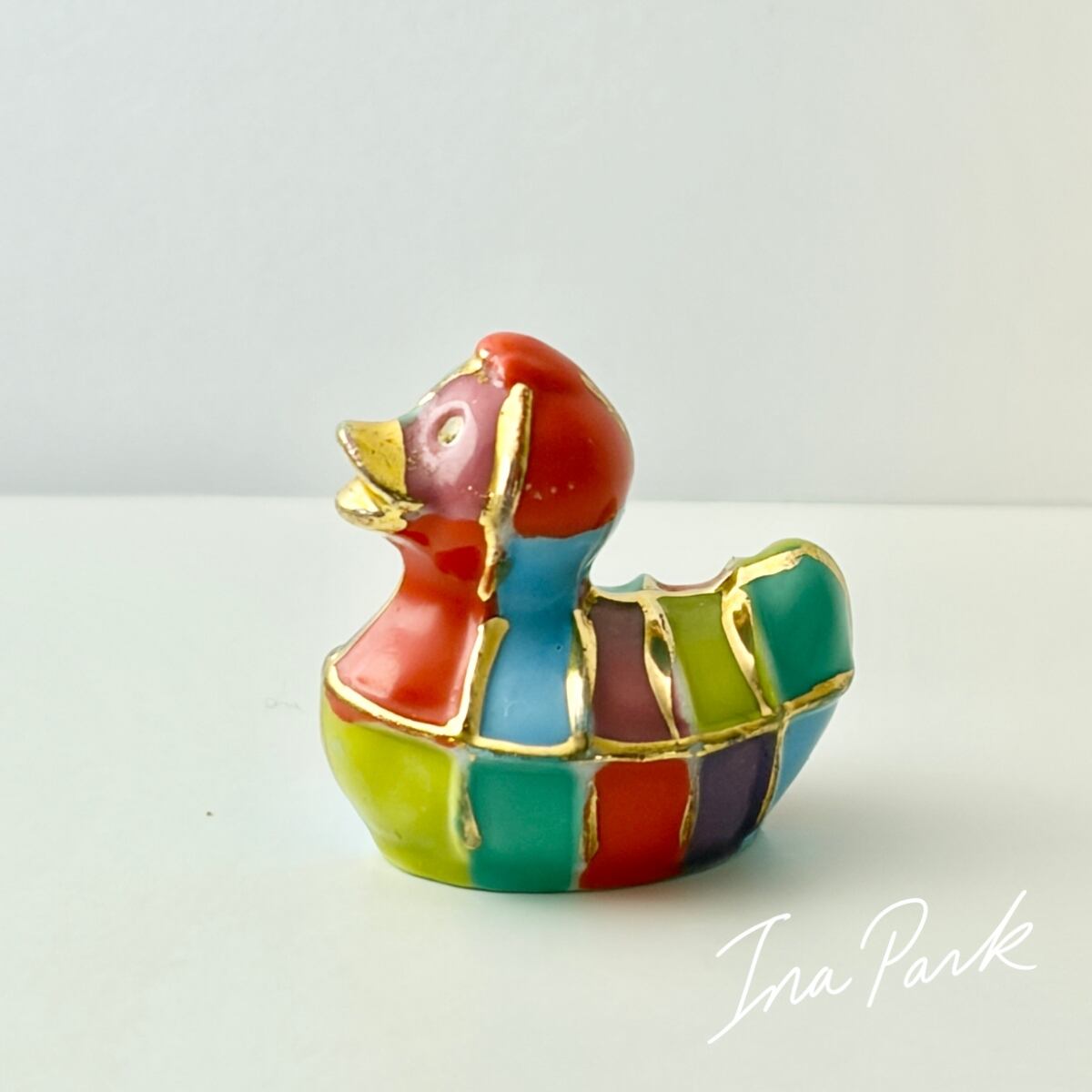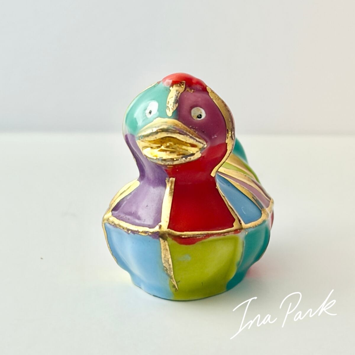 金彩入りのカラフルなアヒル フェーヴ フェーブ フランス製 ミニチュア 陶器 雑貨 置物